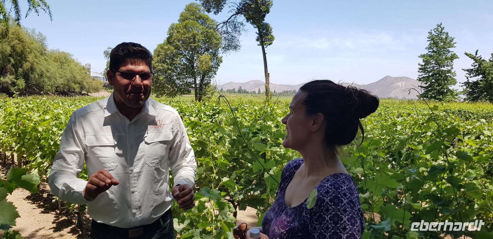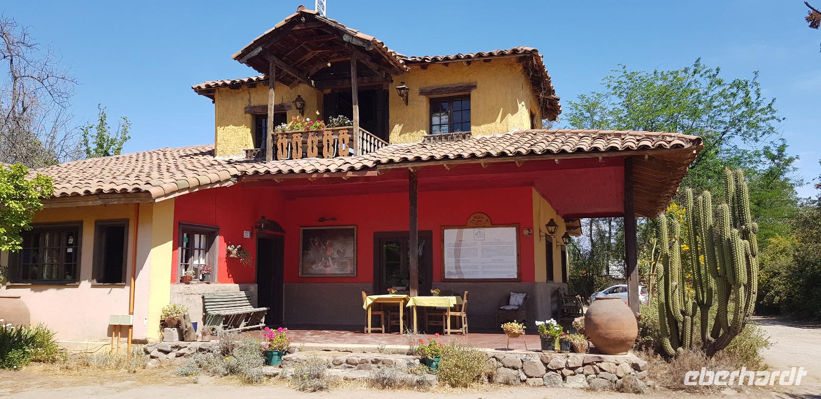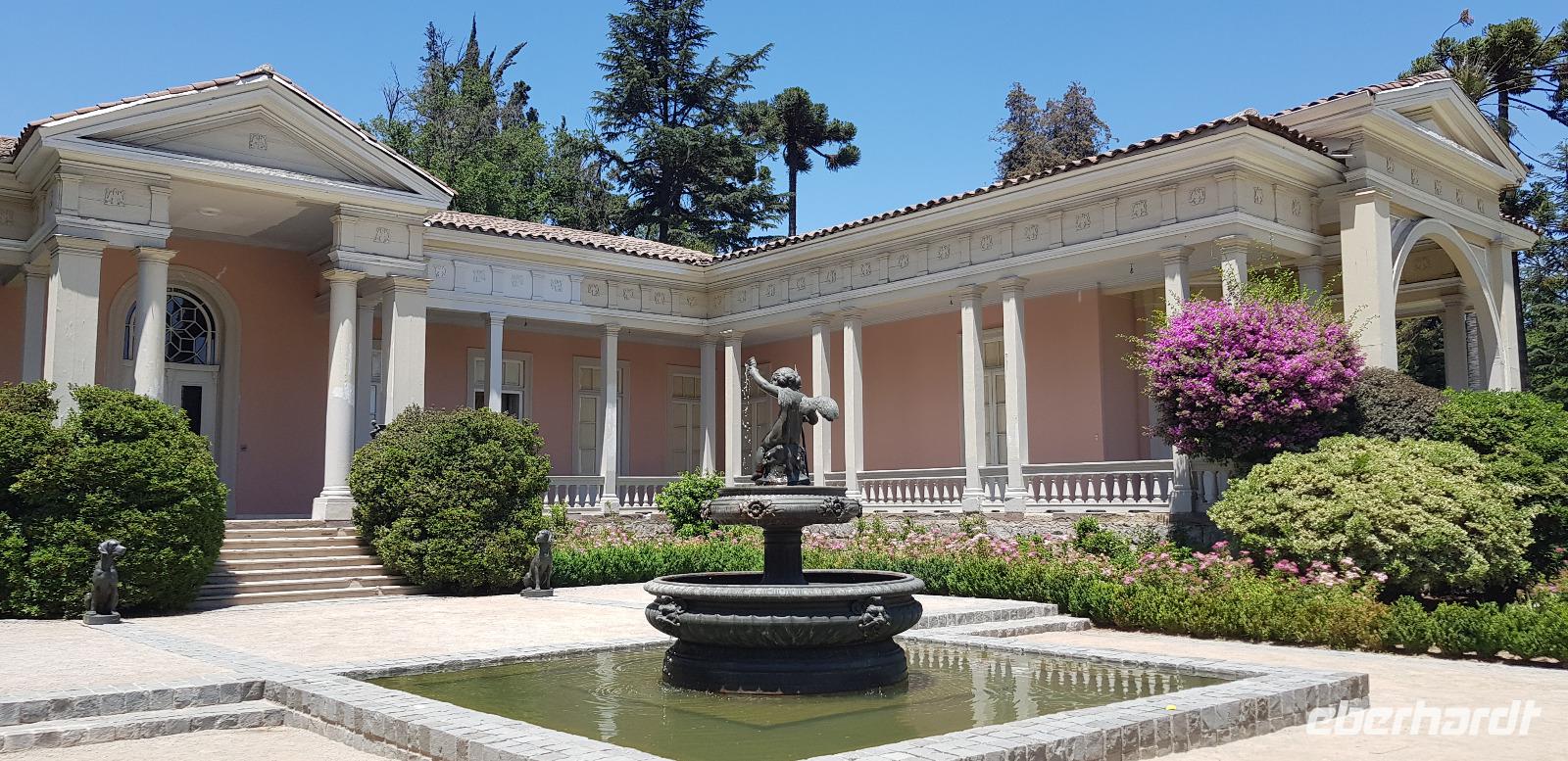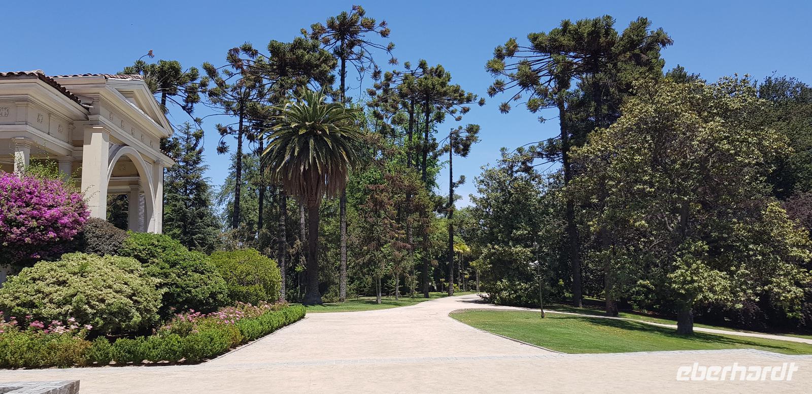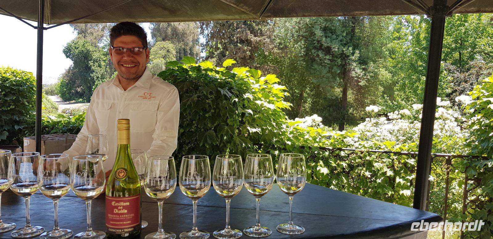 Nach etwas Geschichtsunterricht fahren wir mit unserem Bus ins Umland von Santiago zum Weingut Concha a Y Torre. Dort unternehmen wir einen geführten Rundgang durch die traumhafte Gartenanlage und dem wunderschönen Weingut. Unser örtlicher Führer erklärt uns alles über die verschiedenen Weinsorte und die Geschichte des Weinanbaus in Chile. Nach dem Rundgang verkosten wir den ersten Weißwein, später im Weinkeller folgen zwei schmackhafte Rotweine.