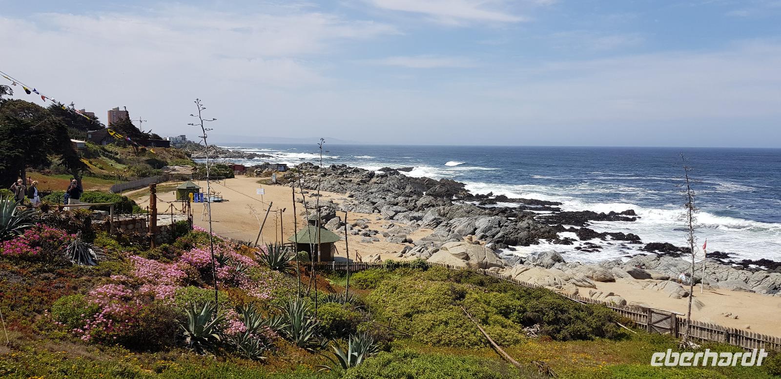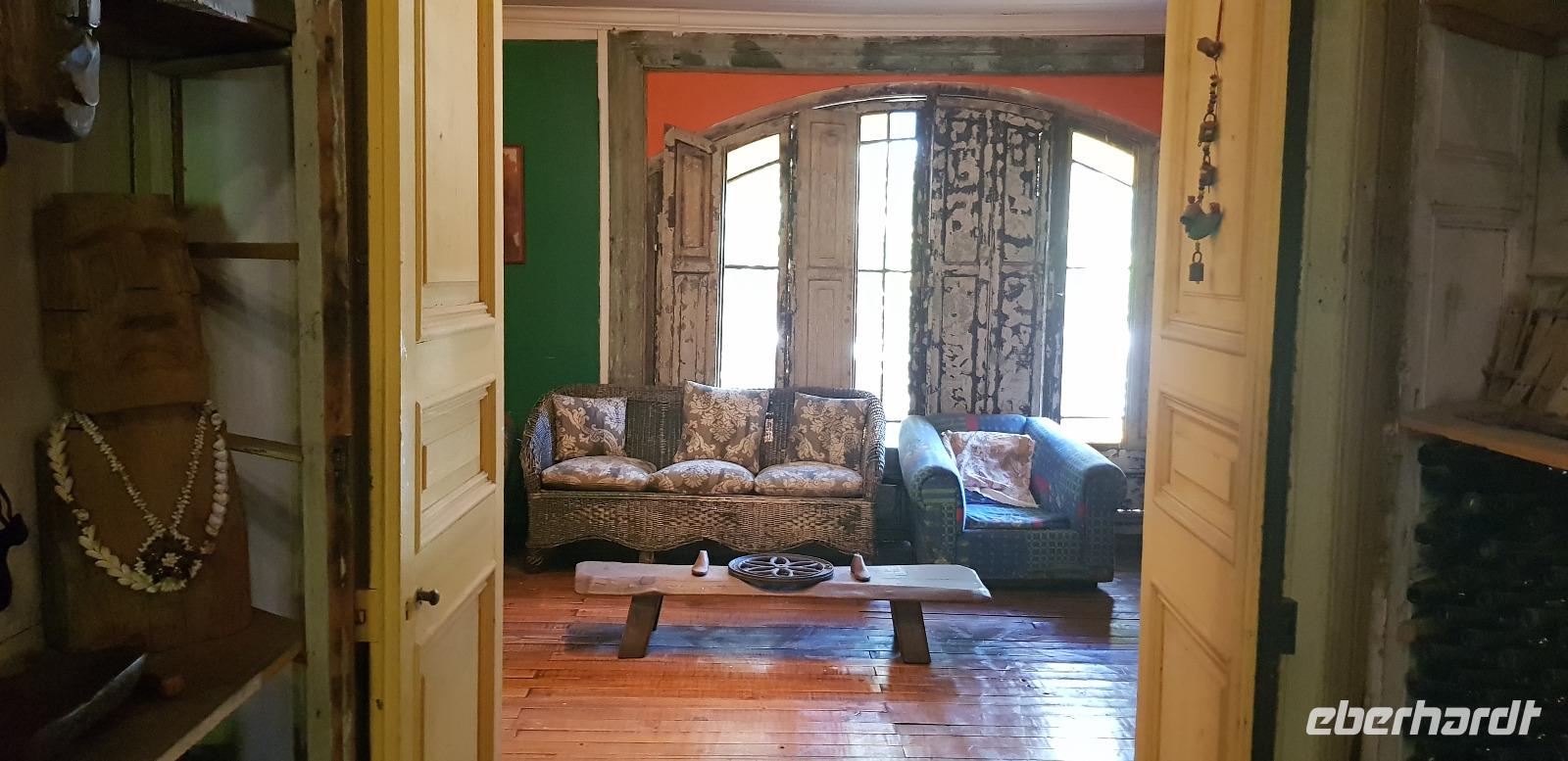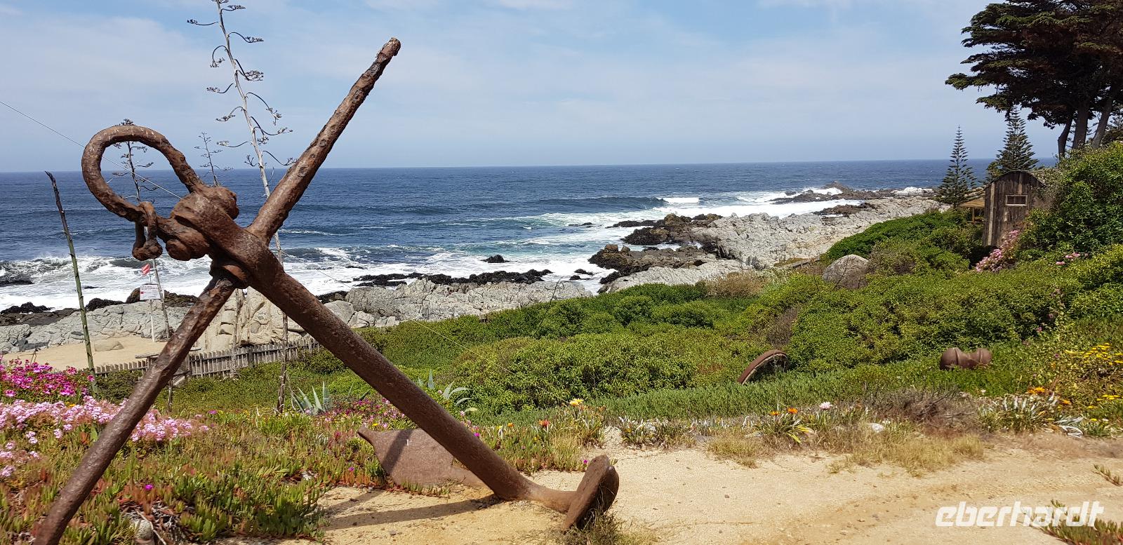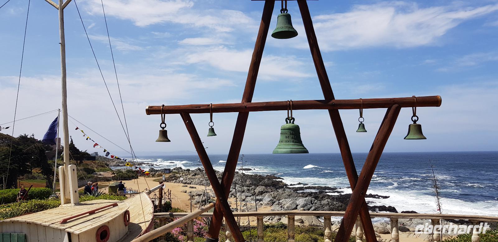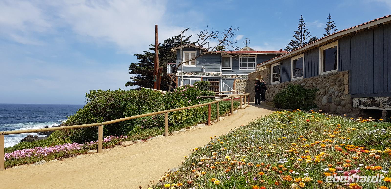 Unser zweiter Ausflugs-Tag in Chile führt uns zuerst in die Bucht von Isla Negra. Dort besuchen wir das Haus des chilenischen Literatur-Nobelpreisträgers Pablo Neruda. Wir erhalten kostenfreie Audioguides in deutscher Sprache und spazieren gemütlich durch die liebevoll gestalteten Räumlichkeiten seines Anwesens. Pablo Neruda liebte das Meer und sammelte alles was mit Nautik und der Seefahrt zu tun hat. Überall stehen historische Artefakte und Dekorationsgegenstände. Er lebte schon damals wie in einem Museum. Zum Schluss erkunden wir noch den Außen- und Gartenbereich, bevor es wieder weiter geht. Hier an der Küste weht immer eine frische Brise - aufgrund des kühlen Humboldt-Strom, der kalte Luft aus der Antarktis in Richtung Norden bringt.