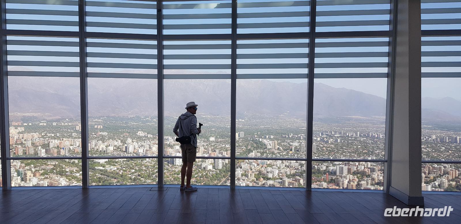 Uns erwartet ein tolles einheimisches 3 Gänge Menü in einem urigen Restaurant. Hier stimmt einfach alles... das Ambiente, die schmackhaften Speisen und der leckerer Pisco Sour - das Nationalgetränk der Chilenen. Nach dem Essen verabschieden wir uns persönlich beim Hausherren und bedanken uns für die außerordentliche Gastfreundschaft. Nun treten wir die Heimreise nach Santiago an, wo noch eine Überraschung auf uns wartet. Zum Abschluss des Tages besuchen wir die 300m. hohe Aussichtsplattform auf dem „Sky Costanera" Hochhaus im Herzen des Bankenviertels.