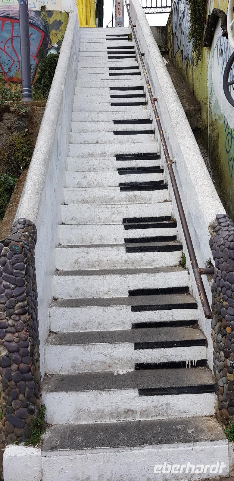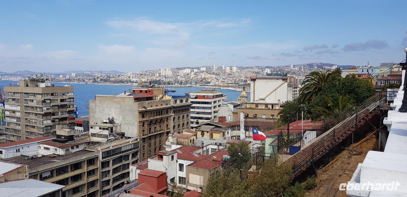 Also ein komplett anderes Klima als im heißen Santiago. Gegen Mittag fahren wir etwa eine Stunde weiter nach Valparaiso. Hier müssen wir die Stadtrundfahrt, aufgrund von großen Demonstrationen etwas abkürzen. Heute ist Generalstreik in Chile und halb Valparaiso auf den Beinen. Wir besuchen deshalb leider nur den oberen Stadtteil, sprich das Künstlerviertel der Stadt. Als erstes kehren wir zum Mittagessen in ein tolles Restaurant ein. Hier erwartet uns wieder einmal ein schmackhaftes 2 Gänge Menü und Pisco Sour gibt es natürlich auch. ;-)