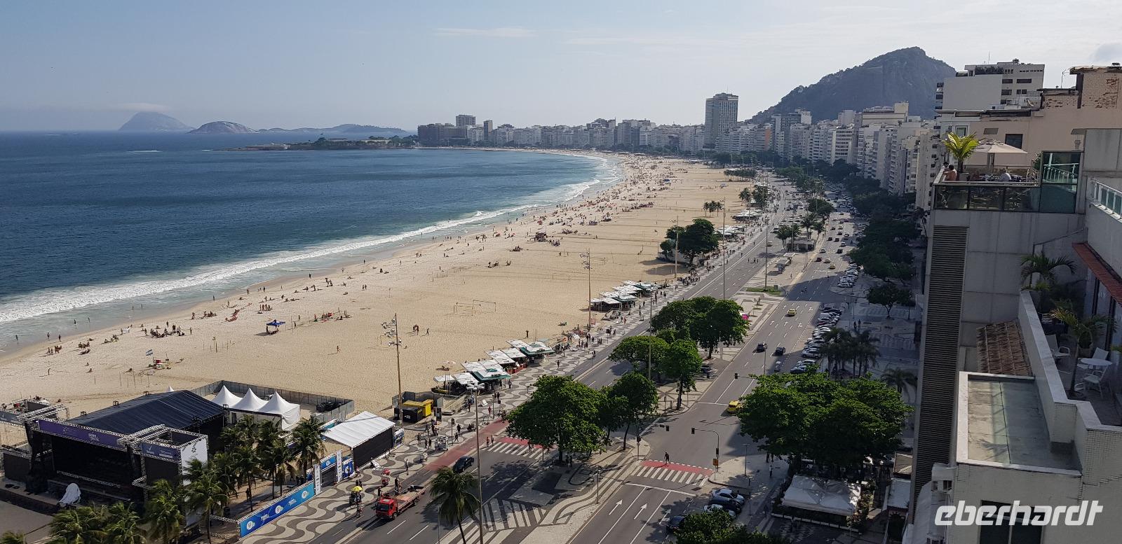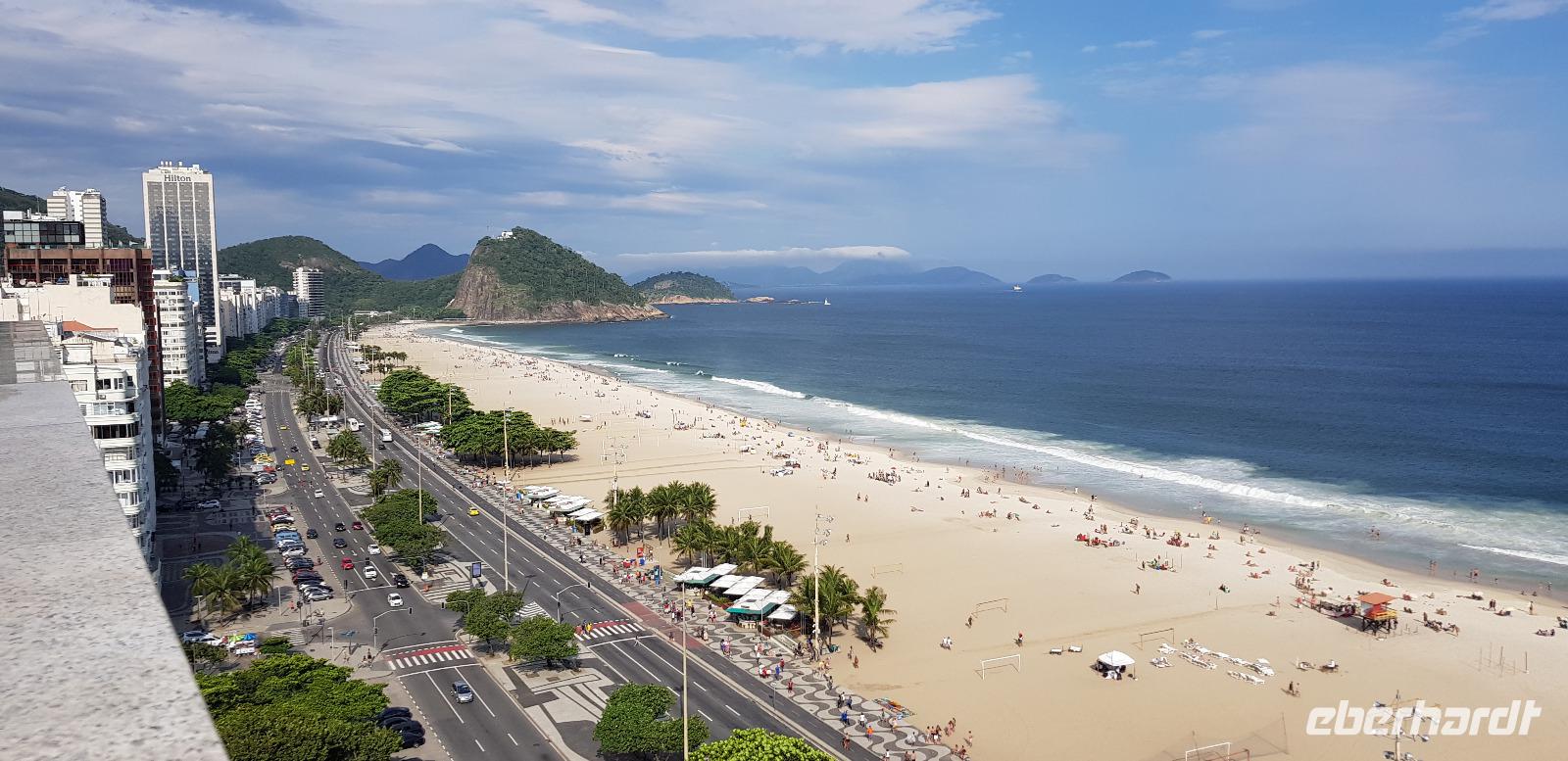Nach dem einchecken in unser Hotel - direkt an der Copacabana, gehen die meisten Gäste mit mir Abendessen. Anschließend genießen wir noch den einen oder anderen Caipirinha und blicken von unserem Hoteldach auf Rio bei Nacht.