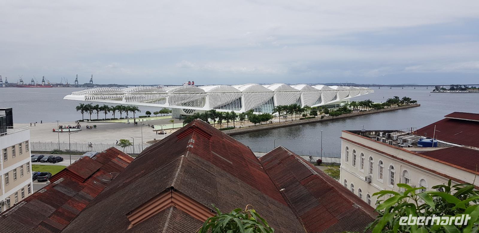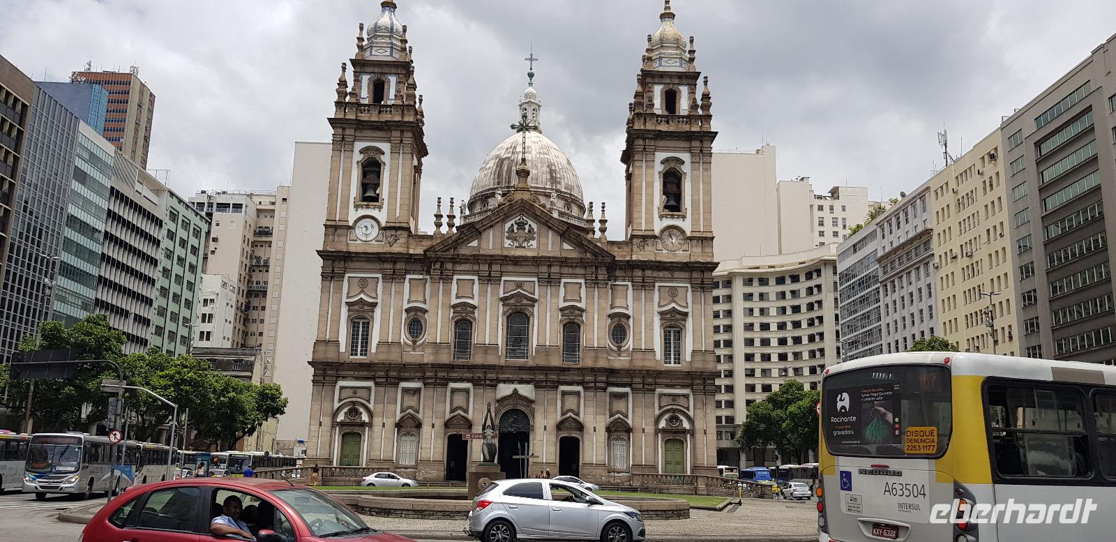 Der letzte Tag der Weltreise... wie die Zeit doch vergeht. Nun heißt es ein letztes Mal auschecken, doch bevor wir zum Flughafen fahren, steht noch einiges auf dem Programm. Heute erkunden wir die Altstadt von Rio. Mit Reiseleiter Johannes und unserem Busfahrer fahren wir als erstes zur großen Kathedrale von Rio - die „Catedral Metropolitana de São Sebastião de Rio de Janeiro". Sie wurde im Stile des Modernismus im Jahr 1979 fertigstellt und ist Sitz Erzbischofs von Rio.