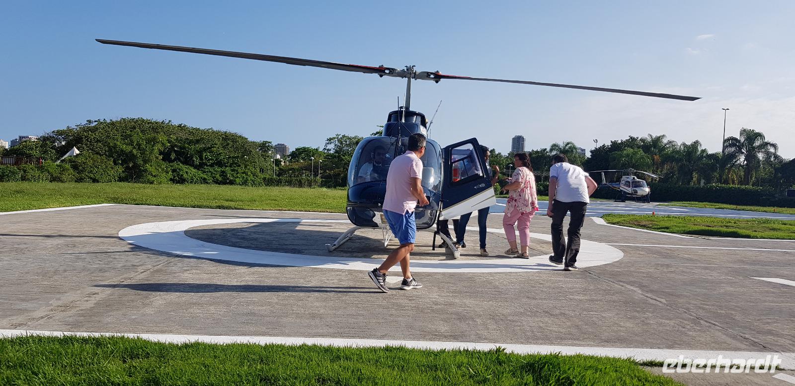 Auch heute ist es wieder sehr reichhaltig und ein absoluter Genuss. Herr Eberhardt spendiert noch einen Caipirinha, bevor wir gut gesättigt zum Hotel zurück fahren. Einige von uns haben sich noch für einen fakultativen Helikopter Flug entschieden - der Höhepunkt und Abschluss einer unglaublichen Reise. Johannes und ich begleiten die 7 Gäste zum Heliport an der Lagune und erklären die verschiedenen Flugrouten. Die meisten wählen einen halbstündigen Rundflug und sind absolut begeistert. Danach geht es zum Hotel zurück, wo wir noch etwas Freizeit haben. Gegen 18Uhr treffen wir uns wieder in der Lobby und fahren mit Reiseleiter Johannes zum Flughafen. Dort angekommen, checken wir in Ruhe ein und verabschieden uns von ihm. Es war wieder eine tolle Zeit und ein super Programm in Rio. Auch Johannes war wieder einmal eine der besten Reiseleiter der gesamten Reise.