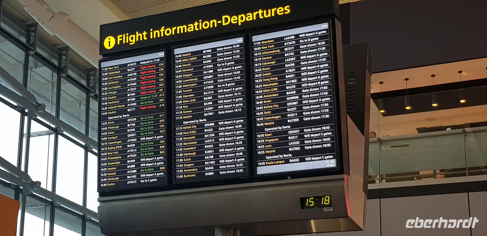Nun treten wir den letzten Flug der Reise an und fliegen mit Britisch Airways gegen 22:00Uhr nach London-Heathrow.