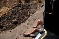 Nach dem Frühstück fuhren wir bis zur Grenze nach Simbabwe, bei Pandamatenga. Hier liessen wir die Ausreise- und Einreiseprozederen über uns ergehen - Deutsche Bürokratie ist auch in Afrika zu Hause. Direkt hinterm Grenzzaun hörte die geteerte Straße auf und Guido chauffierte uns quer durch den Hwange. Die hügelige Landschaft war einzigartig und wir sahen eine riesige Elefantenherde. Doch plötzlich roch es nach Diesel und der Motor unseres Sprinters gab den Geist auf. Dank Guido und der besonnenen Reisegruppe samt allseits bewährten Teppichklebeband meisterten wir die Situation (ohne Handy Empfang) und konnten unsere Reise durch die einsame Wildnis Afrikas fortsetzen. Am Nachmittag erreichten wir die Stadt Hwange und statteten dem hiesigen Supermarkt einen Besuch ab. Letztendlich hatten sich alle ein kühles Bier verdient. In der Hwange Safari Lodge, unweit des Hwange Nationalparks angekommen checkten wir ein. Die wunderschöne Anlage ist an einer Wasserstelle gelegen, die Zimmer einfacher eingerichtet. Am Abend trafen wir uns an der gut bestückten Bar. Von der Stille Afrikas verwöhnt, störte uns zum Abendessen nur die laute koreanische Reisegruppe ein wenig, aber wir gönnten auch diesen Gästen ihren Spass, die sich in allen möglichen Positionen gegenseitig ablichteten. Zu nächtlicher Stunde erkundeten wir mit Guido das Gelände: Skorpione, die in Neonfarben leuchteten, winzige Spinnen im Gras, die wir aus weiter Entfernung nun auch lokalisieren können und einen heiligen Pillendreher. Die Elefanten am Wasserloch ignorierten wir, denn die gehörten schon zur Grundausstattung der Reise.