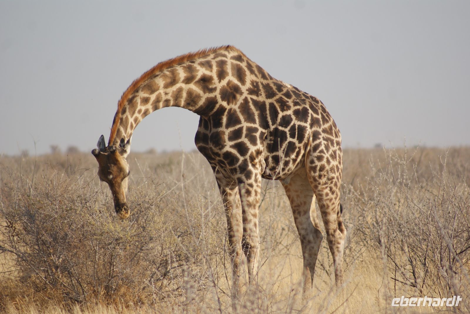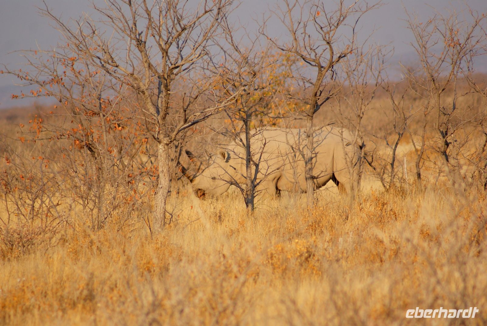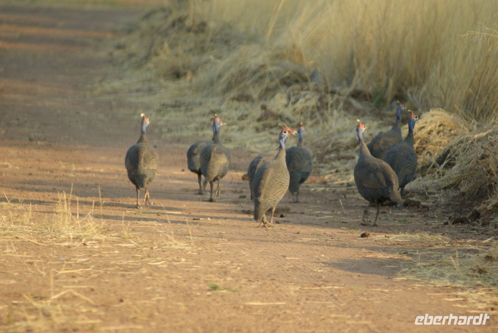 Erneut genießen wir den herrlichen Sonnenaufgang, das tolle Frühstück, die wunderbare Aussicht von unserer Lodge in die Weite Namibias. Zeitig wie gestern verlassen wir die Anlage und sind wieder eine der ersten im Etosha Nationalpark. Werden wir heute abschließend nochmals die Big Five sehen? Diese sind ja bekanntlich Elefant, Nashorn, Löwe, Leopard und Büffel, wobei letztere aus dem Park ausgesiedelt wurden, somit hier nur noch Big Four möglich sind. Schon in den ersten Stunden sehen wir ein Nashorn, drei Löwen und zwei Riesentrappen. Einmalig! So viele Highlights bereits am frühen Morgen, auch wenn man bedenkt, dass der Park 4.000 Km² misst. Im Laufe des Tages sollen wir noch viele Tiere sehen, darunter etliche Giraffen, unzählige Elefanten fern und nah, eine Herde davon direkt in unserer Nähe. Zu einem späten Mittagsstopp halten wir in Namutoni, welches das älteste Restcamp im Etosha NP ist und einst eine Festung der deutschen Schutztruppe war. Abschließend ziehen wir nochmals los und werden sogar mit einem Leoparden sowie weiteren Löwen belohnt. Am frühen Abend erreichen wir die Minenstadt Tsumeb mit ca. 19.000 Einwohner. Ein netter Empfang des Hotelmanagers, der uns in akzentfreiem Deutsch empfängt, noch kurz frisch machen und bald sitzen wir gemeinsam bei deftig, deutscher Hausmannskost unter freiem Sternenhimmel und lassen nochmals den Tag Revue passieren.