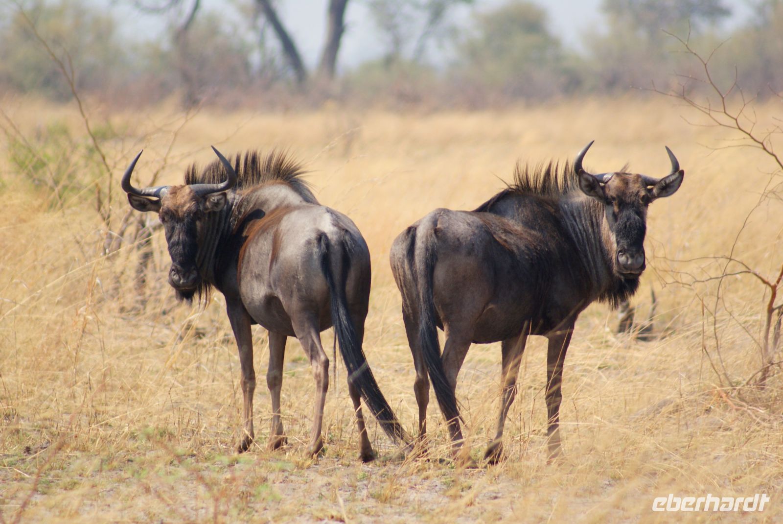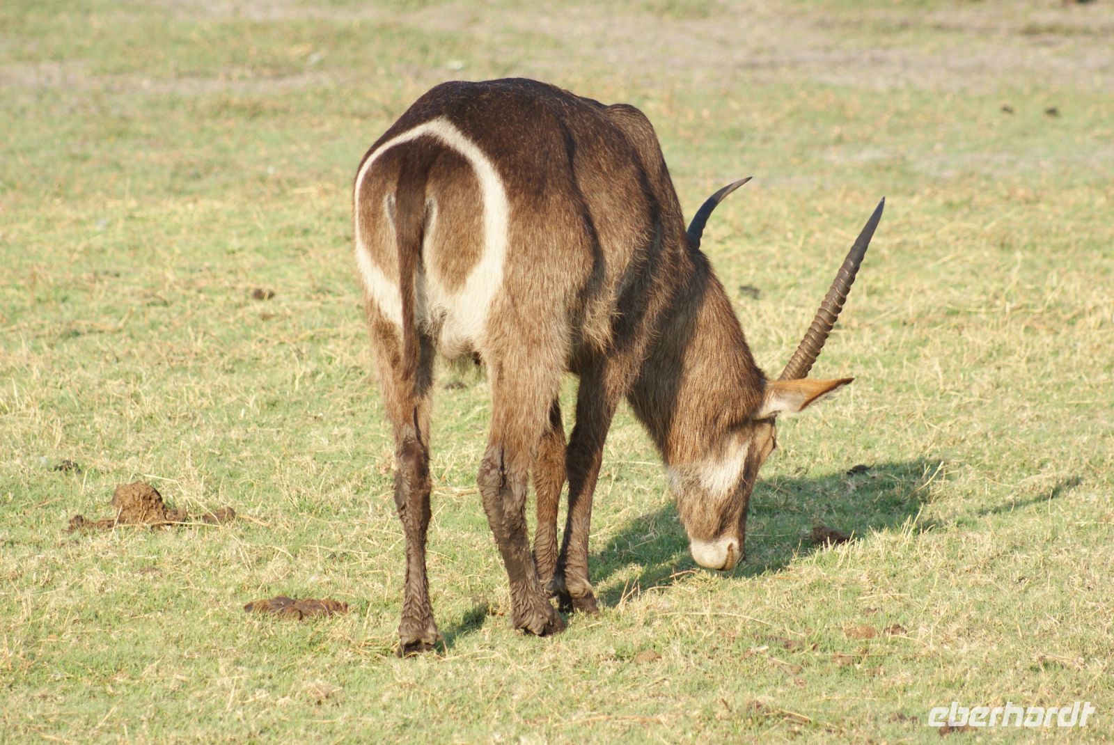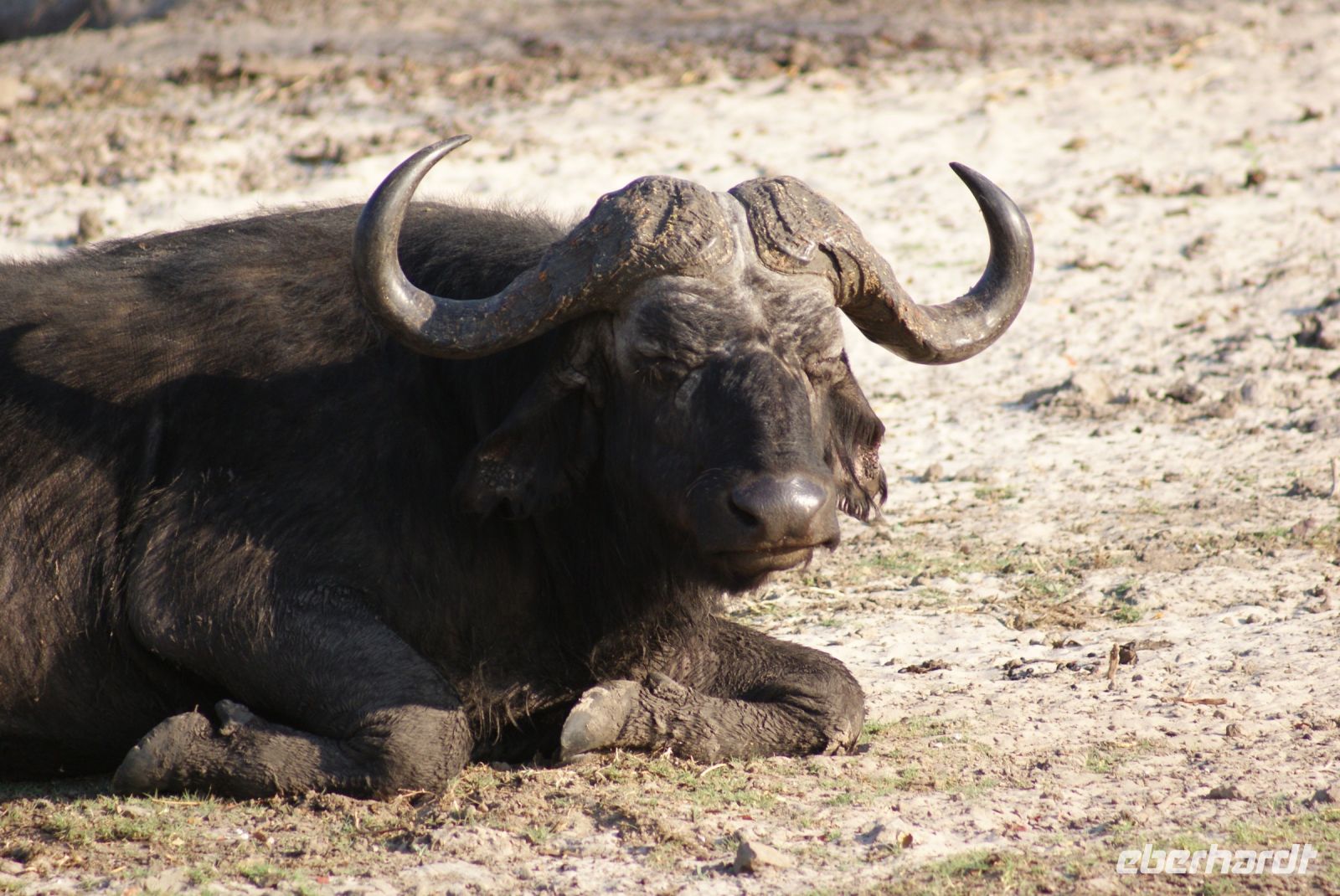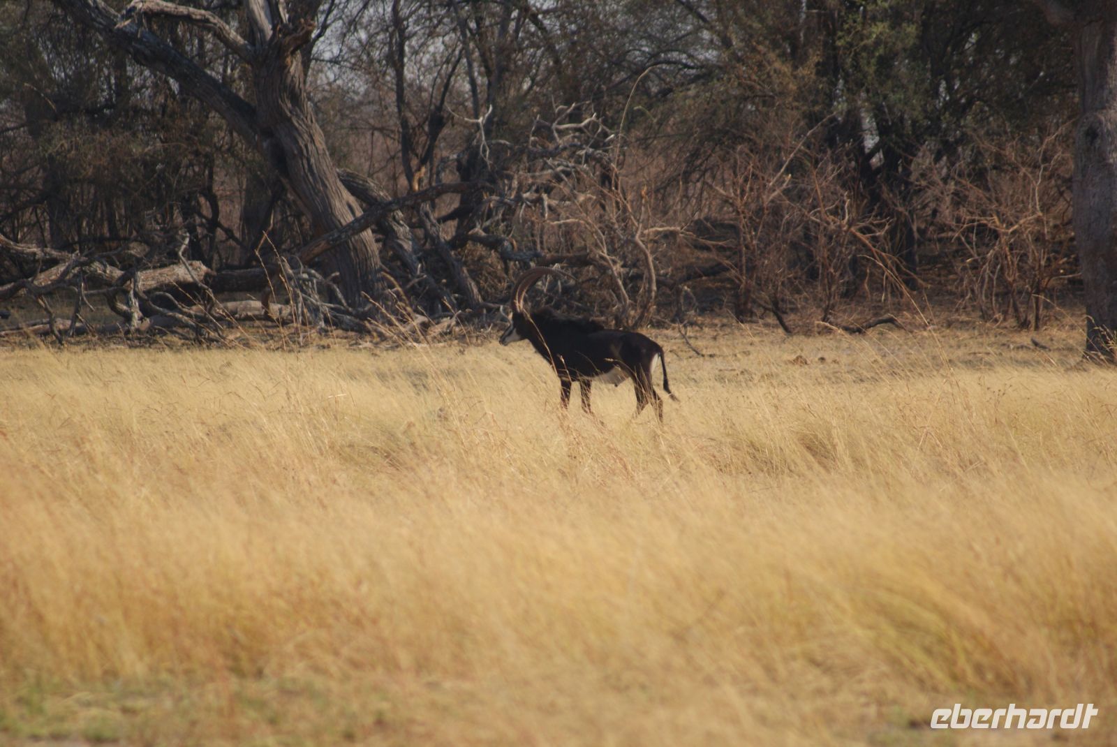 Mit den Geräuschen der namibianischen Natur, begleitet von Klicklauten der Frösche und Grunzen der Flusspferde haben wir eine herrliche Nacht verbracht. So treffen wir uns gut gelaunt zum reichhaltigen Frühstück und verlassen im Anschluss die Lodge, um via Bootstransfer zu unseren Safarijeeps zu gelangen. Es erfolgt eine 3-stündige Pirschfahrt, wo wir so manch seltene Tiere zu Gesicht bekommen. Hierzu zählt die vom Aussterben bedrohte Rappenantilope sowie die Lechwe (Sumpf)-Antilopen, die es hauptsächlich hier in den Sumpfgebieten gibt. Vorbei am Leberwurstbaum mit seinen bis zu 6 Kg schweren Früchten, weist uns Guide Aldrin darauf hin, dass es nicht ratsam ist, unter einem solchen zu zelten… Gut, dass wir noch eine weitere Nacht gebucht haben, zum ersten Mal auf unserer Reise durch Namibia sehen wir nun zahlreiche Büffel, die als das bekanntlich gefährlichste Tier der „Big Five“ gelten und die im Etosha Nationalpark nicht mehr vorhanden sind. Auch Elefanten geben sich die Ehre, mit einer großen Herde mit ca. 20 Tieren am Wasser, wo diese genüsslich trinken und wir sie in aller Ruhe beobachten können. Guide Aldrin erkennt, dass etwas im Busch ist. Kudu Antilopen und Gnus starren in eine Richtung-da muss Gefahr lauern. So fahren wir dort hin und entdecken eine Hyäne im Busch, die von uns reiß aus nimmt. Ein tolles Erlebnis, dieses mächtige Tier so nah zu sehen. Abschließend sehen wir neben Weißrückengeiern, Gabelracken, Bienenfressern noch die sehr seltene Tsosebe Antilope, die die schnellste unter den Antilopen Afrikas ist und bis zu 100 Km/h laufen kann. Zurück zur Lodge fahren wir wieder per Boot und freuen uns über den tollen Vormittag mit besonderen Erlebnissen. Die Mittagszeit verbringen wir nach Lust und Laune und genießen die Ruhe in unserer Anlage. Am späten Nachmittag starten wir per Boot zur Sundowner-Tour auf dem Kwando. Erneut genießen wir auf dem Wasser die herrliche Landschaft, die Bienenfresser und Eisvögel, die um uns herum ihre Flugakrobatik zum Besten geben, bestaunen den afrikanischen Jacana, der auch „Jesusvogel“ genannt wird („kann auf den Blättern im Wasser laufen“). So manche Antilopen sehen wir am Ufer und das unvergessliche Highlight sollte folgen. Zum Sonnenuntergang stoppen wir unser Boot, um mit einem kühlen Getränk auf den Tag anzustoßen. Plötzlich kommen mehrere Elefantenherden in unmittelbarer Nähe zum Fluss, um hier zu trinken. Was für ein unglaublicher Moment-wir sind sprachlos. Schöner kann es nicht sein. Dazu die untergehende Sonne, die friedlichen Tiere und wir mittendrin. Die anschließende Rückfahrt lässt uns still die Ereignisse Revue passieren und wir sind dankbar all dies hier erlebt zu haben. Ein letztes Abendessen unter dem namibianischen Sternenhimmel erfolgt hier am Kwando bevor wir morgen weiter nach Botswana ziehen.
