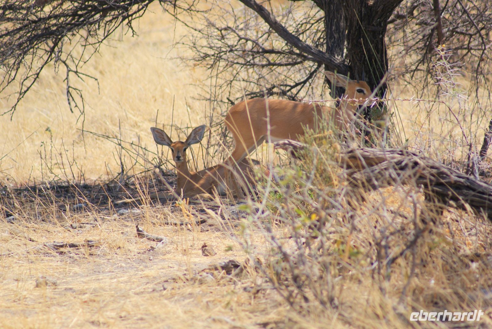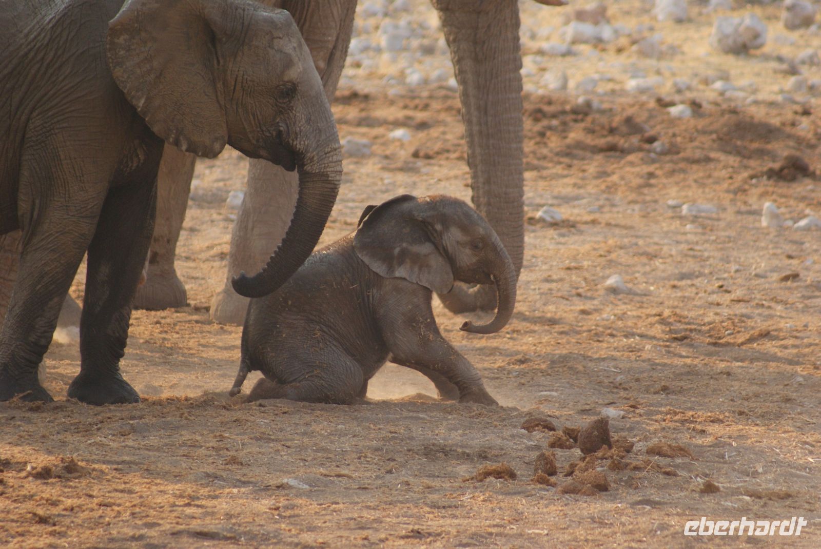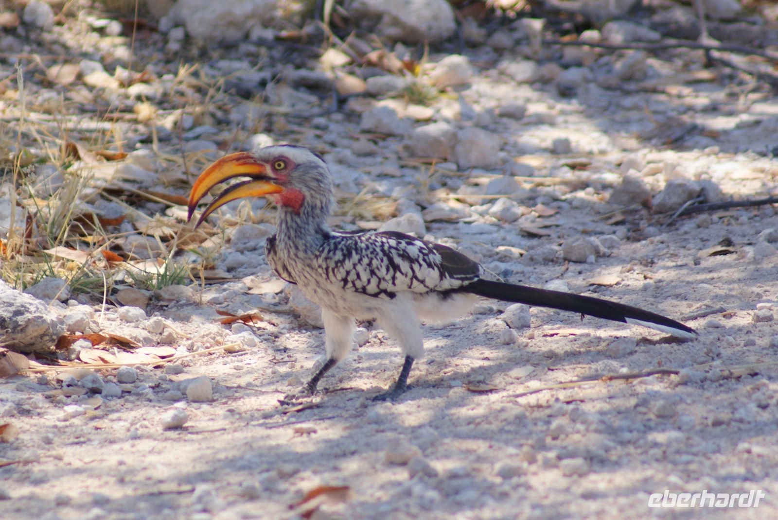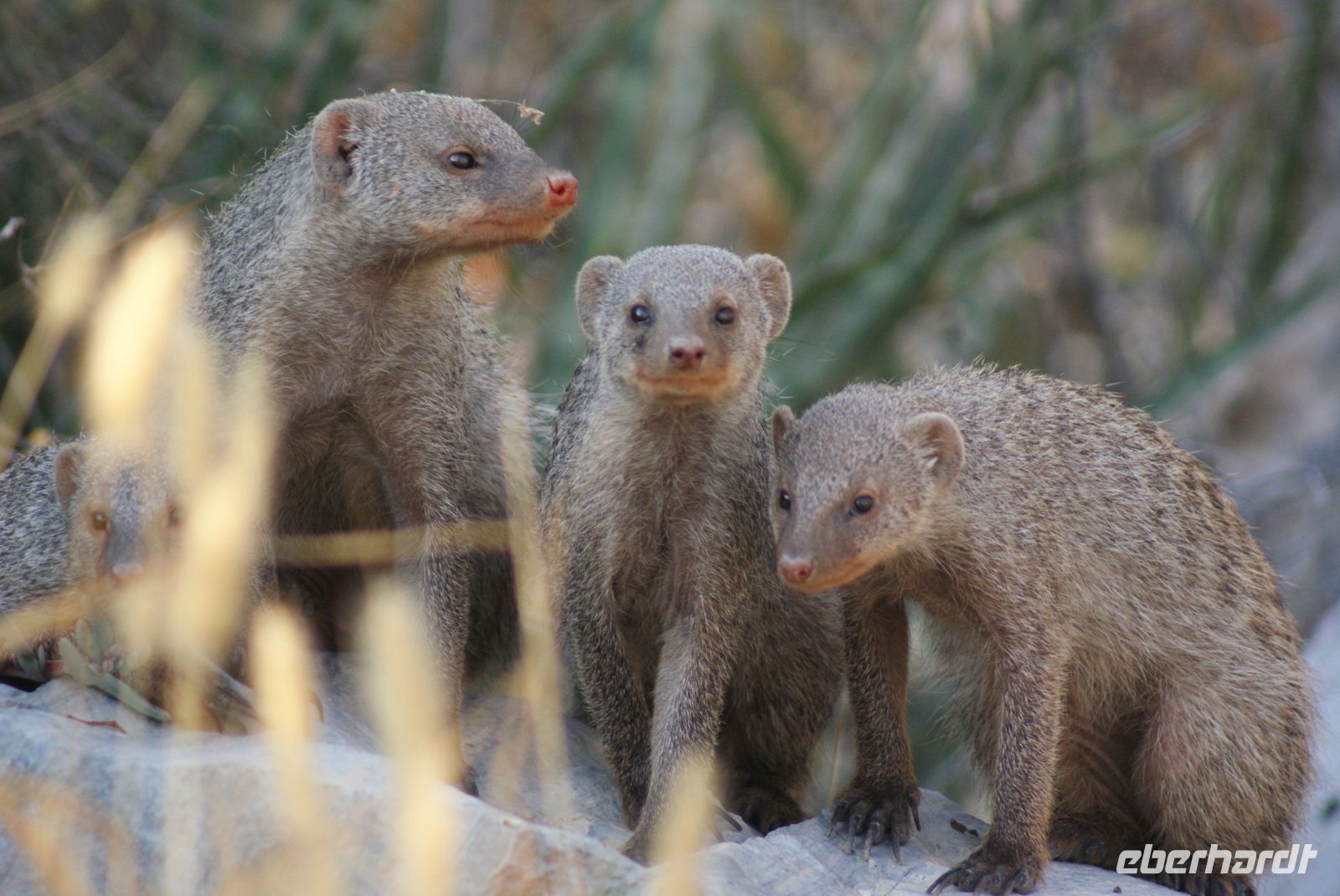Nach einem tollen Frühstück verlassen wir bereits am sehr frühen Morgen unsere Lodge, um als eine der ersten nach Öffnung des Parks zum Sonnenaufgang hineinzufahren. Auf Safari gilt es die frühen Morgenstunden zu nutzen, in denen es noch kühl ist und man gute Möglichkeiten hat, die Tiere zu sichten. Unser Engagement soll schon bald belohnt werden. Eine Gruppe Elandantilopen, die größte Antilopenart Afrikas, kreuzt unseren Weg und wir bestaunen diese mächtigen Tiere, die bis zu 950 Kg schwer werden können. Anschließend erhalten wir einen heißen Tipp zu einer ganz besonderen Sichtung. Wir folgen diesem und entdecken schon bald ein mittlerweile sehr seltenes Spitzmaulnashorn, welches genüsslich die Blätter eines Buschs verzehrt. Kurz darauf stoßen wir auf eine Tüpfelhyäne, die an uns vorbeizieht. An einem Wasserloch hält sich eine Gruppe Kuhantilopen auf und auch diese anmutigen Tiere, sind im Normalfall auch eher selten anzutreffen. Viele Oryxantilopen oder auch Gemsböcke genannt, kommen zum Wasserloch und bilden eine Einheit mit den bereits vorhandenen Kudukühen. Die heiße Mittagszeit verbringen wir in unserer Lodge und nutzen die kleine Auszeit für einen Sprung in den Pool, ein kühles Getränk oder etwas Augenpflege. Am frühen Nachmittag ziehen die meisten von uns nochmals mit in den Park und auch nun haben wir wieder tolle Tiersichtungen zu vermelden. Eine Elefantenherde von elf Tieren halten sich am Wegesrand auf, eine Elefantenkuh mit Kalb kreuzt unsere Straße und natürlich sehen wir erneut die üblichen Verdächtigen wie Springböcke, Giraffen, Oryxantilopen, Impalas. Wieder großes Glück-wir finden gleich zwei der majestätischen Sekretärvögel, die tatsächlich aussehen, als stolzierten sie im Frack daher, immer auf der Suche nach schmackhaften Kriechtieren. Abschließend besuchen wir nochmals das Wasserloch am Okaukuejo Restcamp, wo sich die Tiere jedoch verzogen haben. Dafür stoßen wir allerdings auf eine große Gruppe von Zebramangusten und zählen dreißig dieser possierlichen Tierchen. Nach so viel Natur und Tierwelt sind wir froh wieder in die Lodge zurückzukehren, freuen uns auf eine wohltuende Dusche, ein kühles Getränk und ein erneut herrliches Abendessen unterm Sternenhimmel.