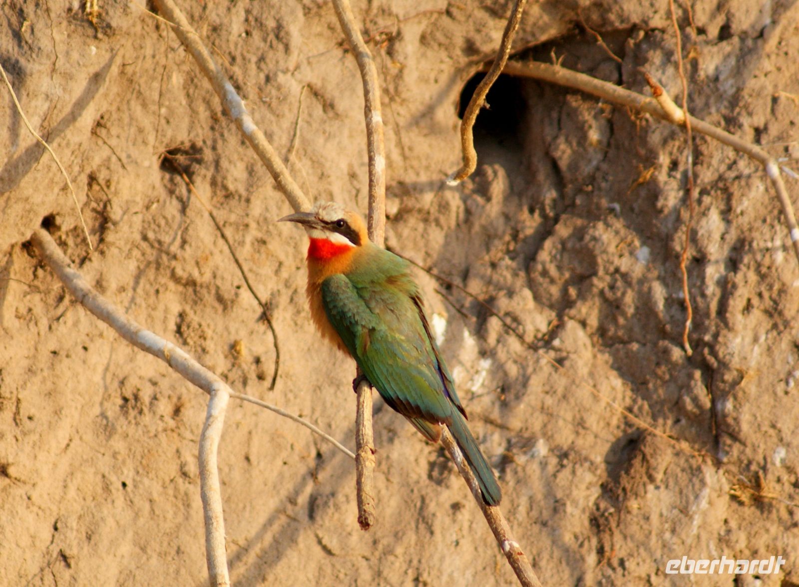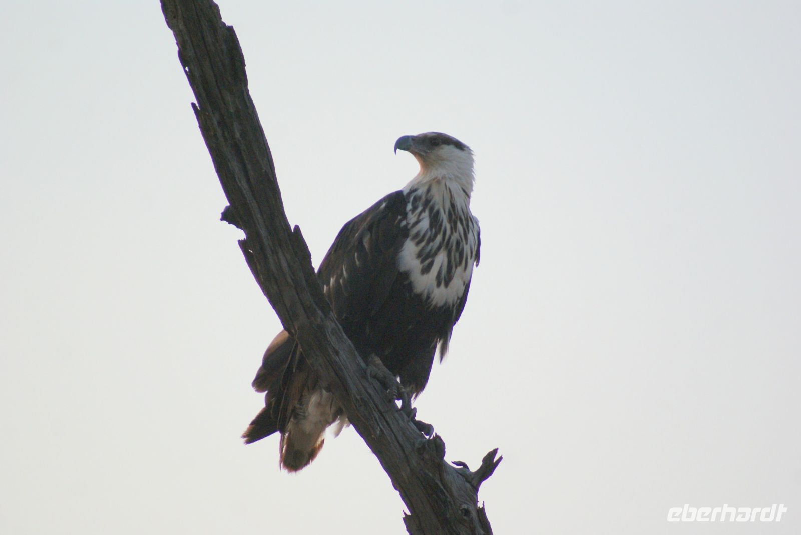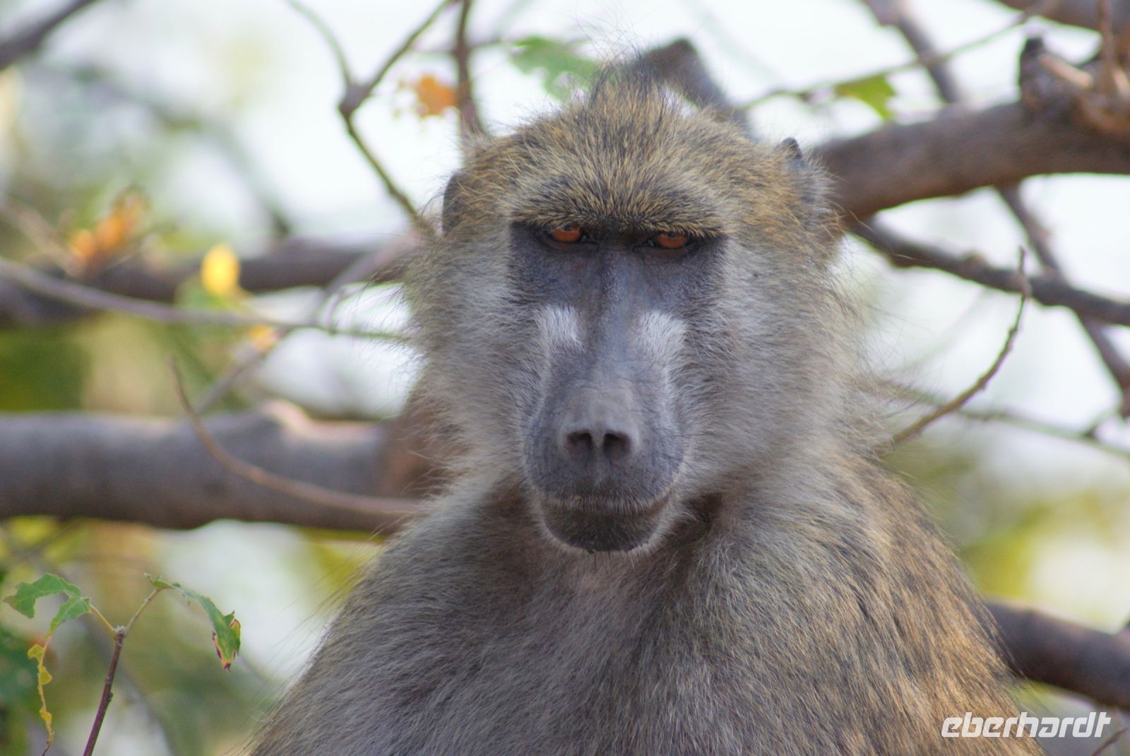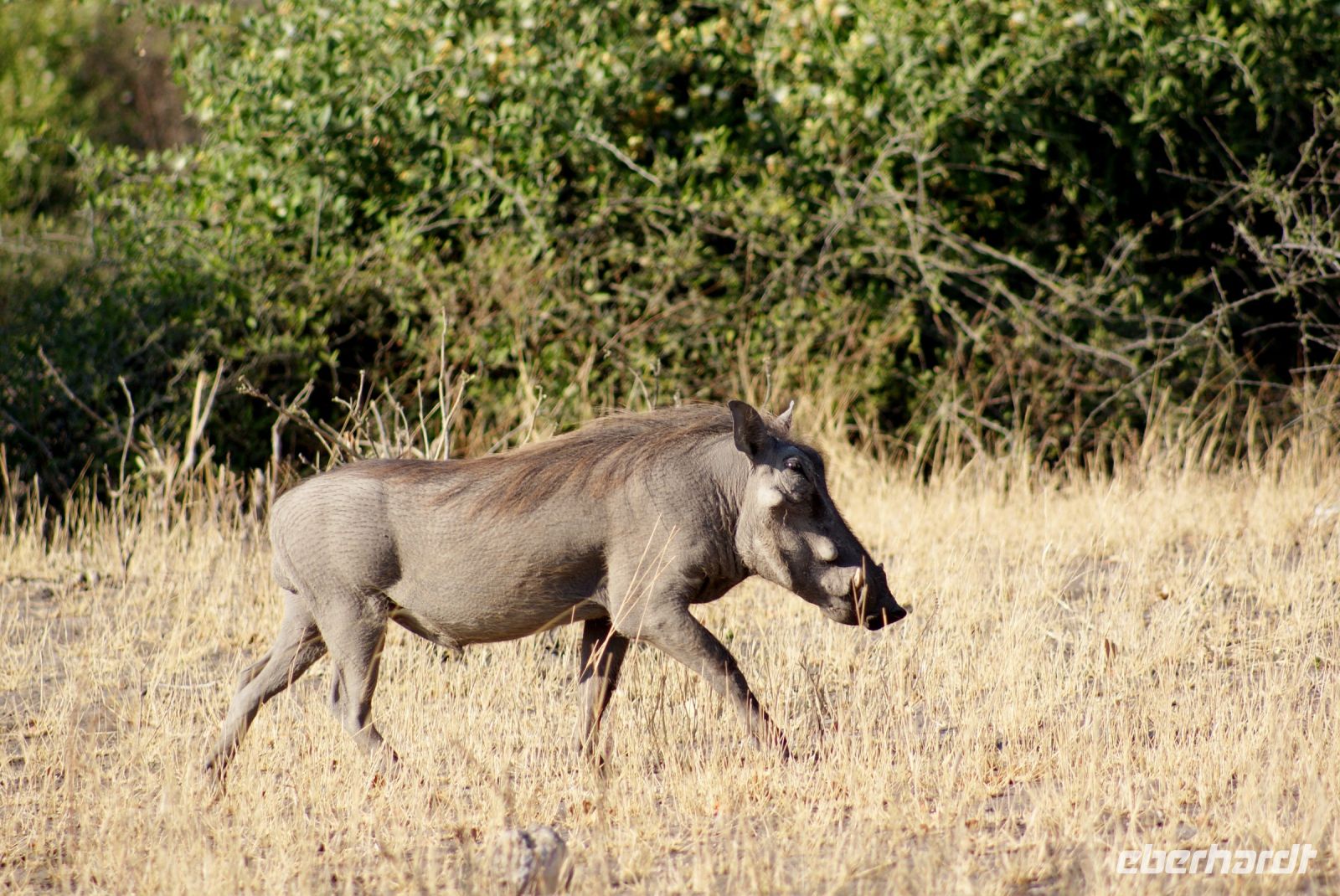 Obwohl wir heute etwas länger schlafen können, so werden wir doch schon von so manchem Vogelgezwitscher und Flusspferdgrunzen geweckt-nun es gibt wirklich schlimmeres…. Am Frühstückstreffpunkt angekommen, erhalten wir eine Überraschung! Das heutige Frühstück findet im Rahmen einer morgendlichen Bootsfahrt auf dem Kavango statt. Wow! So genießen wir das tolle Buffet, welches für uns bereitsteht und die herrliche Kulisse, die sich uns bietet. Viele Tiere grasen entlang des Flussufers, Flusspferde beäugen uns aus dem Wasser, Krokodile erwärmen sich mit den ersten Sonnenstrahlen, Hagedasch-Ibisse begrüßen uns lautstark aus der Luft-ein wunderbarer Start in den Tag! Anschließend geht es mit unserem Safari-Truck in den Mahango Nationalpark. Hier sehen wir wieder so manche Tiere, wie Warzenschweine, die seltenen Riedböcke, den seltenen Riesenglanzstar, Bienenfresser mit wunderschönem Federkleid sowie Buschböcke, die nur in dieser Region zu sehen sind. Den Park verlassend geht es auf zu den „Popa Falls“, diese ähneln eher Stromschnellen und wir entdecken Fischotter, die vergnügt im Wasser tollen, dazu noch ein Krokodil, welches auf einem Felsen Platz nimmt. Zurück in der Lodge genießen wir freie Stunden und die tolle Atmosphäre der Anlage, bevor es nachmittags wieder auf Bootstour mit Sundowner geht. Auch diese Fahrt ist für uns eine wahre Wonne, umgeben von Hippos, Tieren links und rechts am Ufer, ein laues Lüftchen und ein kühles Getränk, lässt es sich nun wahrlich aushalten. Es folgt ein wunderschöner Sonnenuntergang, der uns schweigen und die Atmosphäre genießen lässt. Abends wird für alle Gäste der Lodge wieder ein tolles Abendessen bereitet, erstaunt stellen wir fest, dass der Mond heute eine Stunde später aufgeht als noch am Vorabend, wie sich das verhält, lässt sich uns nicht erschließen.