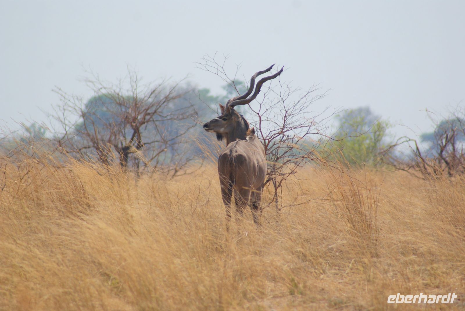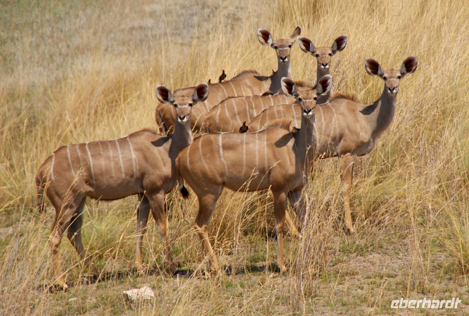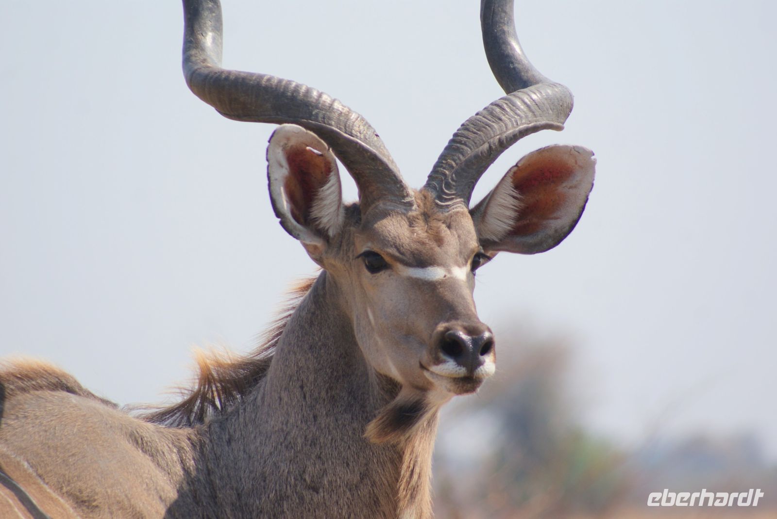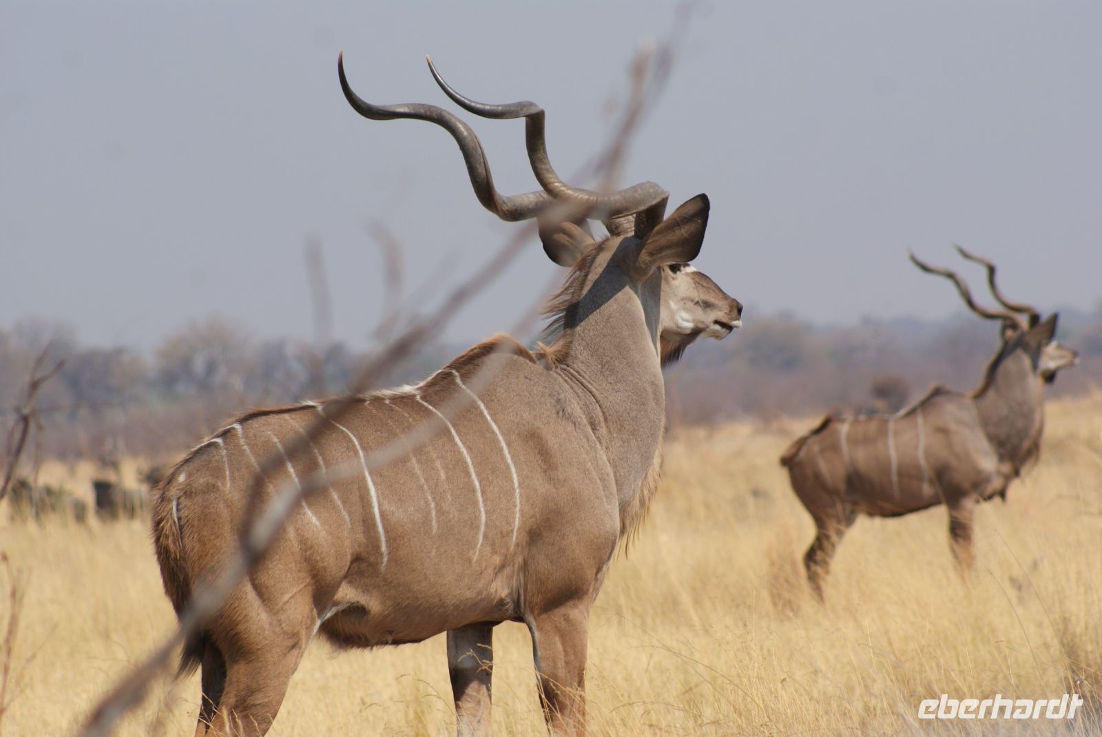 Nach einer geruhsamen Nacht und einem wunderbaren Frühstück mit Blick auf den Fluss ziehen wir weiter entlang der Sambesi Region Richtung Osten. Wir durchfahren den Bwabwata Nationalpark und befinden uns nun zwischen zwei Ländern. Zur rechten Seite liegt Botswana, zur linken Seite Angola, wir auf der Transitstraße noch in Namibia. Elefantenwarnschilder weisen darauf hin, dass jederzeit mit den Dickhäutern zu rechnen ist. Nachdem wir das besondere Schild fotografiert haben, stoßen wir auf eine große Herde mit ca. 20 Elefanten-einfach unglaublich. Kurz vor unserem Tagesziel sehen wir die seltenen Lechwe Antilopen, die jedoch zu scheu sind, um sich von uns fotografieren zu lassen. Dafür präsentieren sich viele Kudus mit riesengroßen Ohren und lassen sich bereitwillig von uns aufnehmen. In Kongola besuchen wir einen schönen Souvenirladen und erreichen am frühen Nachmittag die wunderschöne Namushasha Lodge, welche idyllisch am Kwando liegt. Wir genießen den freien Nachmittag in unseren komfortablen Unterkünften und lassen die Seele mit Blick auf Fluss und Landschaft dahinter baumeln. Abends erfolgt ein sehr köstliches Abendessen, welches wir auf der Terrasse der Lodge unter dem Sternenhimmel mehr als zu schätzen wissen.