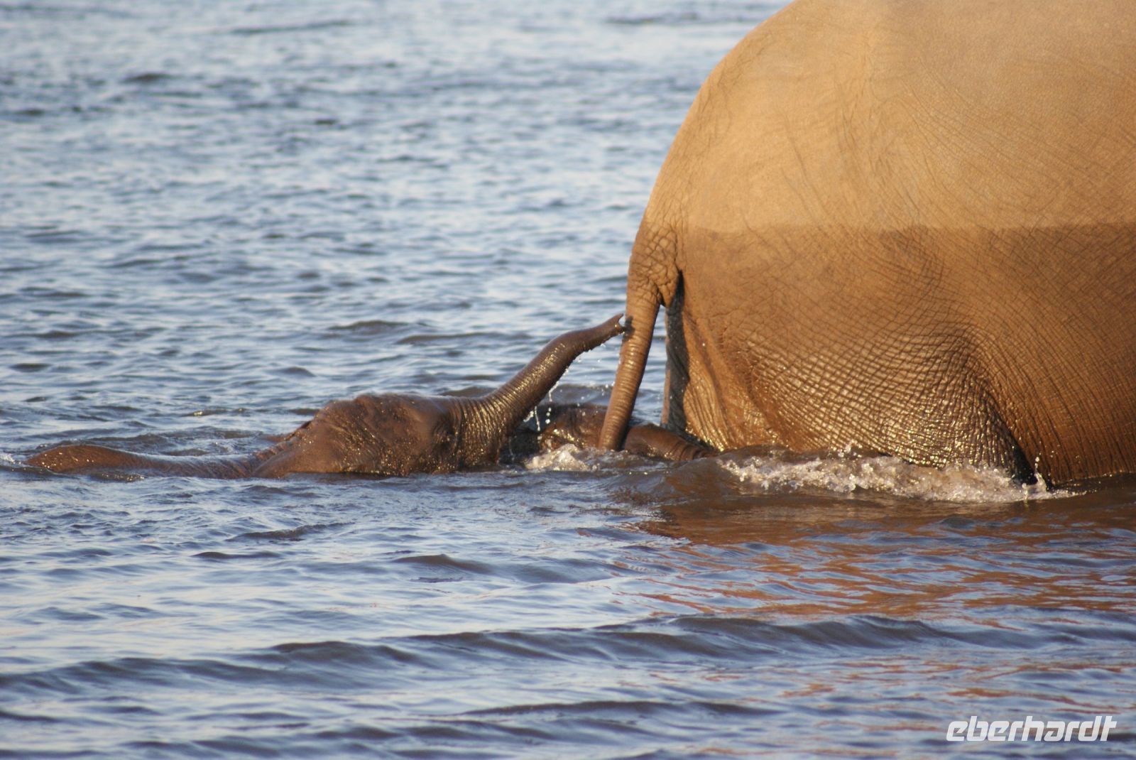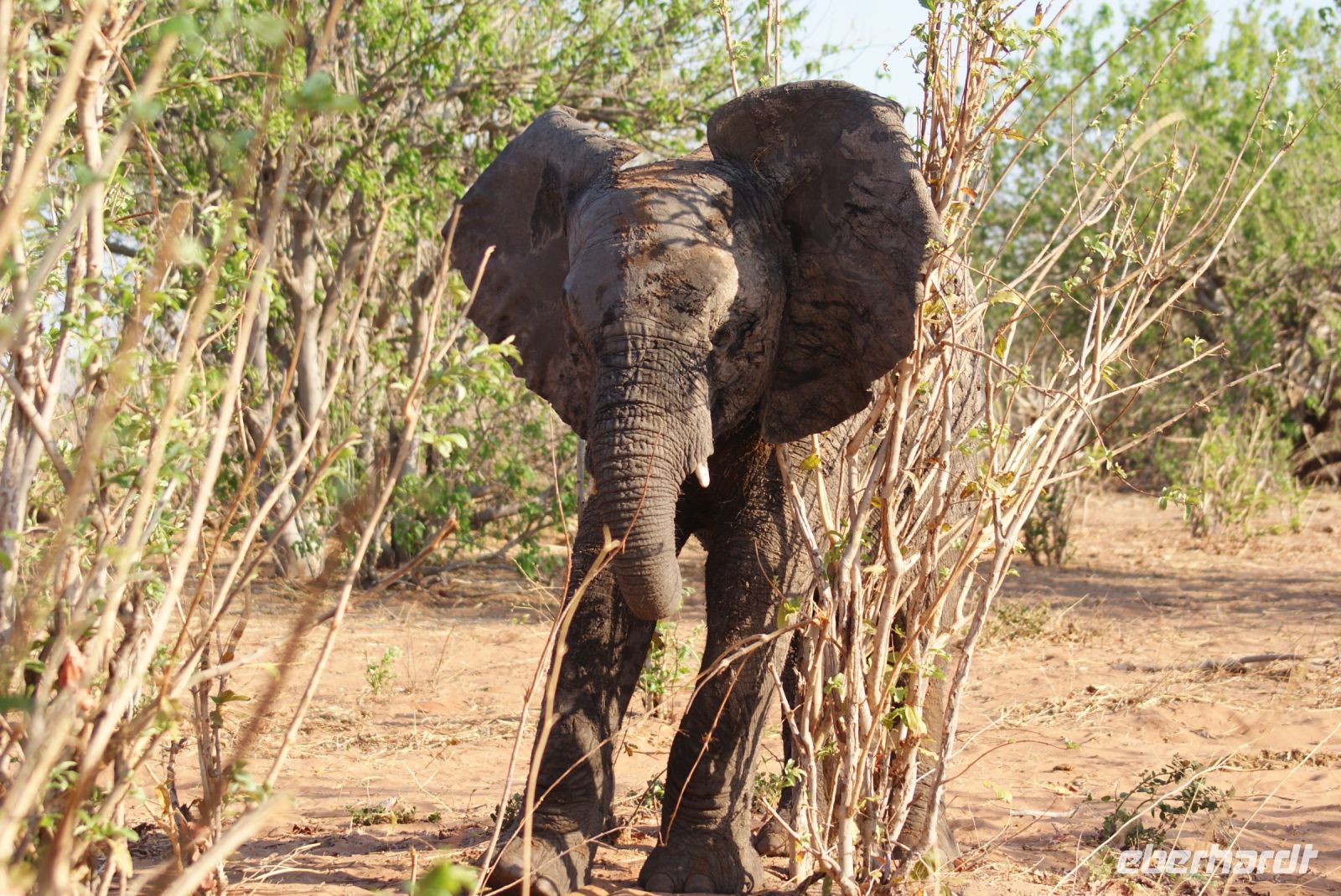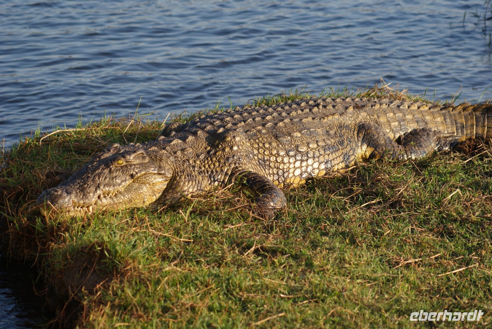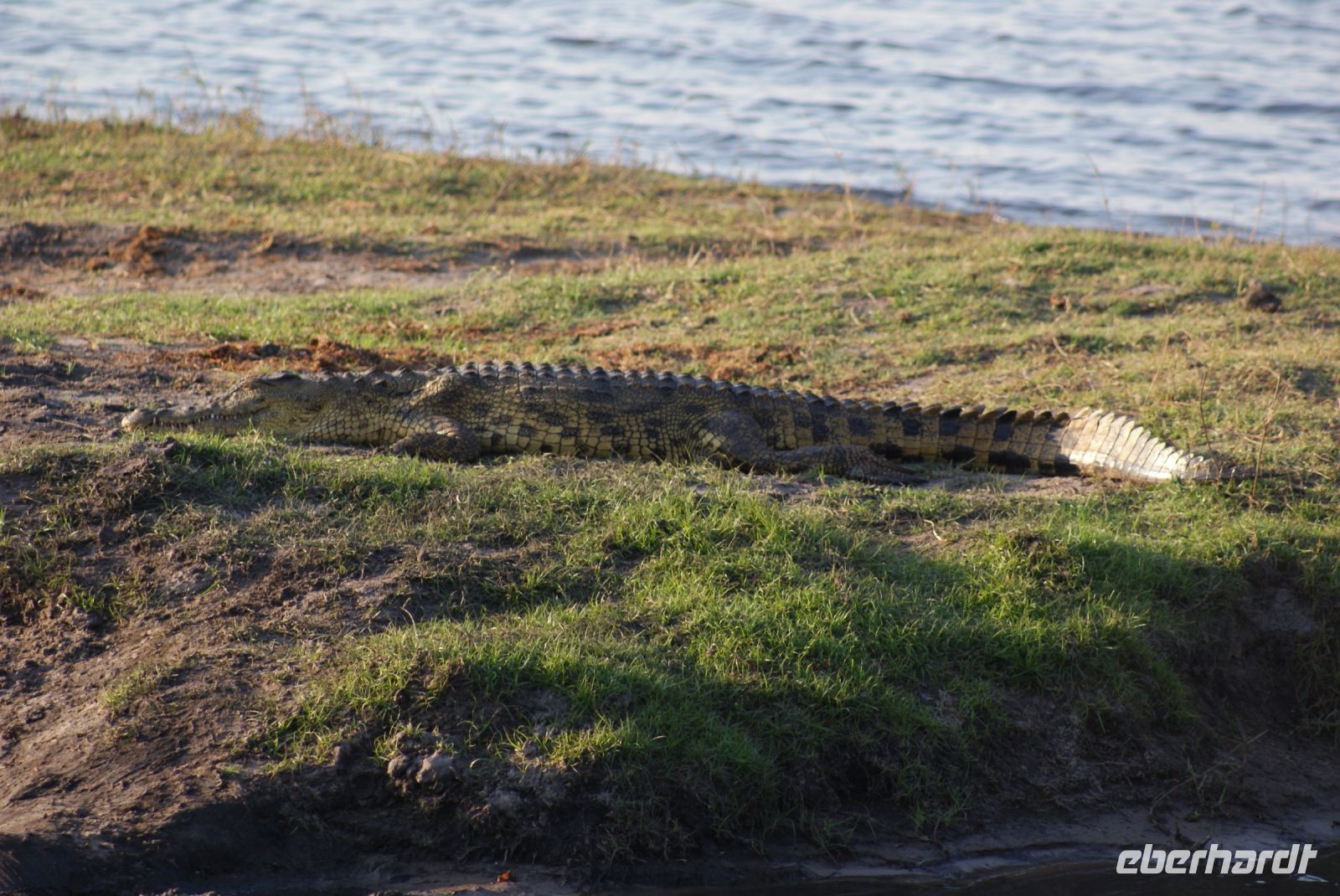 Bevor wir heute Namibia verlassen, statten wir dem nah gelegenen Cultural Village –dem lebenden Museumsdorf –einen Besuch ab. Wir werden von einem Stammesmitglied durch das Dorf geführt und über die verschiedensten Alltagsdinge des Stammes wie Ackerbau, Töpferei, Hausbau, Viehwirtschaft, etc. unterrichtet. Viele Stationen werden live vorgeführt, so sehen wir den Schmied bei seiner Arbeit, wir sehen, wie man Vögel, vorzugsweise Perlhühner, mit einfachen Fallen fängt, lernen, wie ein Haus entsteht und ein Hühnerstall mit darunter befindlicher Falle gefertigt wird. Danach erfolgen noch verschiedene Gesänge und Tänze und zum krönenden Schluss kommt noch der Medizinmann ins Spiel, der den Baobabbaum hinaufklettert und uns somit Glück für die weiterführende Reise bringen soll. Nehmen wir es als gutes Zeichen und ziehen weiter Richtung Katima Mulilo, wo wir uns für einen Mittagssnack einkaufen. Nun ist es nicht mehr weit bis zur Grenze nach Botswana. Dort angekommen, erledigen wir die Formalitäten und schon bald darauf befinden wir uns auf einer Transitstraße, die durch den Chobe Nationalpark führt. Dieser misst 11.700 Km² und beherbergt an die 250.000 Elefanten. Zwei von Ihnen sehen wir schon kurz nach unserer Einfahrt, die beide liegend unter einem Baum ein Mittagsschläfchen halten. Sehr ungewöhnlich und wir staunen über dieses seltene Bild. So manche Elefantenherde entdecken wir noch am Wegesrand, bis wir schließlich Kasane und somit unser Tagesziel erreichen. Hier wartet bereits unser Safari-Jeep auf uns, den wir für eine Nachmittagspirschfahrt gebucht haben. Schnell im neuen Hotel eingecheckt und schon geht es zurück in die Natur zu den Tieren. Wir können uns nicht satt sehen-hunderte Elefanten haben sich rund um den Chobe River versammelt um sich hier mit Nahrung zu versorgen. Umgeben von den Dickhäutern sind wir einfach nur froh, diesen zusätzlichen Ausflug gebucht zu haben, der uns noch so manche Überraschung in Form von Flusspferden, Krokodilen und dem besonders seltenen Honigdachs bereithält. Zurück in unserer neuen Unterkunft genießen wir das erste Abendessen in Botswana bei Marimba-Klängen und lassen den Tag Revue passieren.