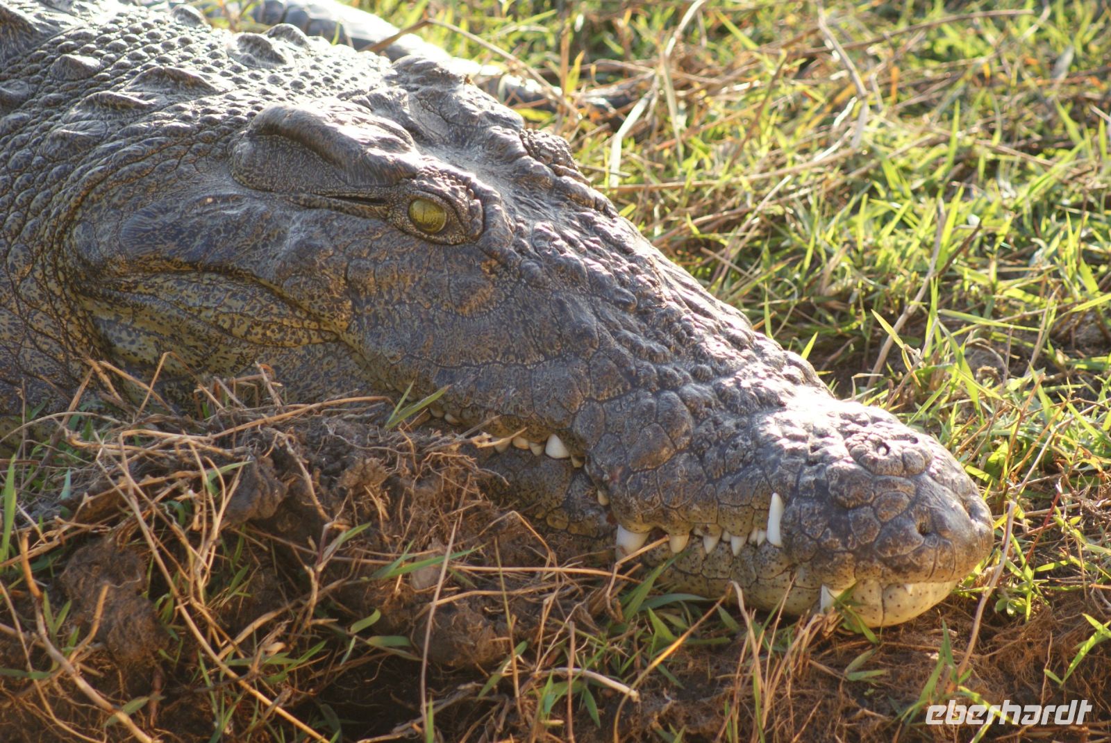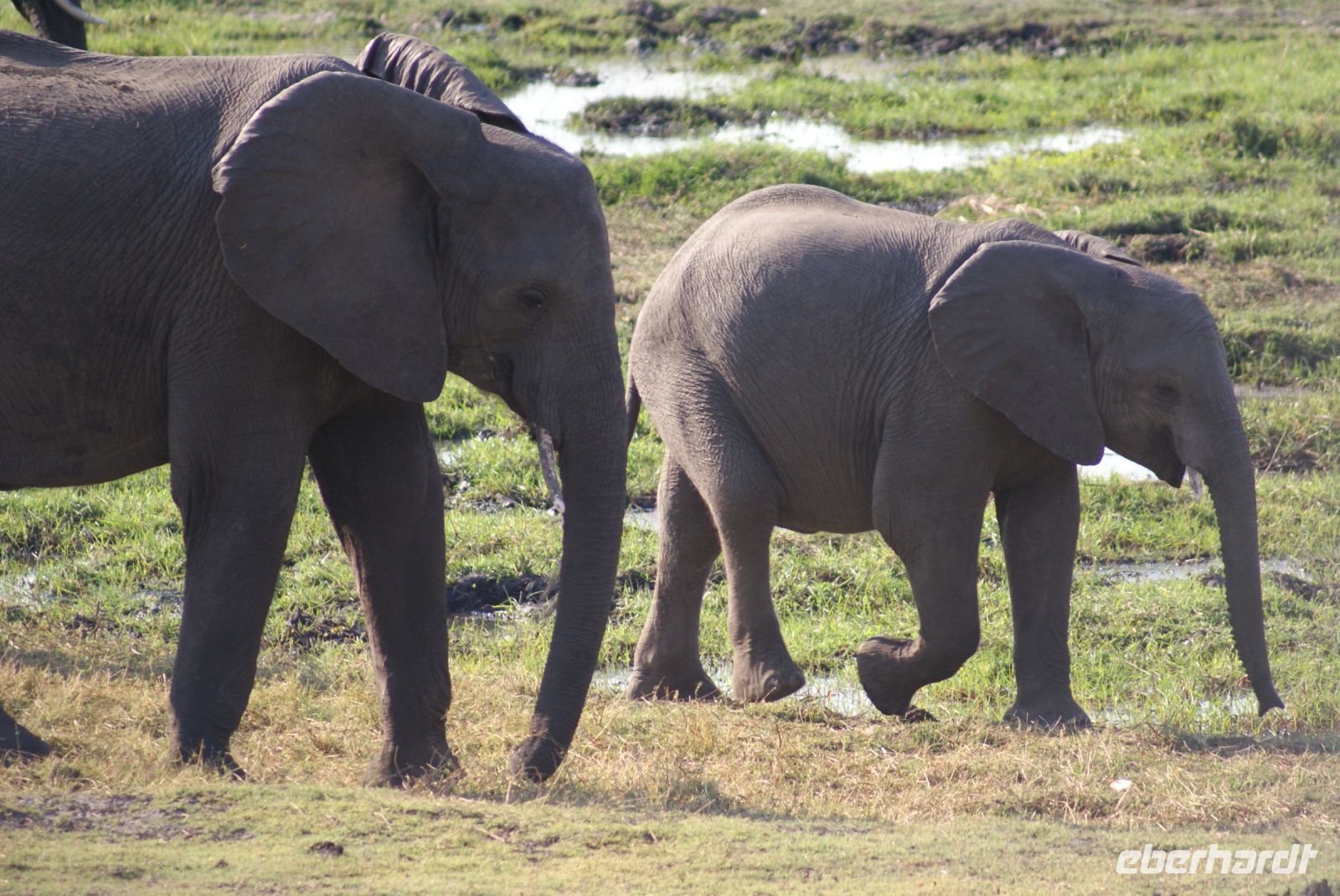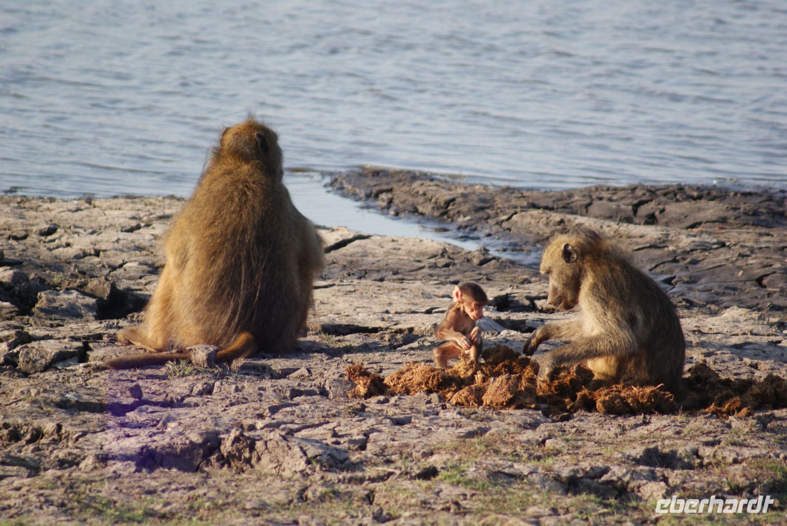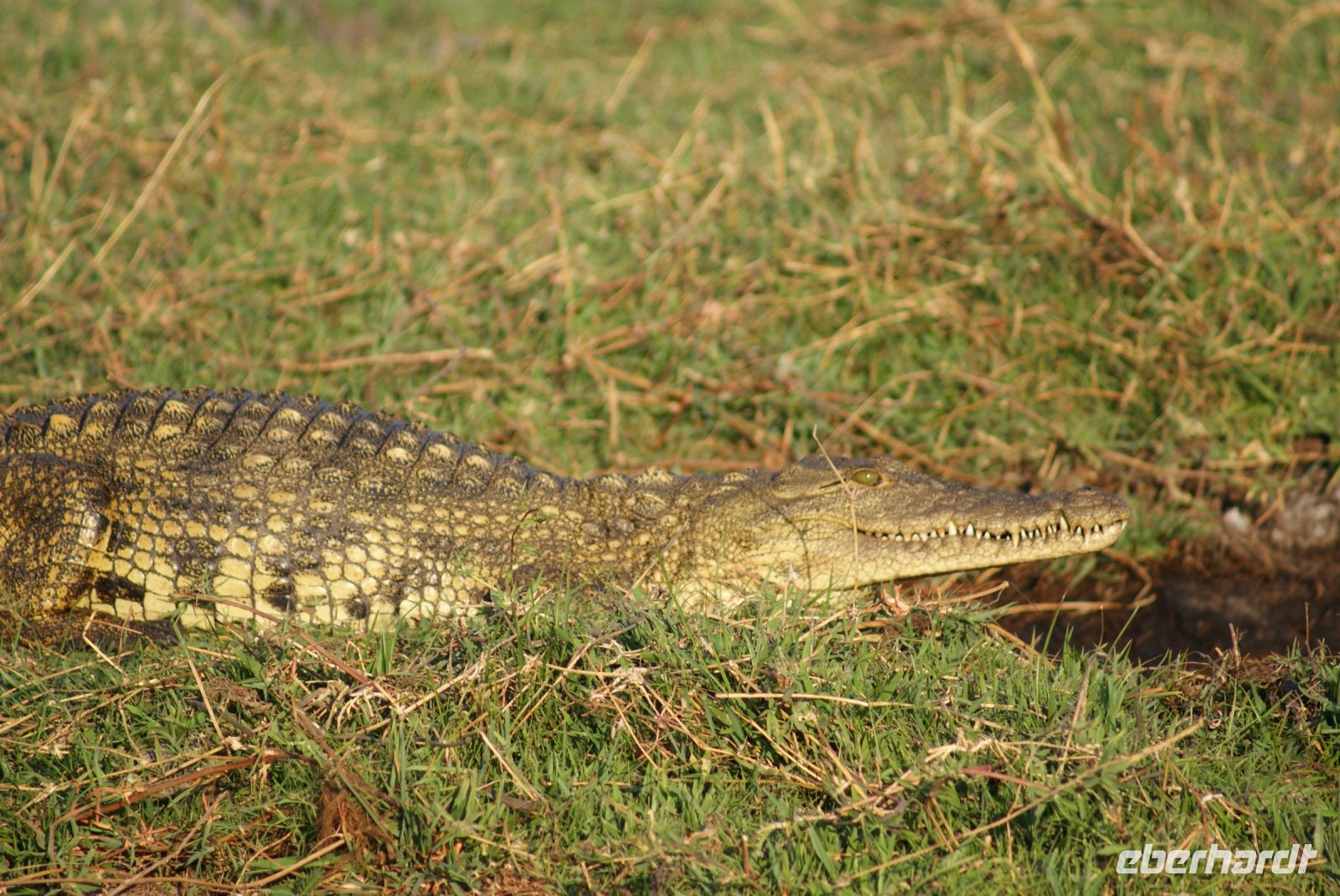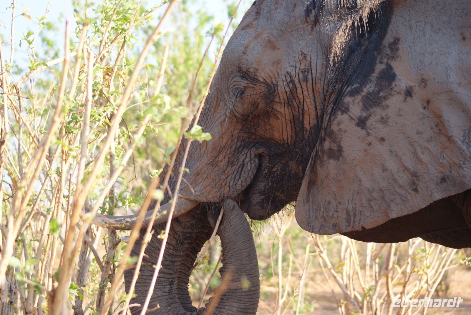 Bevor wir heute Namibia verlassen, statten wir dem nah gelegenen Cultural Village –dem lebenden Museumsdorf –einen Besuch ab. Wir werden von einem Stammesmitglied durch das Dorf geführt und über die verschiedensten Alltagsdinge des Stammes wie Ackerbau, Töpferei, Hausbau, Viehwirtschaft, etc. unterrichtet. Viele Stationen werden live vorgeführt, so sehen wir den Schmied bei seiner Arbeit, wir sehen, wie man Vögel, vorzugsweise Perlhühner, mit einfachen Fallen fängt, lernen, wie ein Haus entsteht und ein Hühnerstall mit darunter befindlicher Falle gefertigt wird. Danach erfolgen noch verschiedene Gesänge und Tänze und zum krönenden Schluss kommt noch der Medizinmann ins Spiel, der den Baobabbaum hinaufklettert und uns somit Glück für die weiterführende Reise bringen soll. Nehmen wir es als gutes Zeichen und ziehen weiter Richtung Katima Mulilo, wo wir uns für einen Mittagssnack einkaufen. Nun ist es nicht mehr weit bis zur Grenze nach Botswana. Dort angekommen, erledigen wir die Formalitäten und schon bald darauf befinden wir uns auf einer Transitstraße, die durch den Chobe Nationalpark führt. Dieser misst 11.700 Km² und beherbergt an die 250.000 Elefanten. Zwei von Ihnen sehen wir schon kurz nach unserer Einfahrt, die beide liegend unter einem Baum ein Mittagsschläfchen halten. Sehr ungewöhnlich und wir staunen über dieses seltene Bild. So manche Elefantenherde entdecken wir noch am Wegesrand, bis wir schließlich Kasane und somit unser Tagesziel erreichen. Hier wartet bereits unser Safari-Jeep auf uns, den wir für eine Nachmittagspirschfahrt gebucht haben. Schnell im neuen Hotel eingecheckt und schon geht es zurück in die Natur zu den Tieren. Wir können uns nicht satt sehen-hunderte Elefanten haben sich rund um den Chobe River versammelt um sich hier mit Nahrung zu versorgen. Umgeben von den Dickhäutern sind wir einfach nur froh, diesen zusätzlichen Ausflug gebucht zu haben, der uns noch so manche Überraschung in Form von Flusspferden, Krokodilen und dem besonders seltenen Honigdachs bereithält. Zurück in unserer neuen Unterkunft genießen wir das erste Abendessen in Botswana bei Marimba-Klängen und lassen den Tag Revue passieren.