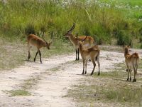 Wir sahen dann noch in einiger Entfernung eine riesige Antilopenherde, vermutlich Impalas, die urplötzlich wie wild auseinanderstiebte. Warum wohl? Der Grund wurde gefunden. Zwei Löwen hatten offenbar Hunger bekommen. Ein toller Abschluss unserer Bootsfahrt. Im Sonnenuntergang fuhren wir in Richtung Bootssteg. Der Sonnenuntergang war wegen zu starker Bewölkung leider nicht ganz so spektakulär wie erwartet.