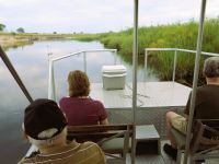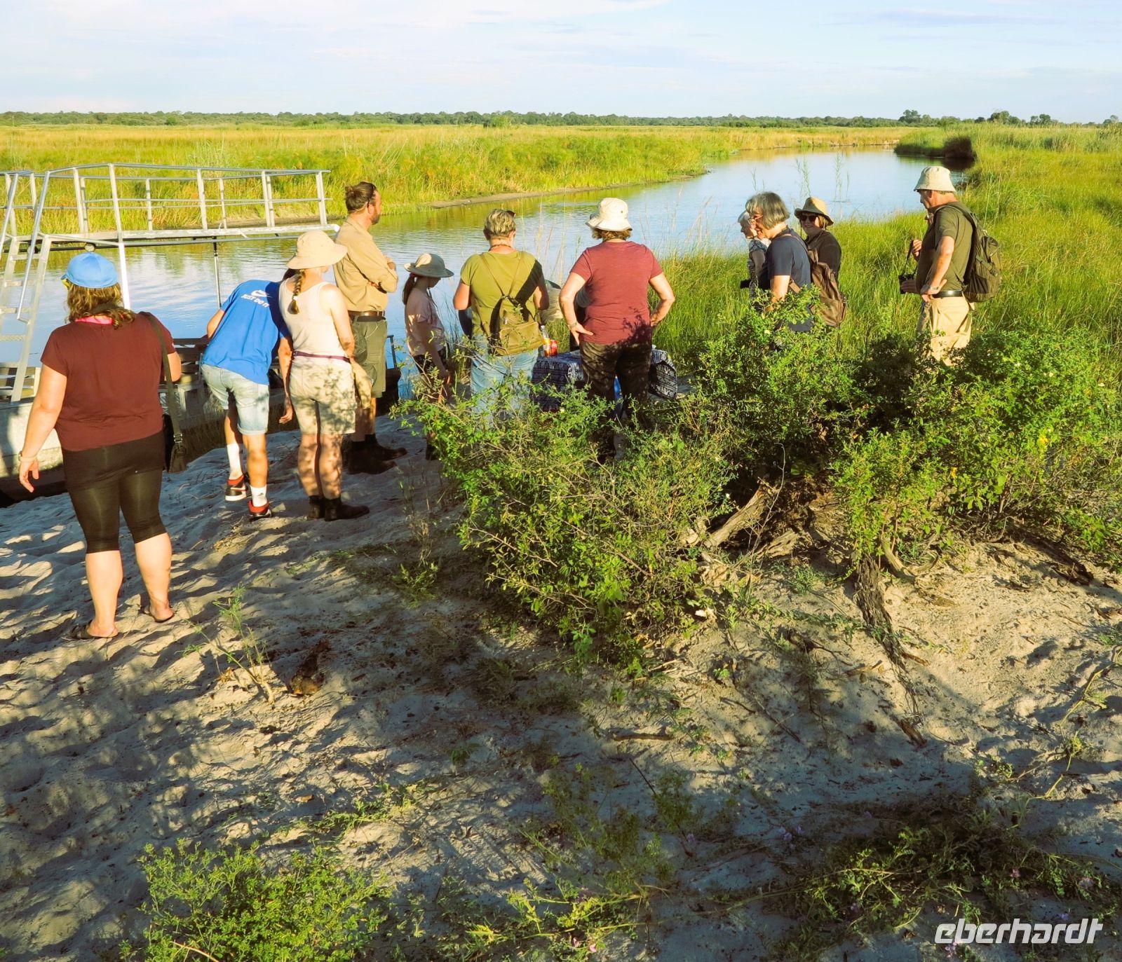 Mittels Boote wurden wir zu unseren Geländefahrzeugen gebracht. Dabei konnten wir schon Flusspferde und Krokodile beobachten.