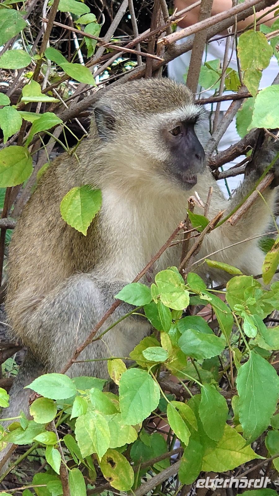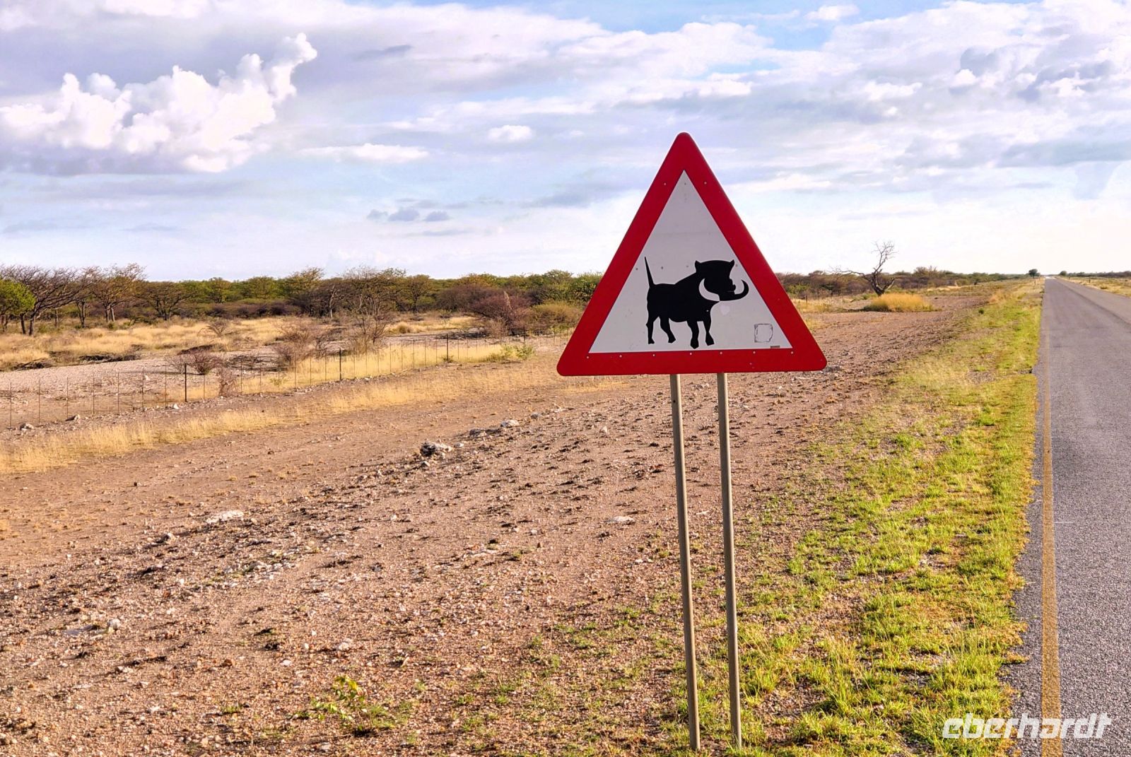 Angeblich gibt es links und rechts der Straße jede Menge Elefanten. Bestimmt ist das auch so, denn es zahlreiche Warnschilder bezüglich Elefanten. Frank hat einen Elefanten gesehen. Und einmal tauchte auch eine Giraffe auf. Das war’s. Und es gab noch Warnschilder bezüglich Wildhunde.