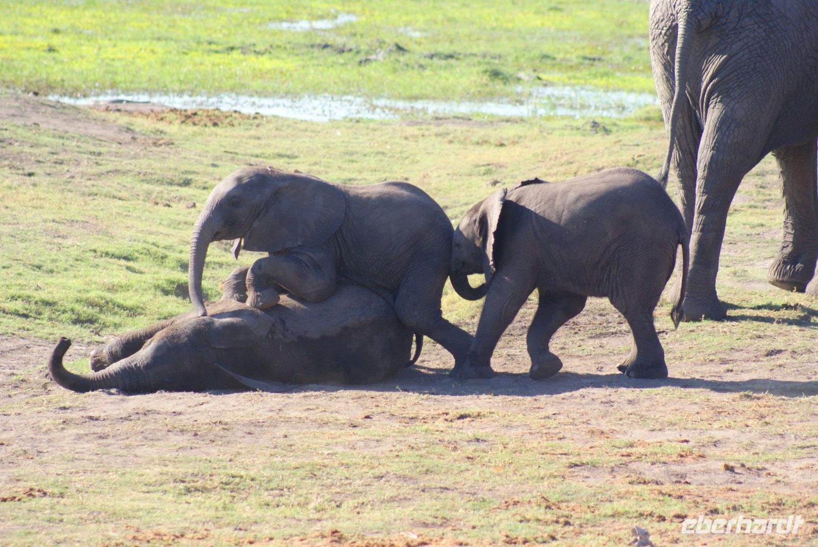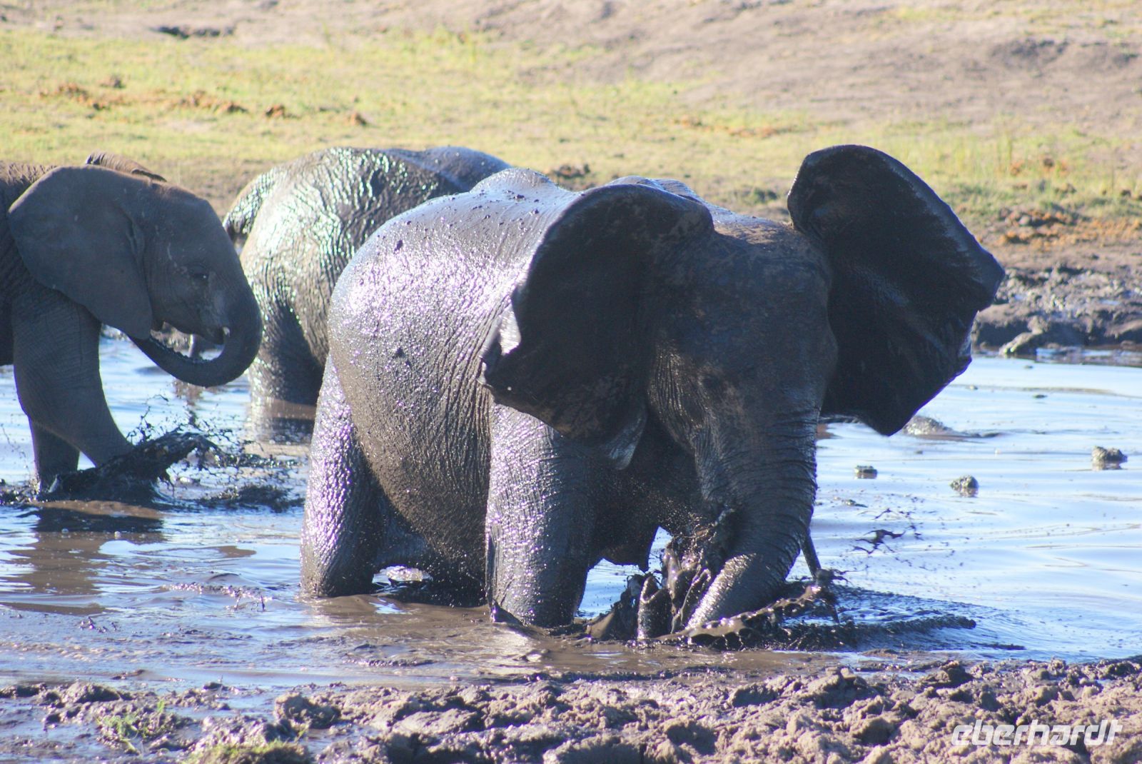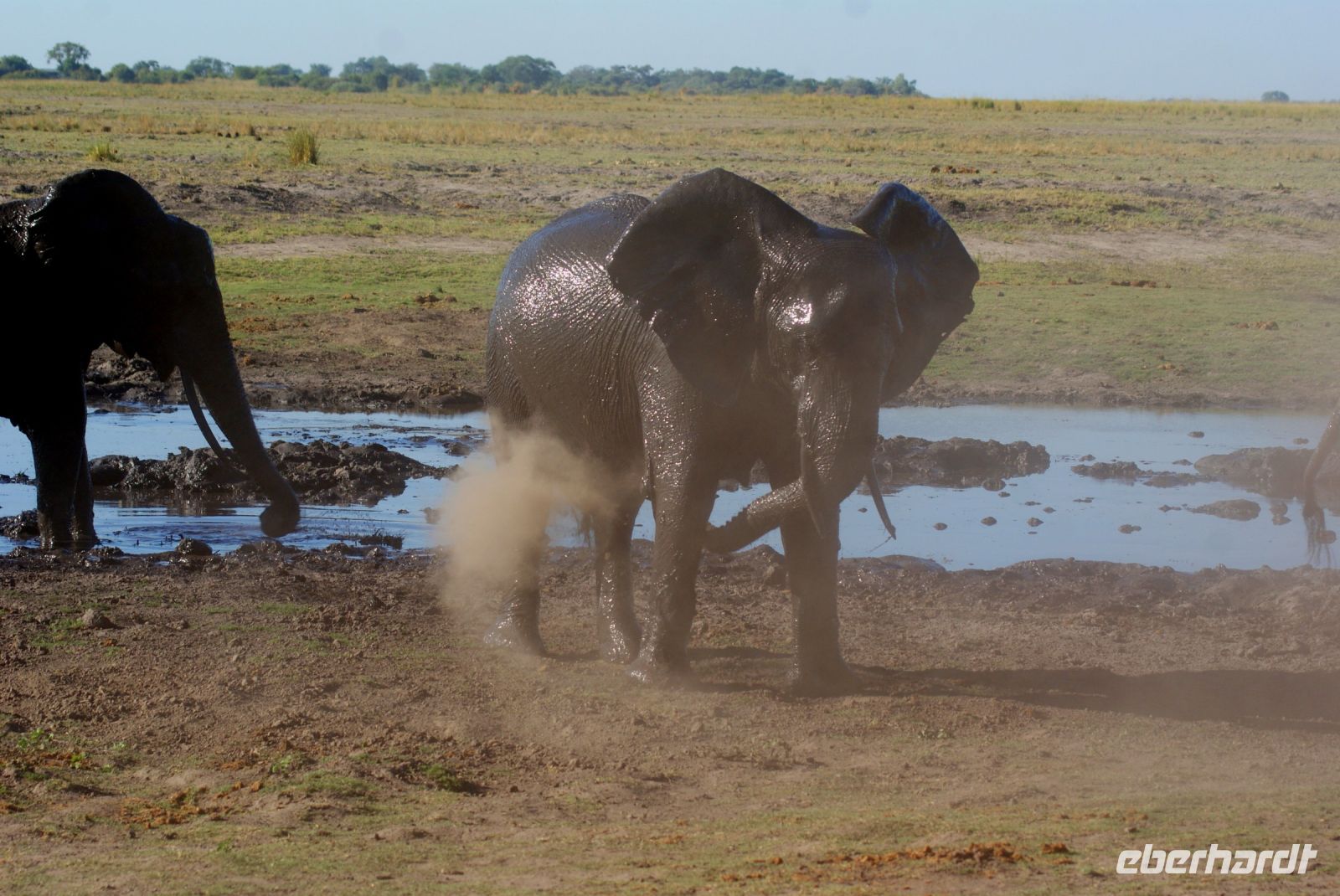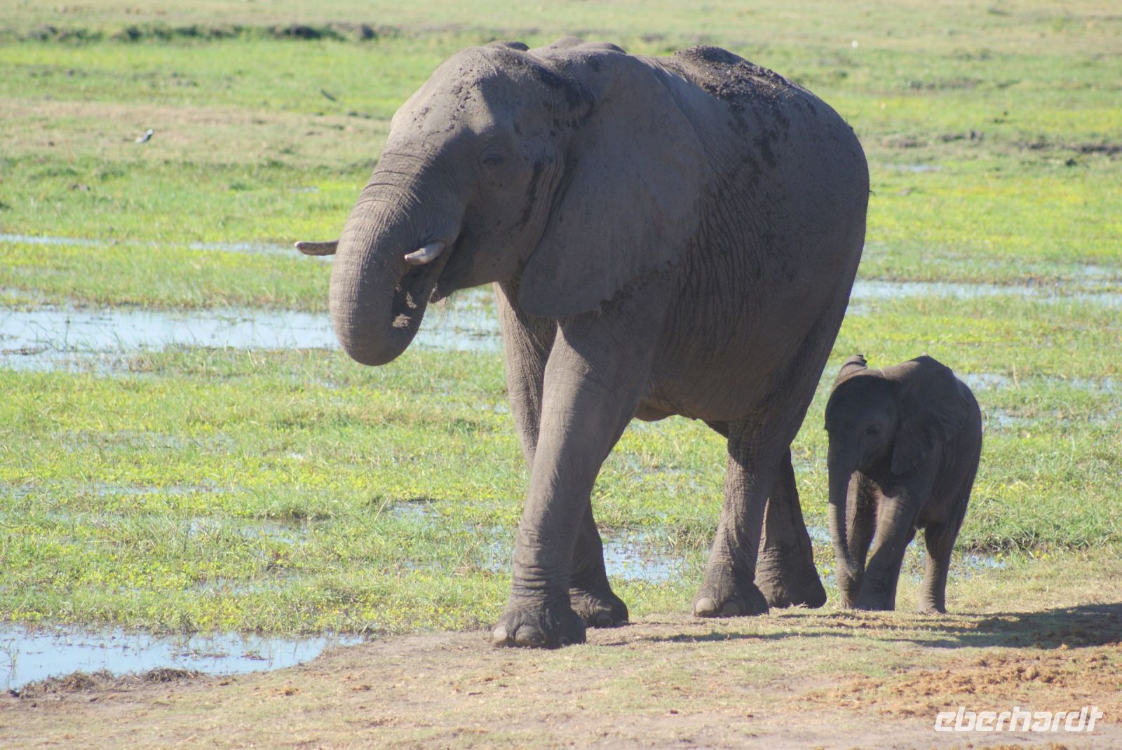 Wir verlassen die Namushasha Lodge und ziehen weiter Richtung Katima Mulilo, welches so viel wie „Feuer wird gelöscht“ bedeutet. Nun ist es nicht mehr weit bis zur Grenze nach Botswana. Dort angekommen, erledigen wir die Formalitäten und schon bald darauf befinden wir uns auf einer Transitstraße, die durch den Chobe Nationalpark führt. Dieser misst 11.700 Km² und beherbergt an die 250.000 Elefanten. So manche Elefantenherde entdecken wir noch am Wegesrand oder kreuzen unsere Route, bis wir schließlich Kasane und somit unser Tagesziel erreichen. Nach einer netten Begrüßung und zügigem Check-in in unsere „Safari-Rooms“, können wir noch einen Mittagssnack genießen. Anschließend heißt es „Heia-Safari“ und unser Safarijeep wartet bereits auf uns, den wir für eine Nachmittagspirschfahrt gebucht haben. Schon geht es zurück in die Natur zu den Tieren. Wir können uns nicht satt sehen-etliche Elefanten, von ganz klein bis ganz groß, haben sich rund um den Chobe River versammelt, um sich hier mit Nahrung zu versorgen oder einfach ein kühlendes Schlammbad zu genießen. Umgeben von den Dickhäutern sind wir einfach nur froh, diesen zusätzlichen Ausflug gebucht zu haben, der uns noch so manche Überraschung in Form von Flusspferden, Krokodilen, Kudus, Schabrackenschakal, Marabus, Paviane, Riesentrappe und Rotschnabeltokos, bereithält. Auf der Rückfahrt durch den Busch entdecken wir noch weitere Elefanten, die sich nachts ins Landesinnere zurückziehen, da es dort zum einen wärmer und geschützter vor Moskitos und Wilderern ist. Zurück in unserer neuen Unterkunft genießen wir ein tolles Grillbuffet in Botswana unter wunderbarem Sternenhimmel und lassen den Tag in geselliger Runde nochmals Revue passieren.