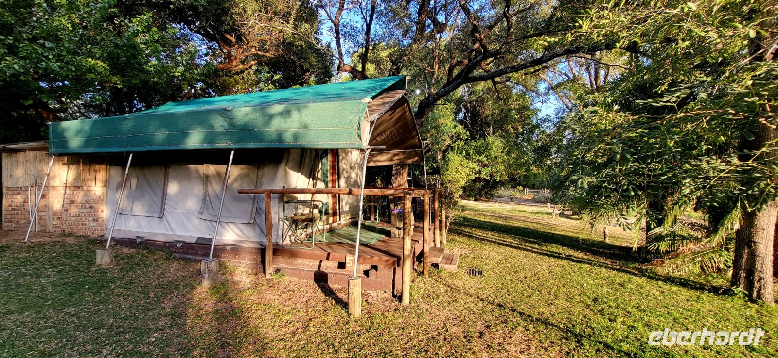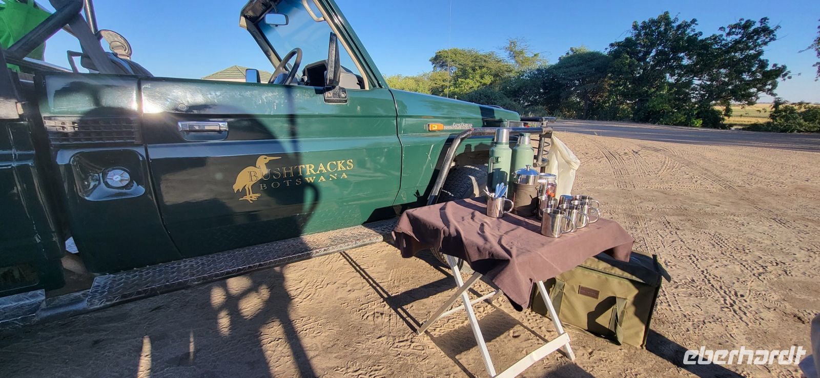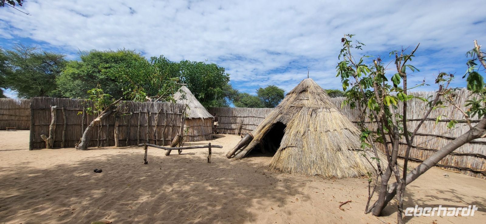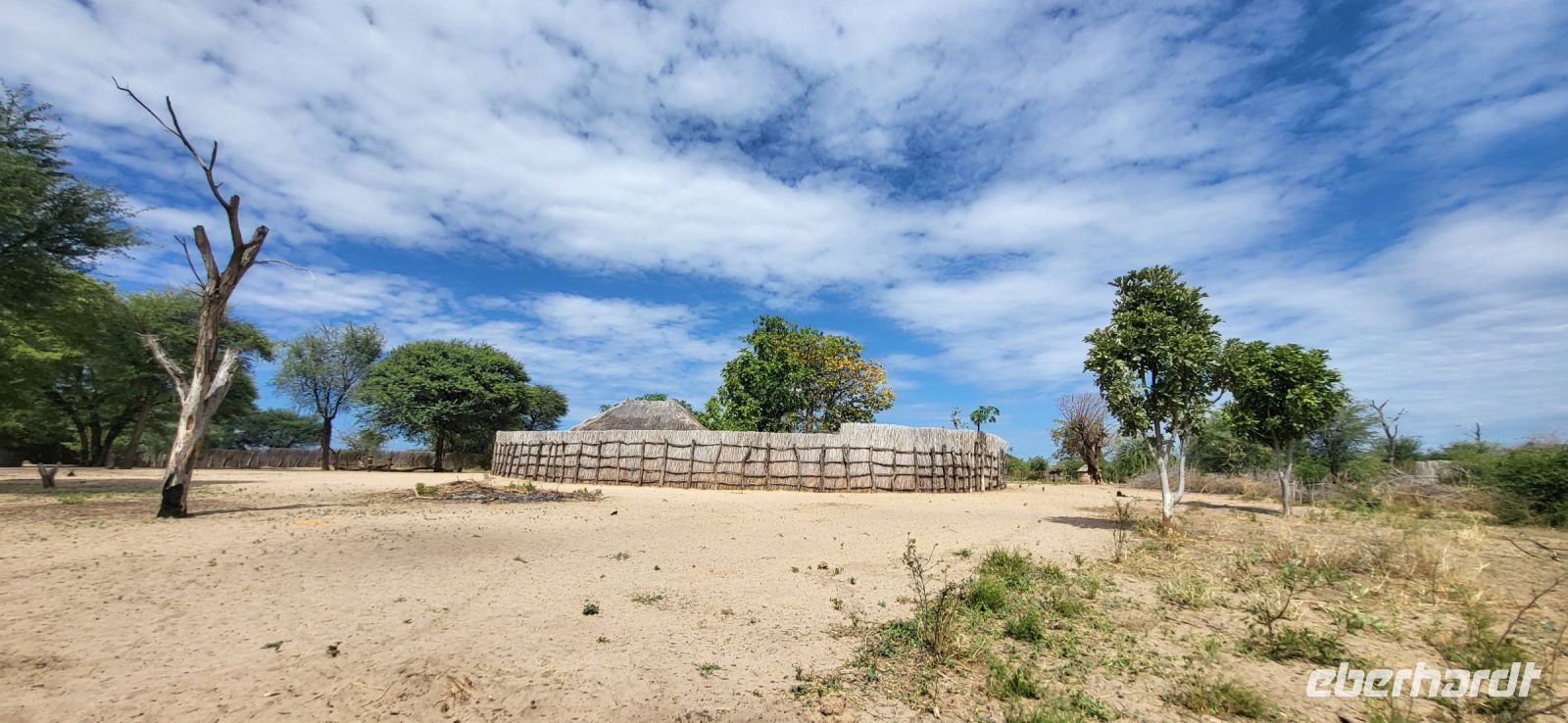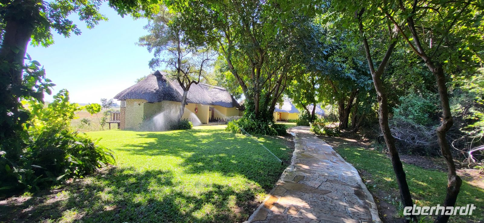 Nach einem sehr reichhaltigen Frühstück verlassen wir die Minenstadt Tsumeb, die noch verschlafen vor uns liegt. Schöne Gebäude und Kirchen aus vergangener, deutscher Zeit halten für uns schöne Eindrücke bereit. Tsumeb wird uns als eine sehr gemütliche und schöne Stadt in Erinnerung bleiben. Weiter geht die Reise, wir haben heute eine lange Strecke vor uns. 530 Km gilt es zu bewältigen, über Grootfontein (Große Quelle) geht es nach Rundu und von dort aus nach Divundu, wo in der Nähe gut versteckt unsere nächste, herrliche Unterkunft liegen wird. Hier im Norden Namibias wird es nun für uns so richtig afrikanisch. Wir sehen viele Grundstücke, wo die Menschen noch in Rundhütten leben, sich das Leben auf der Straße abspielt, das Vieh in Eigenregie unseren Weg kreuzt. Als Überraschung für unsere Gäste gibt es heute ein von Eberhardt TRAVEL organisiertes Mittagspicknick. Hierzu nutzen wir den Mururani Campingplatz, wo wir einen sehr idyllischen Ort vorfinden, bei dem wir ein schönes Picknick und dazu kühle Getränke und ein leckeres Bier anbieten können. So genießen wir die Köstlichkeiten in netter Runde und die Auszeit unserer heutigen Fahrstrecke. Bei den lokalen Holzschnitzern erfolgt ein Zwischenstopp und so manch kleines Hippo oder Elefant wechselt heute den Besitzer. Am späten Nachmittag erreichen wir die am Okavango sehr idyllisch gelegene Ndhovu Safari Lodge und werden vom aus Deutschland ausgewanderten Ralf herzlich in unserer Landessprache willkommen geheißen! Dieser weist uns in die Besonderheiten der Anlage und unserer Luxuszelte ein und wir freuen uns bereits auf unser heutiges, afrikanisches Abendessen. Dieses genießen wir im Restaurant direkt am Okavango Fluss, untermalt vom Rufen so manches Flusspferdes.