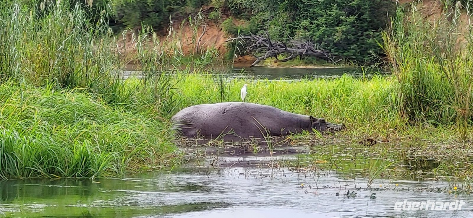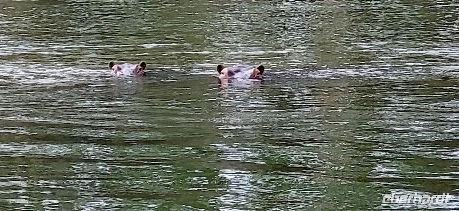 Heute Abend gibt es zum letzten Essen in gemeinsamer Runde schöne Klavierklänge und anschließend beeindrucken uns drei riesige Hippos, die vor unseren Unterkünften auf der Wiese scheinbar friedlich grasen.