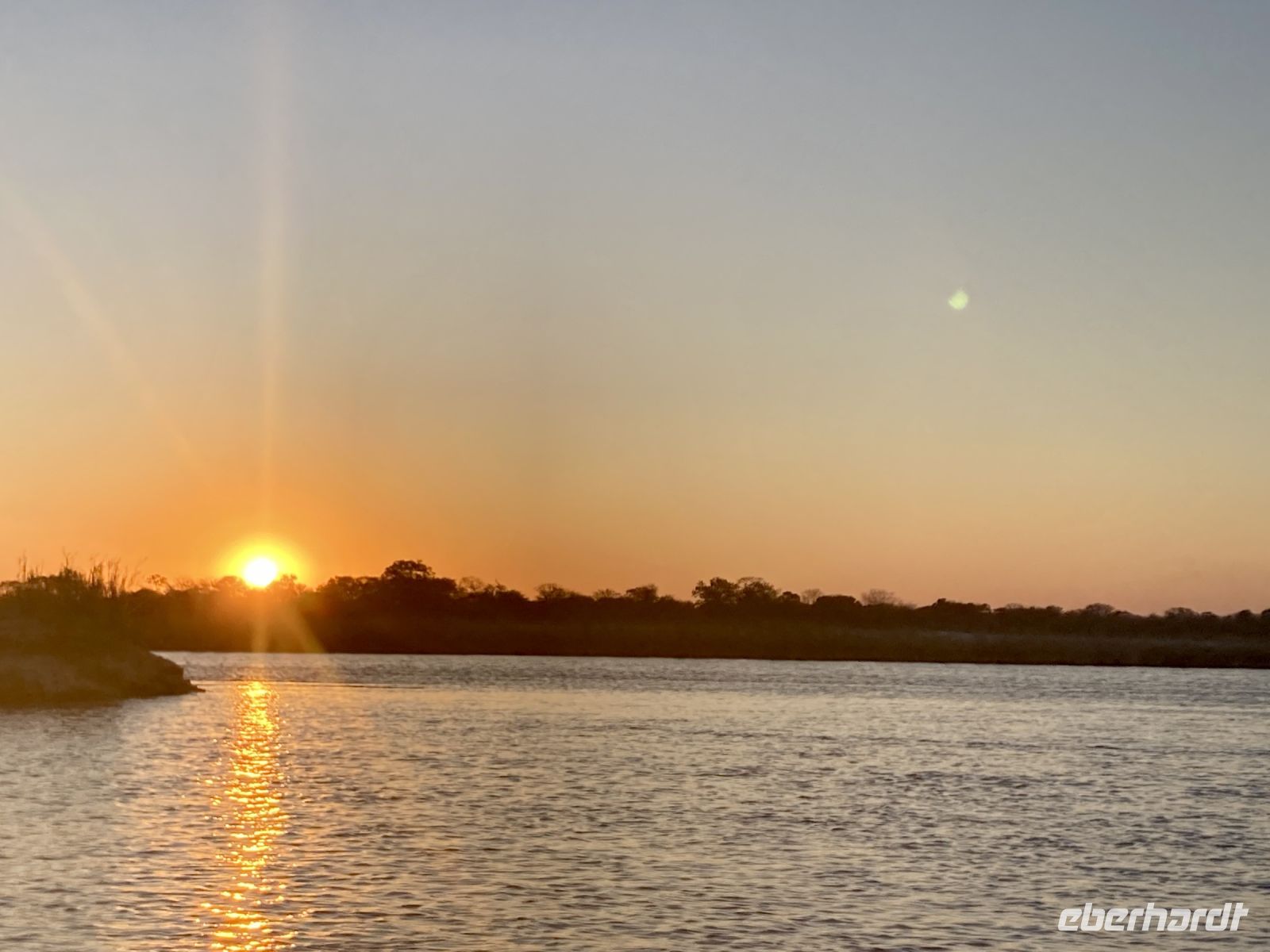 Während der Bootsfahrt beobachteten wir Stelzenläufer, Flusspferde, Schwalben, Pferdeantilopen, Büffel, Wasserböcke, Warzenschweine sowie Störche und Graureiher. Auch Krokodile konnten wir entdecken. Zudem genossen wir einen atemberaubenden Sonnenuntergang.