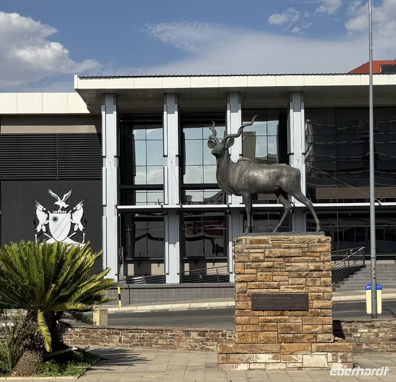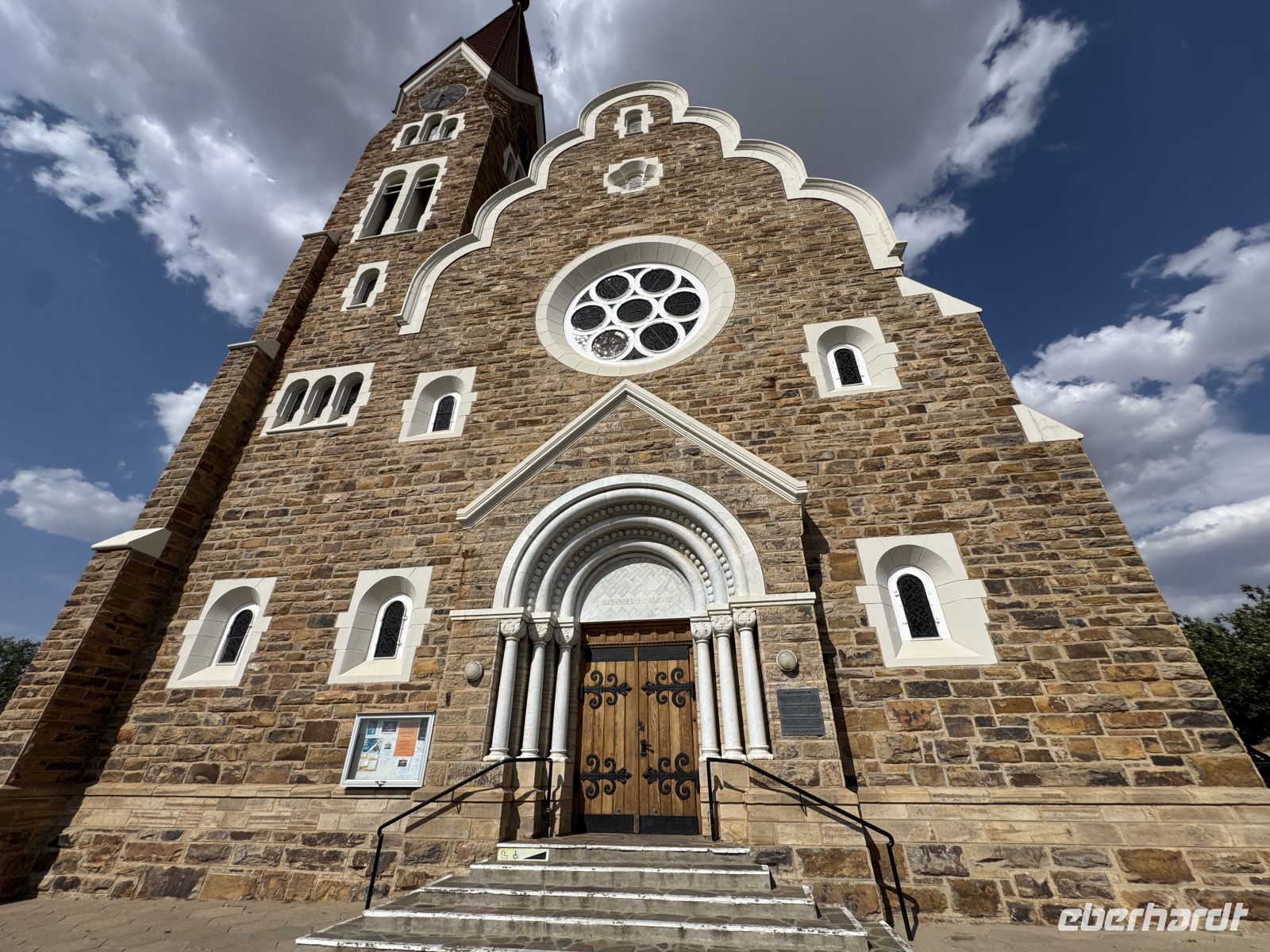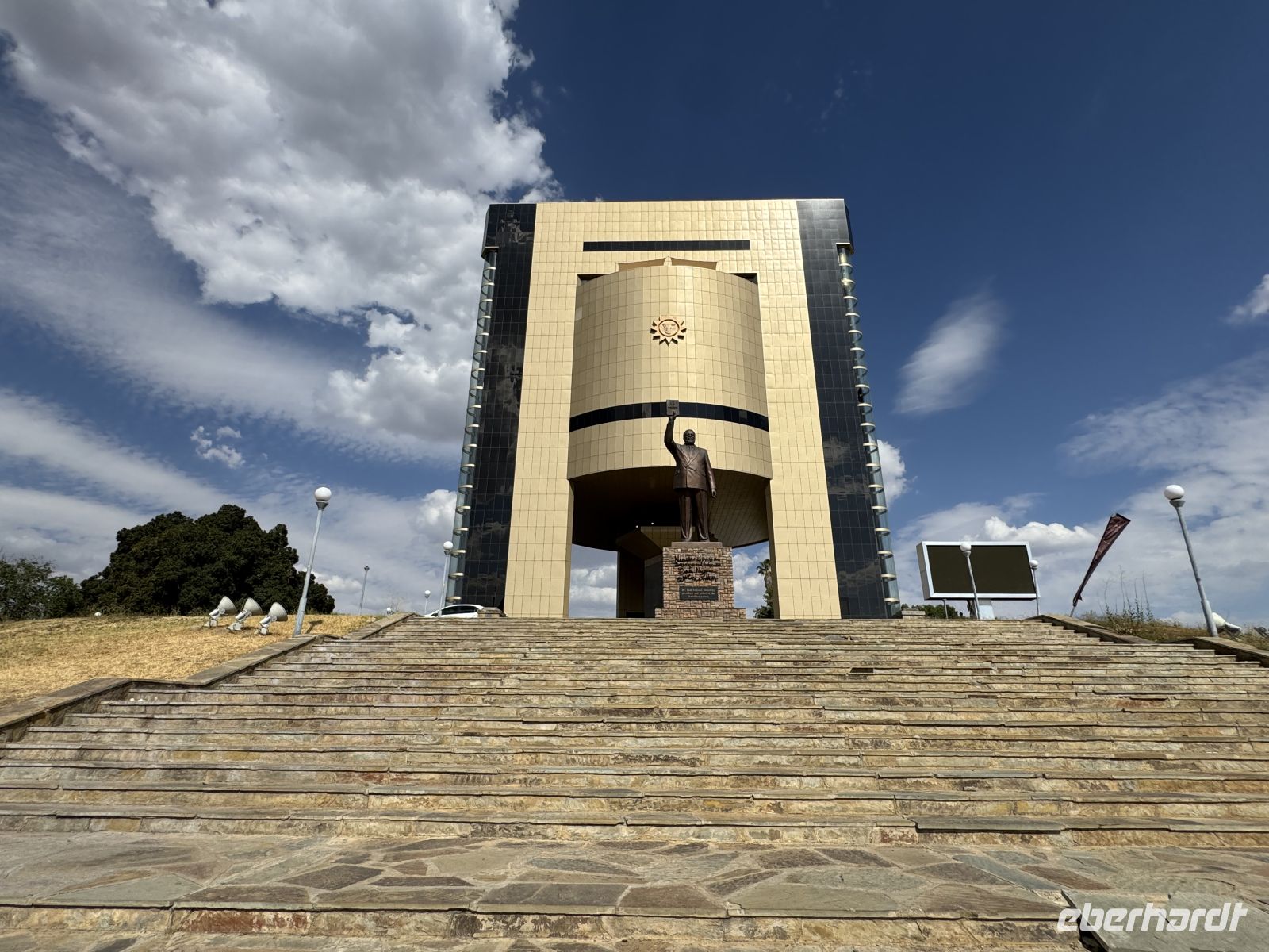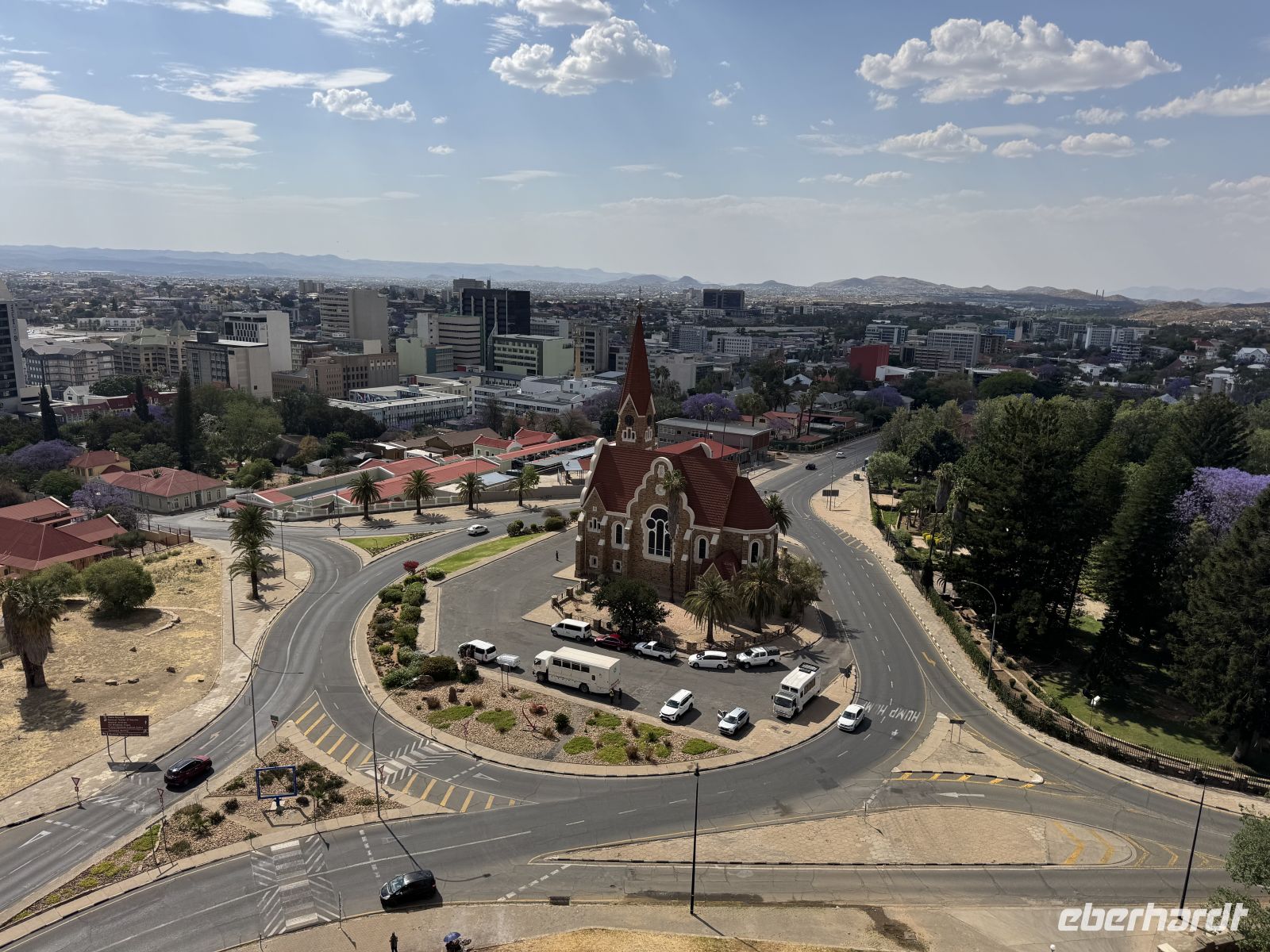 Wir sind angekommen, aber noch nicht in unserem sehr schönen Avani Hotel, wunderbar mitten im Zentrum der Stadt gelegen, sondern zuerst an der Christuskirche und dem gegenüberliegenden Freiheitsdenkmal mit der Statue von Sam Nujoma, dem berühmtesten Freiheitskämpfer Namibias.