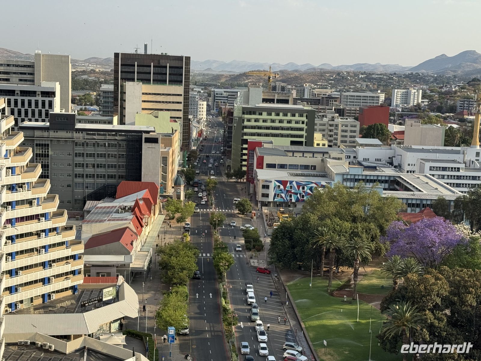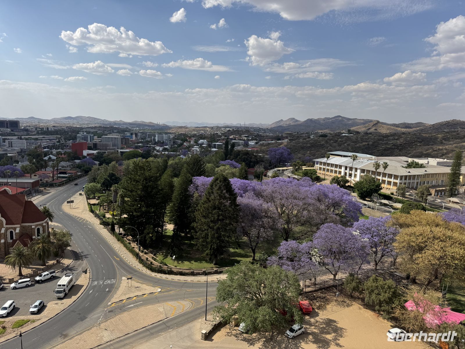 Nach einer Nacht, die am Ende dann gar nicht so lang war, sagen wir erstmal Goeiemöre, (guten Morgen) Johannesburg, bevor uns unser Anschlussflug nach Windhoek, unserem eigentlichen Reiseziel bringt. Ein wunderbarer Flug, ganze 2 Stunden, die erst beim Landeanflug etwas wacklig wurden. Beim Ausstieg wissen wir auch warum, ein kräftiger warmer Wind bläst uns zur Begrüßung ins Gesicht.