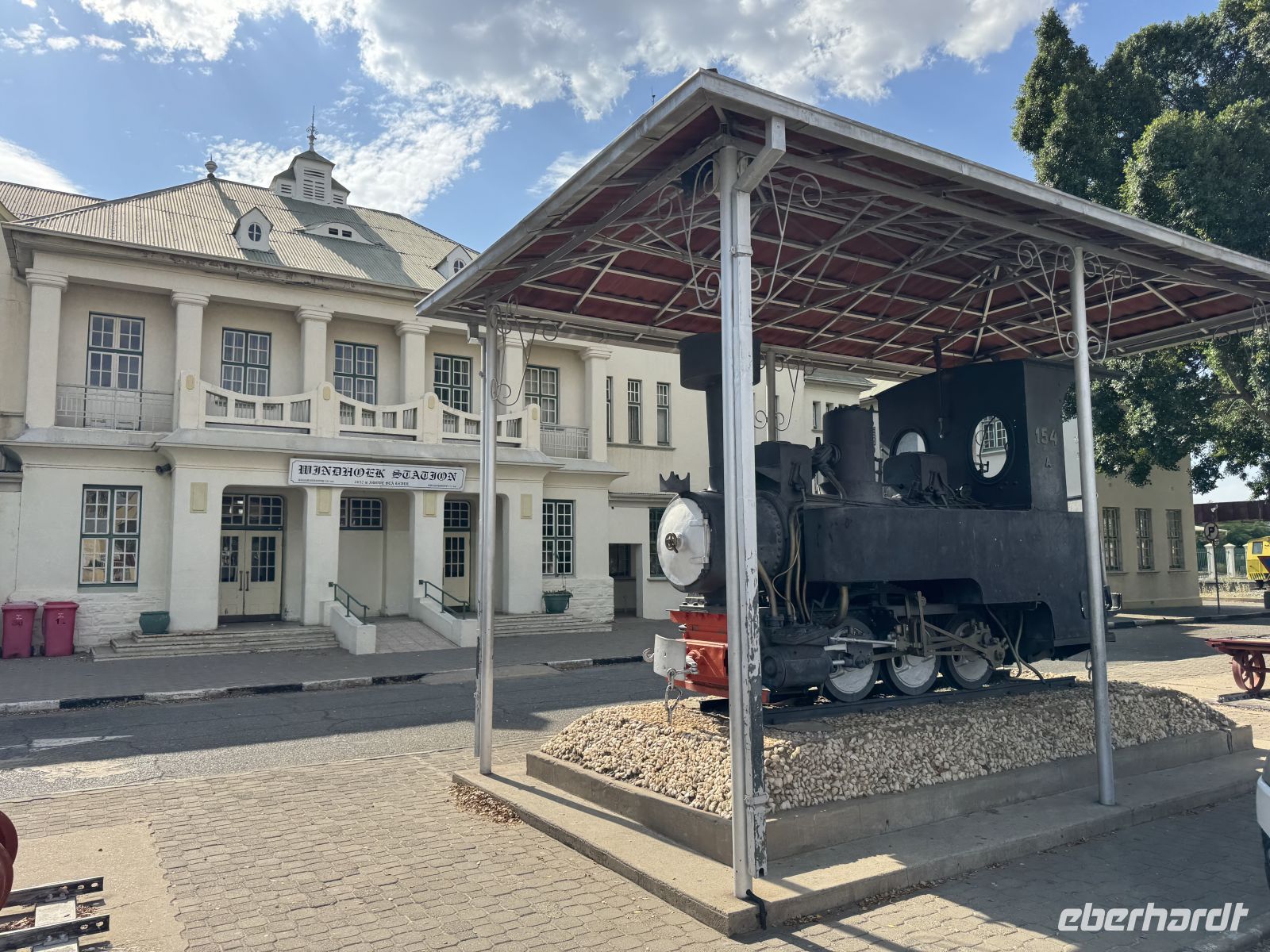 Eine Station haben wir noch. Der Bahnhof von Windhoek wartet. Eine herrliches im Wilhelminischen Stil gehaltenes Gebäude. Leider auch verschlossen, aber durch die großen Flügeltüren eröffnet sich uns ein Blick auch ins Innere.