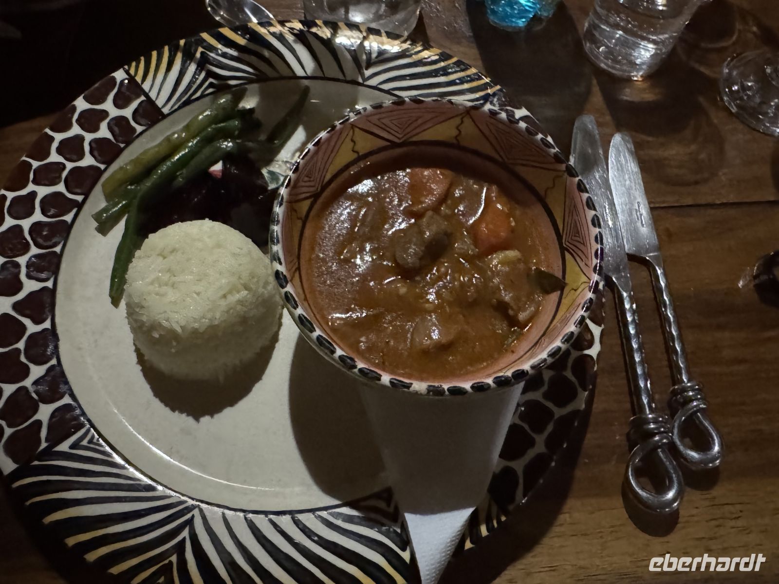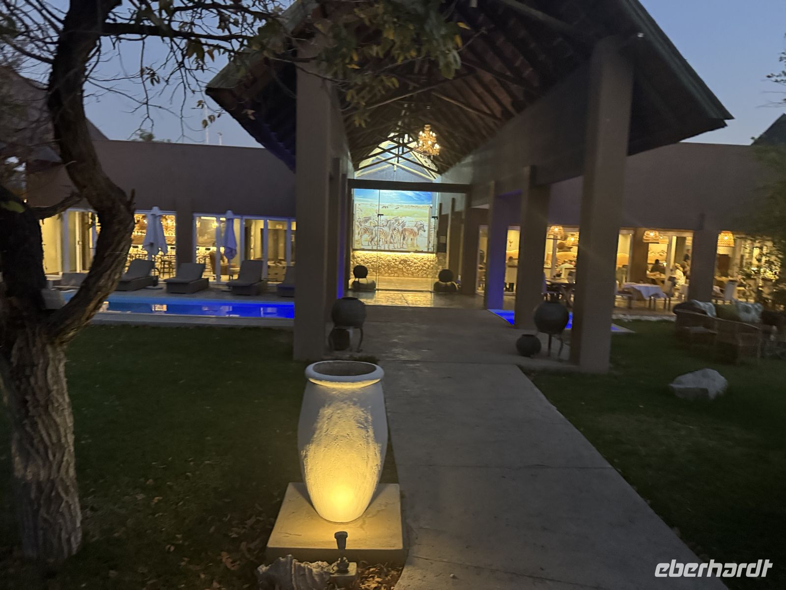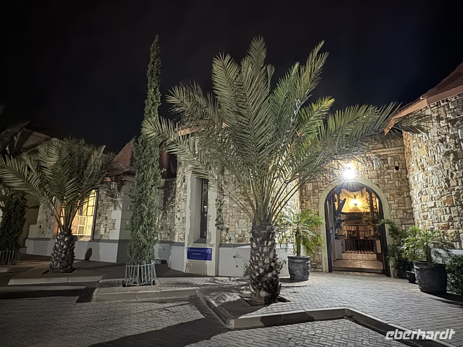 Das Essen a‘ la Carte ist ausgezeichnet und so reden wir über dies und das und freuen uns schon auf morgen. Dann geht’s für uns schon Richtung Norden. Der Etosha Nationalpark wartet auf uns!