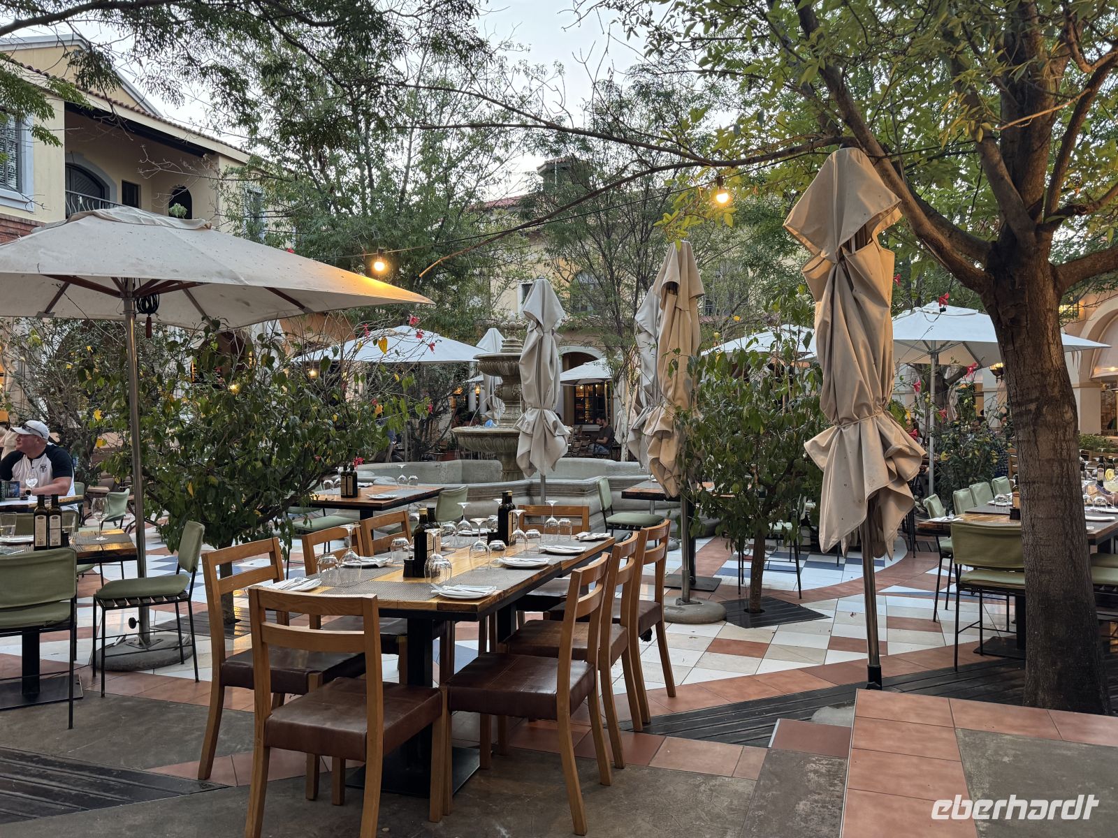 Jetzt geht’s aber in unser Hotel, die Begrüßung ist super, der Service auch. Schnell sind wir alle in unseren Zimmern, wollen wir doch schon bald wieder los, zu unserem ersten gemeinsamen Abendessen in Leo’s Garden Restaurant. Im wunderschöner Innenhof mit Springbrunnen und anmutender Architektur, erwartet uns eine herrlich gedeckte Tafel.