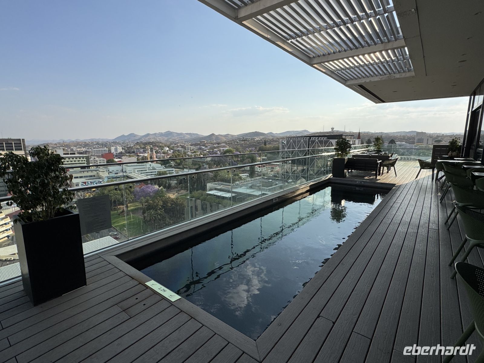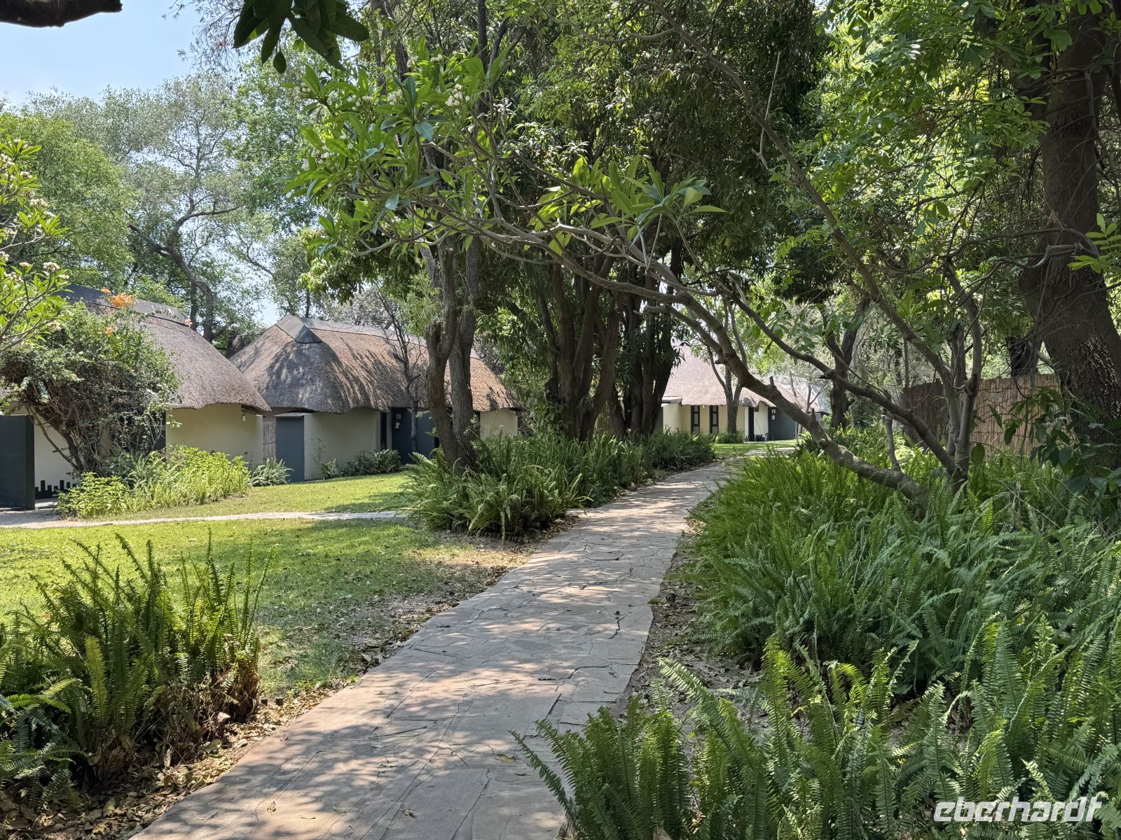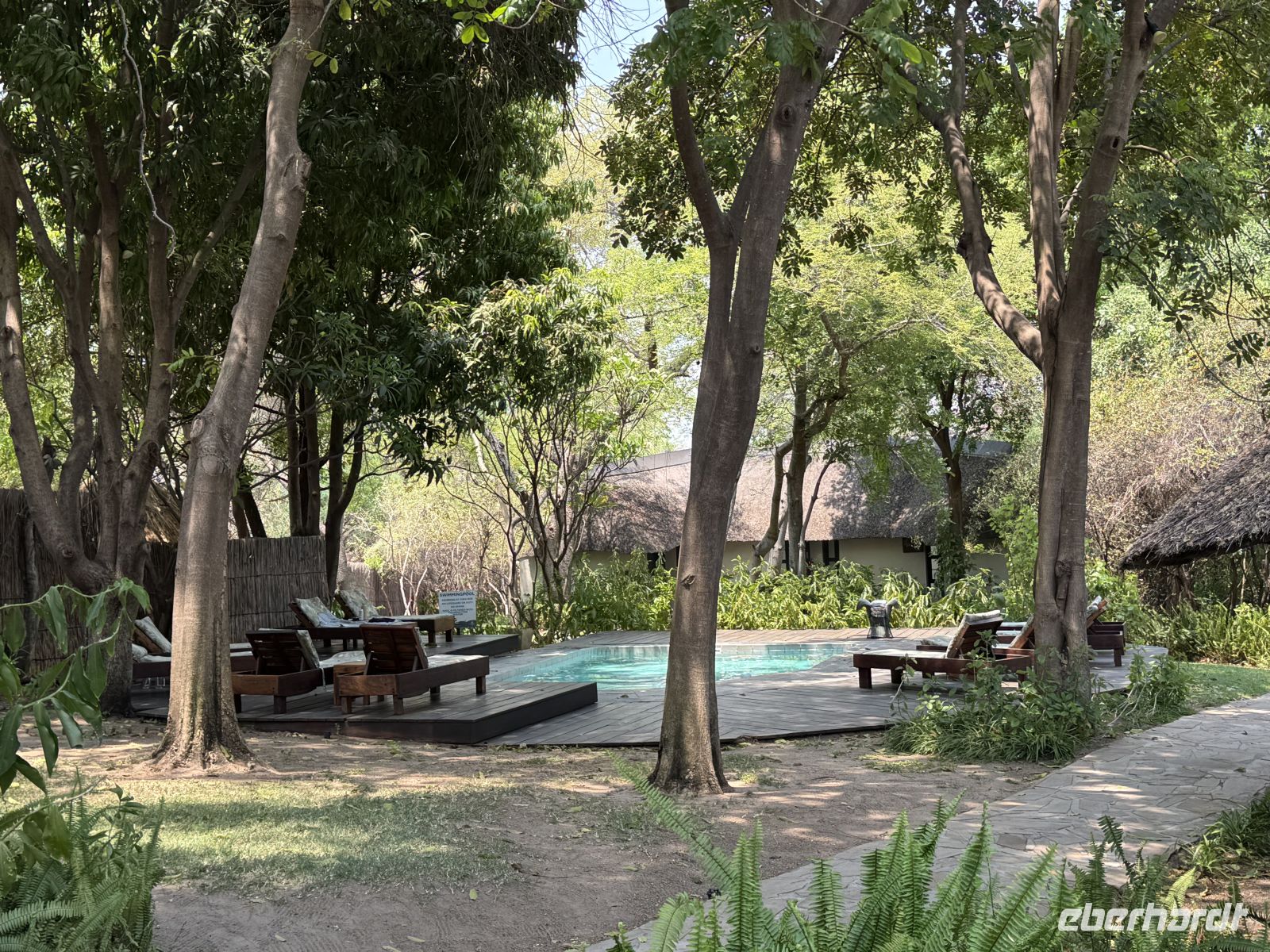 Ein Stündchen haben wir Zeit, bevor wir zu unserer ersten Pirschfahrt in unserem Gefährt aufbrechen. Die einen erkunden die traumhaft angelegt Anlage, die anderen nutzen schonmal die tollen Pools.