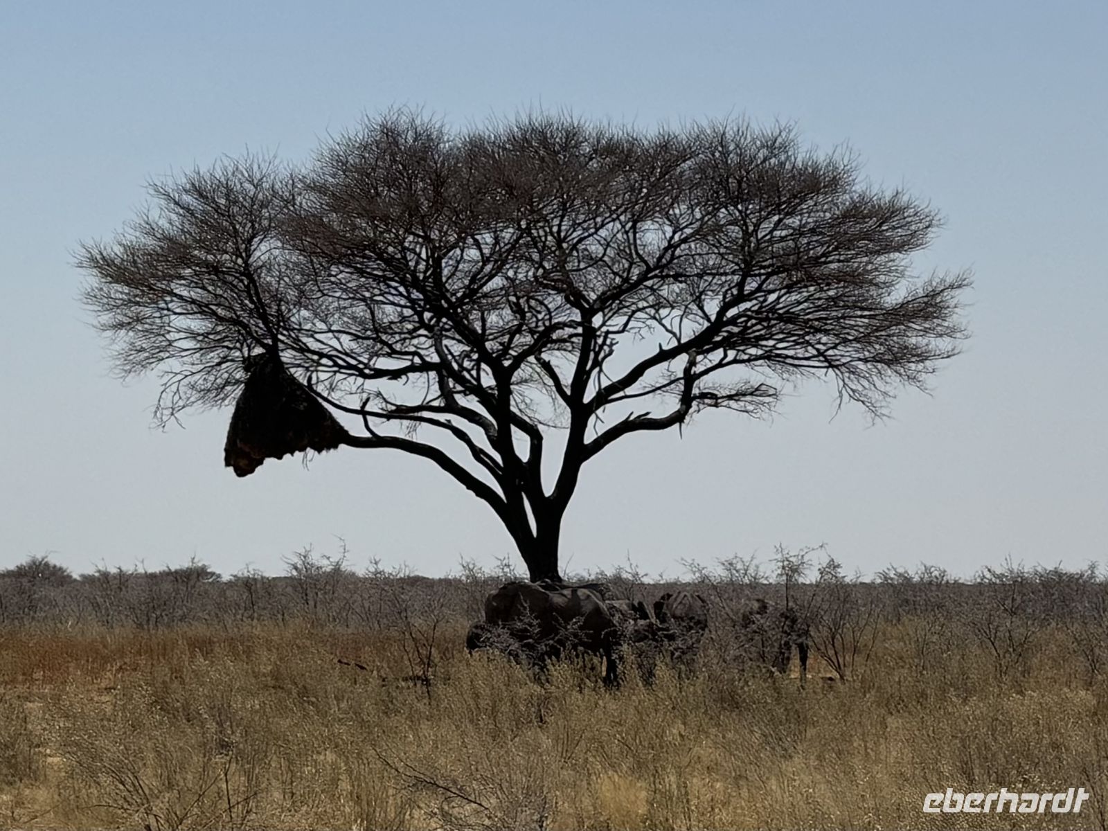 Wir sind auf dem Weg zum Okaukuejo Camp. Bekannt vorallem für sein nachts beleuchtetes Wasserloch, wo man sehr gut Nashörner, Elefanten oder auch Löwen und Leoparden beobachten kann.