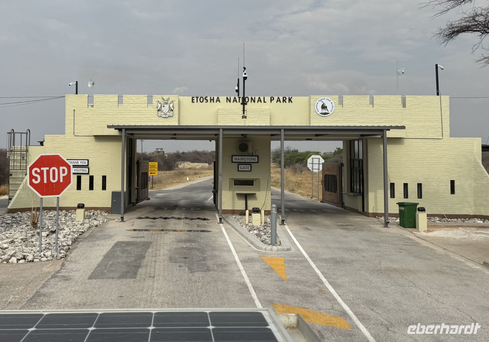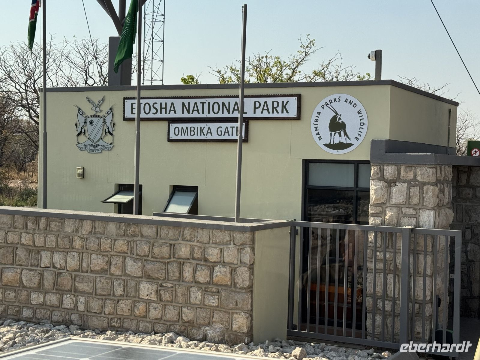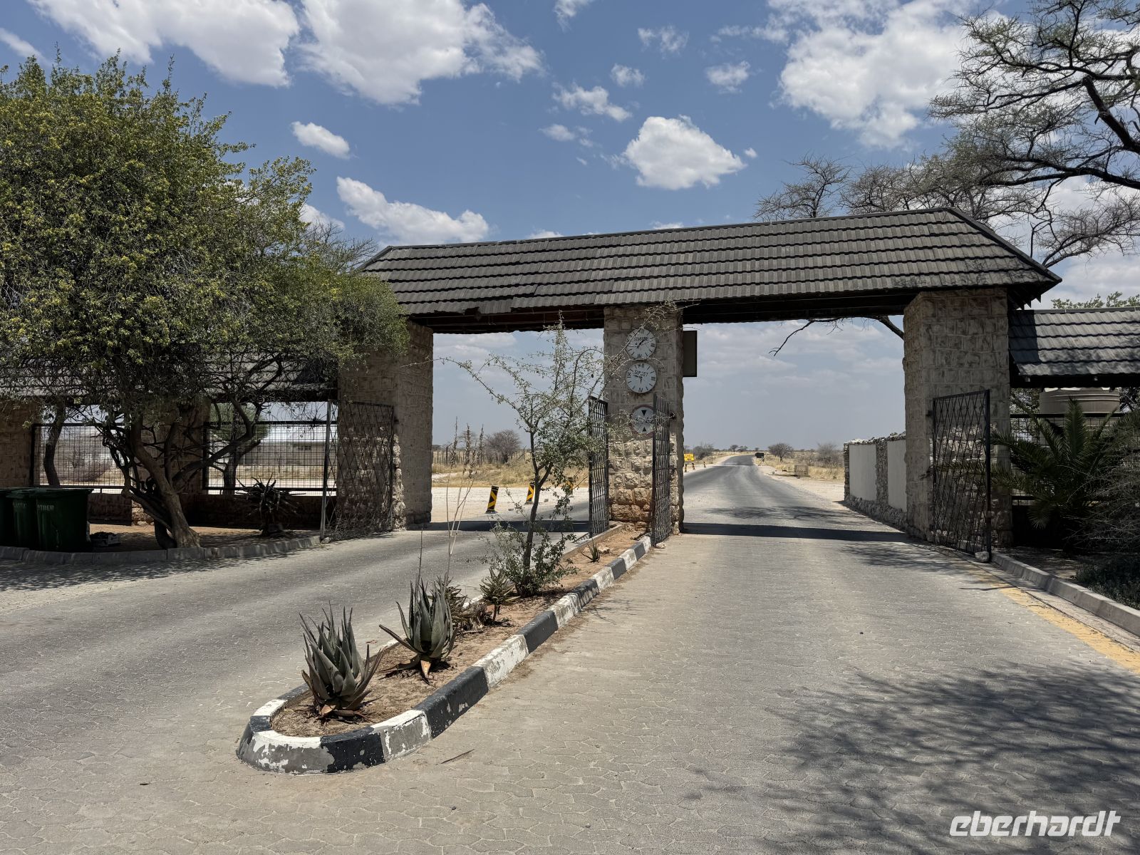 Aber nun ist es soweit, die allererste Pirschfahrt wartet auf uns. Nur 20 Minuten dauert die Fahrt bis zum Ombika Gate, unserem Eingang in den Etosha Nationalpark.