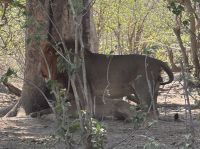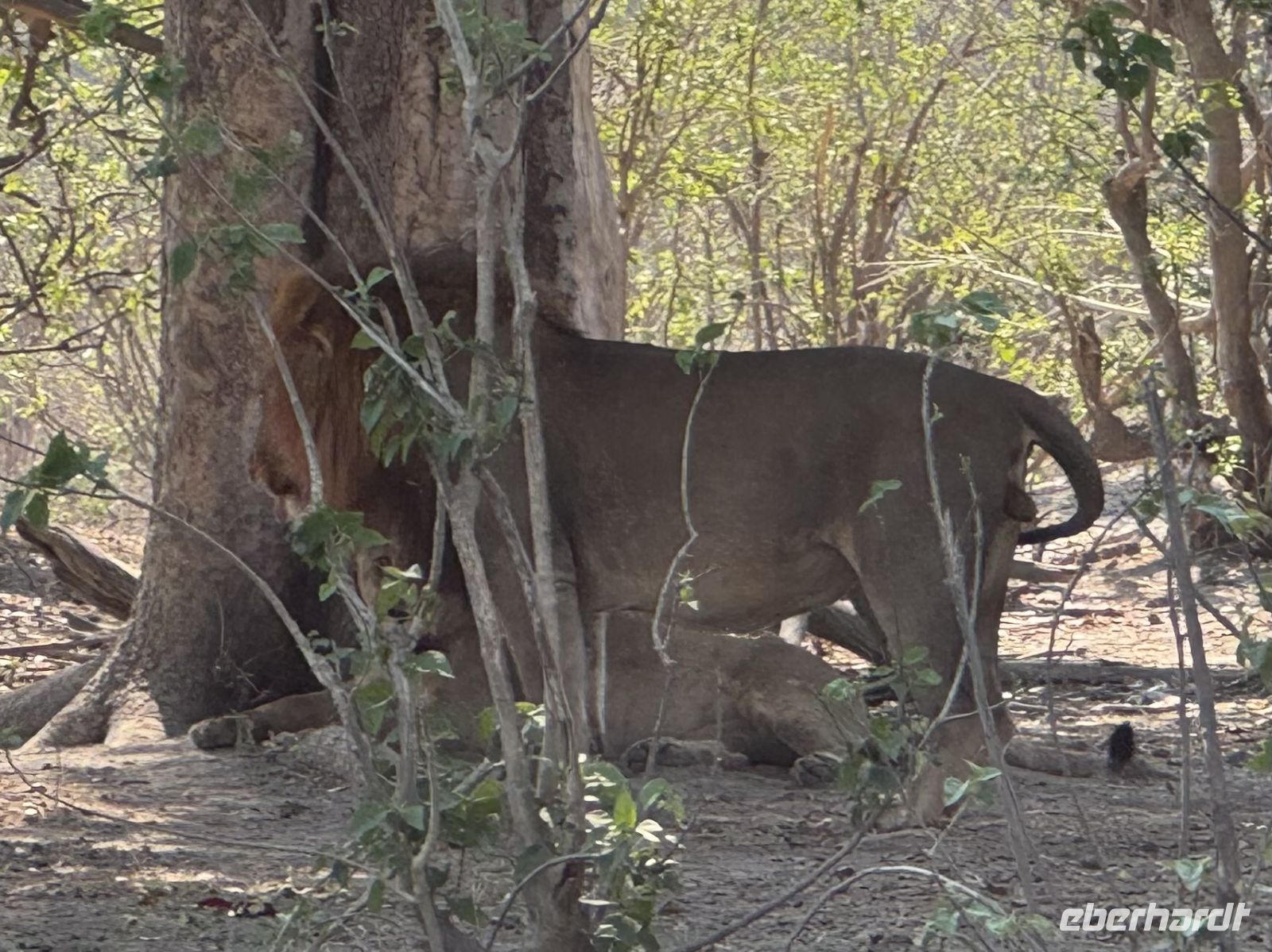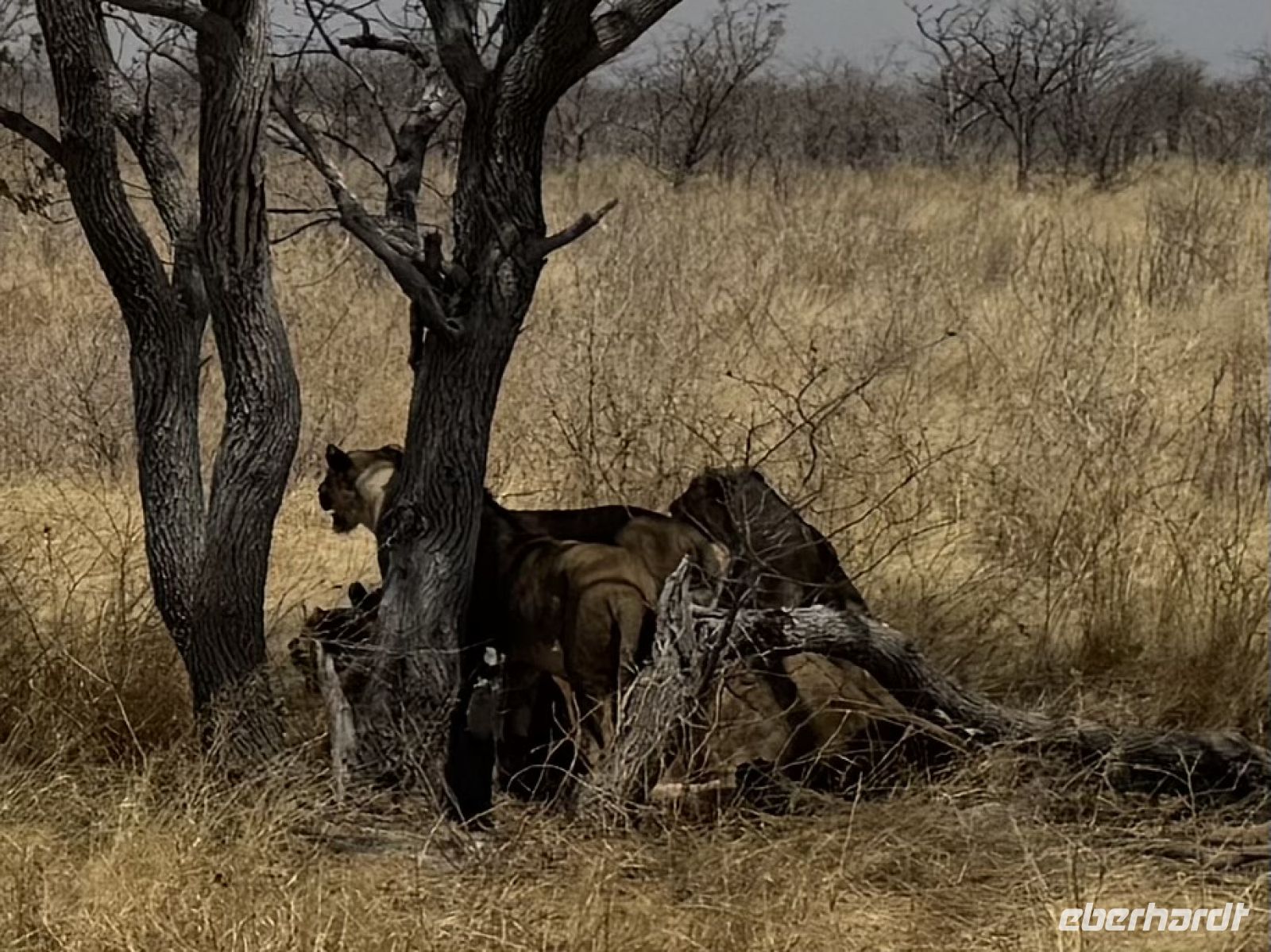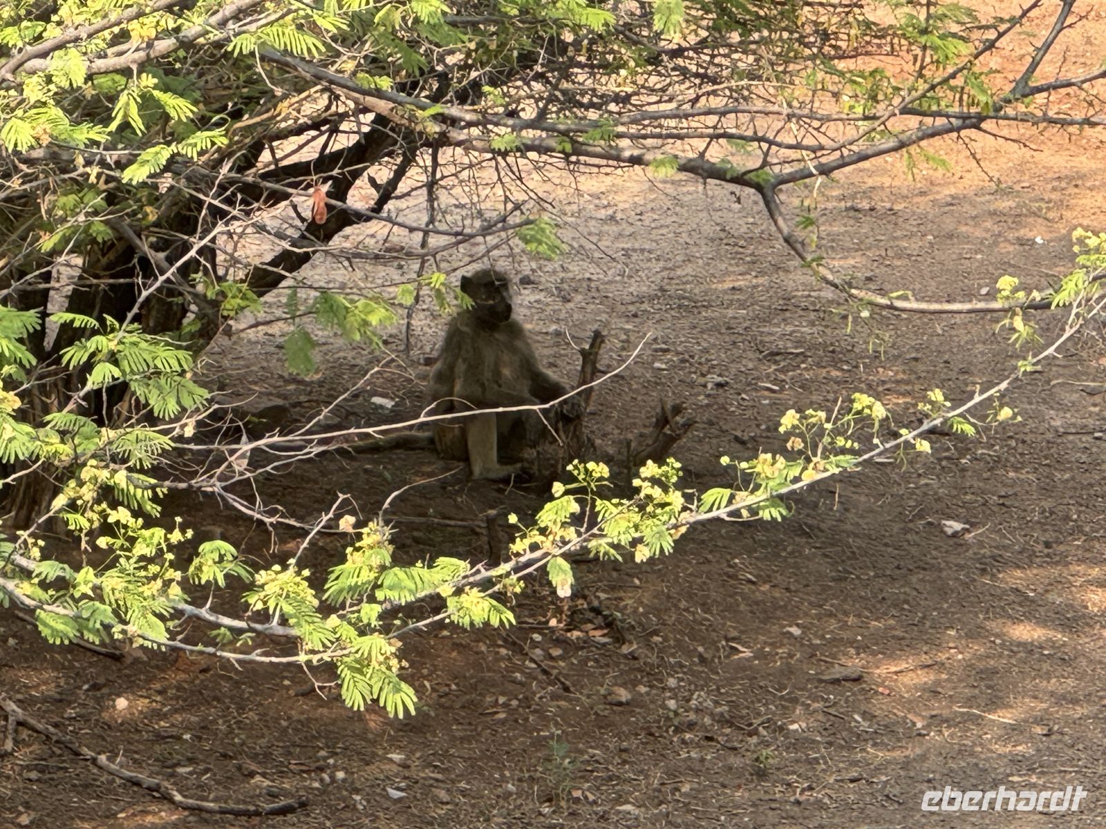 Wir nehmen denselben Eingang zum Nationalpark wie gestern, das Ombika Gate. Allerdings fahren wir in eine andere Richtung. Gestern haben wir erfahren, das ca. 20 Km westlich von uns Löwen gesichtet wurden.
