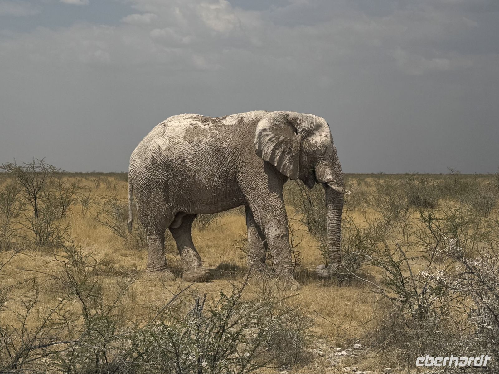 Hier gibt es wieder ein paar Elefanten die sich ausgiebig mit Wasser und Schlamm bespritzen um sich gegen die Hitze und so einiges Ungetier zu schützen. Dazu grüßt uns ein Warzenschein und wieder einige Oryx Antilopen oder wie man in Afrikaans sagt: Gemsbok.