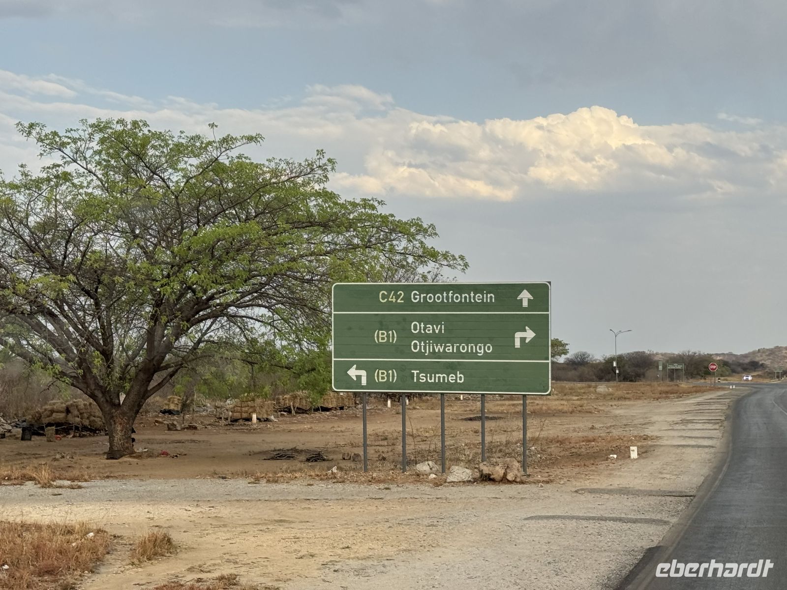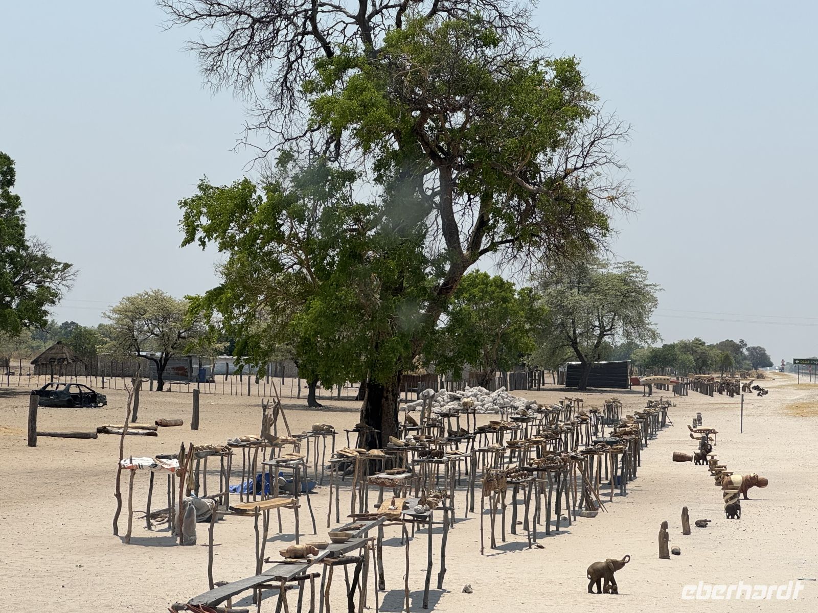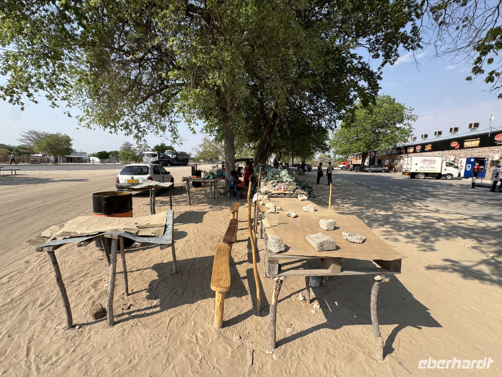 Ein traditioneller Holzmarkt direkt an der Straße hat uns in kürzester Zeit das Handeln gelernt. Stolz wurde die ersten Geschäfte getätigt. Die Verkäufer waren glücklich, wir auch, also ging es weiter Richtung Otjiwarongo. Nach einem kleinen Stopp dann aber durch bis Outjo.
