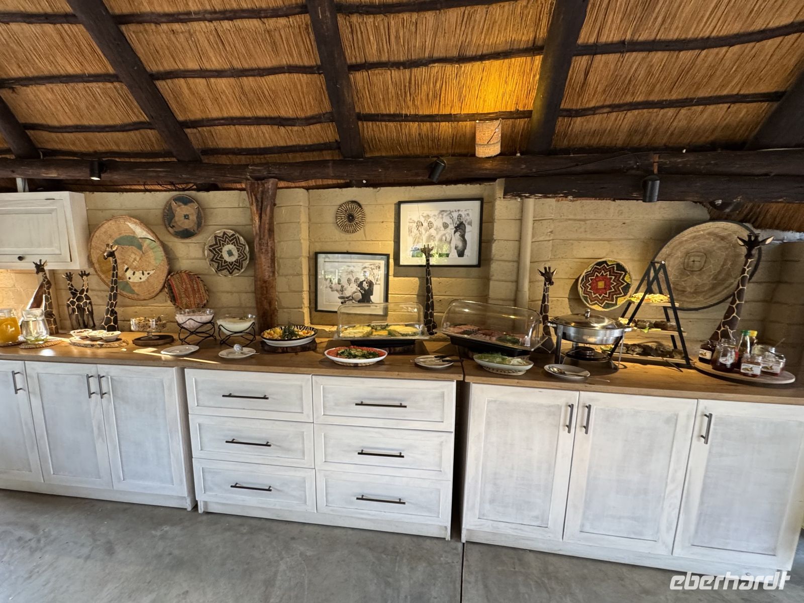 Zügig sind wir in der Lodge und das Abendessen wartet schon. Ein tolles Buffet, mit jeder Menge Wildfleisch, tollen Salaten und einer Dessert - Straße die keine Wünsche offen lässt.