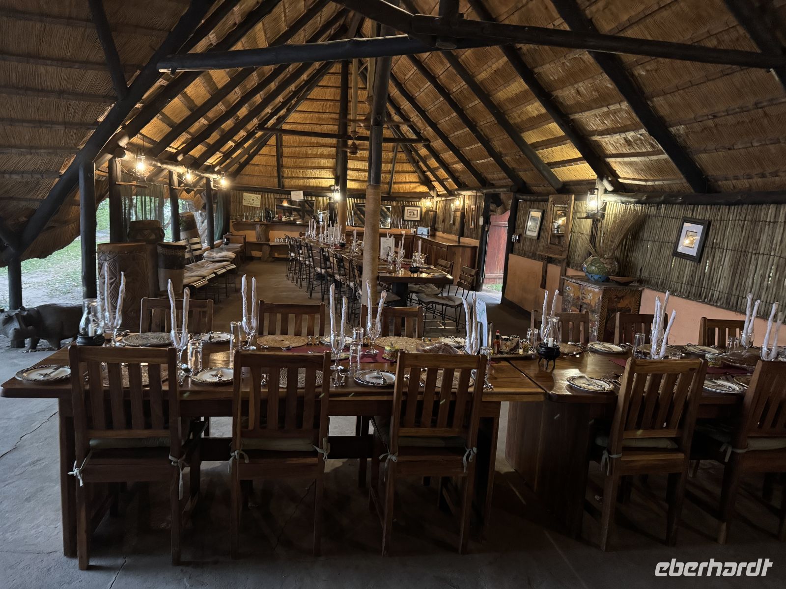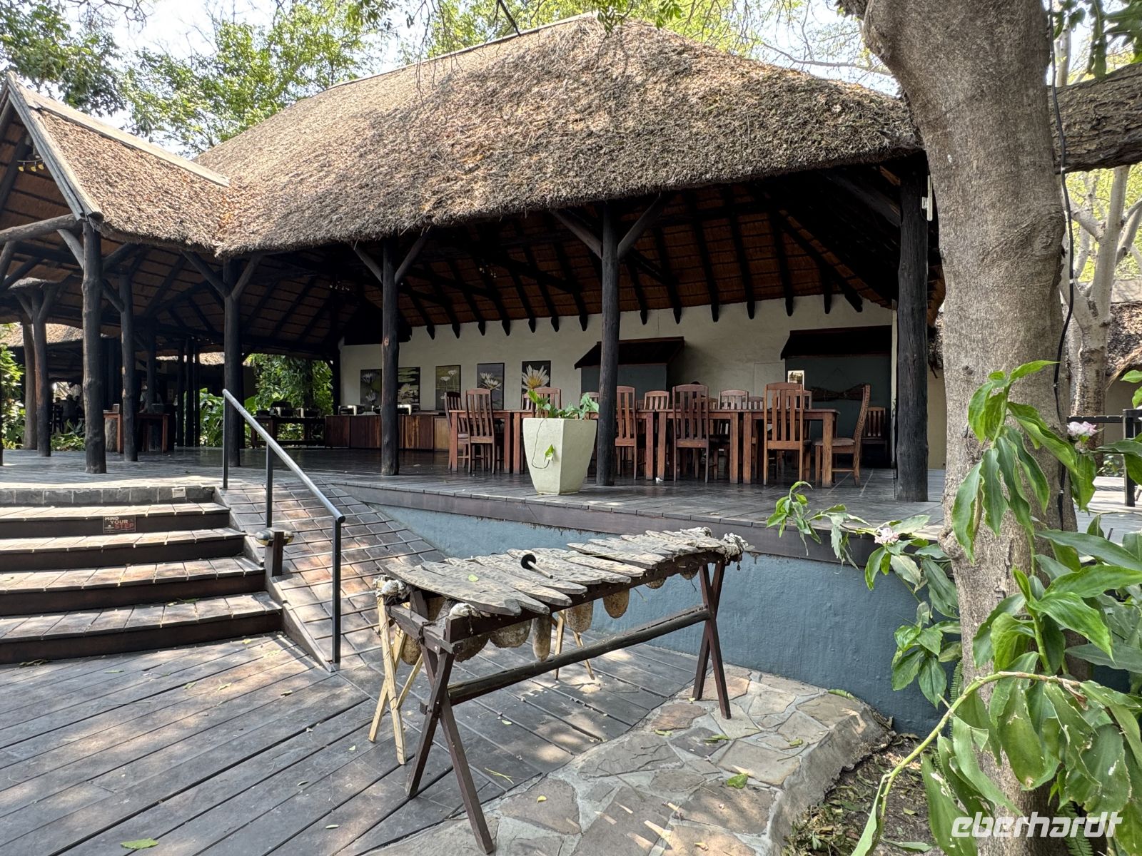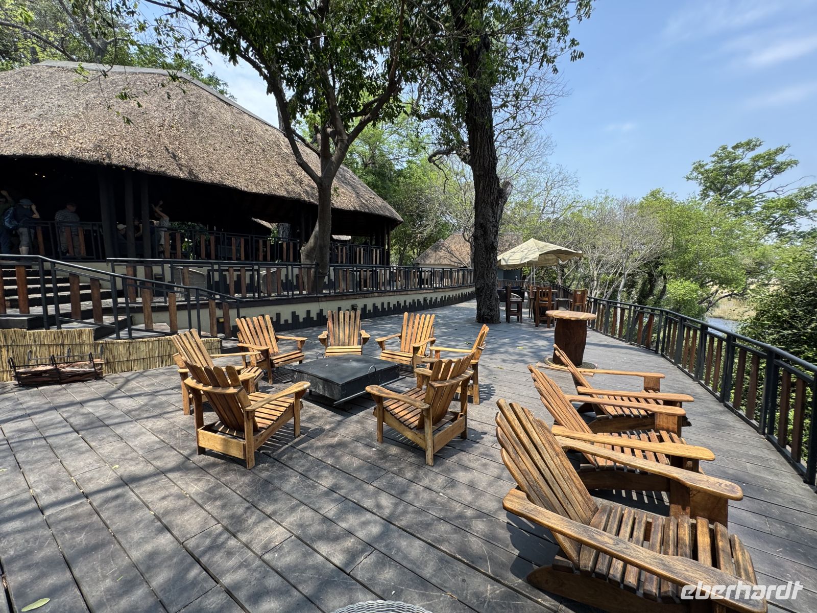 Wir tuckern zurück zu unserem Bootstreff und nach gefühlt 500 neuen Bildern gehen wir demütig und glücklich von Bord. Eine Dusche später treffen wir uns zum Abendessen, heute im Außenrestaurant der Chobe Bush Lodge.