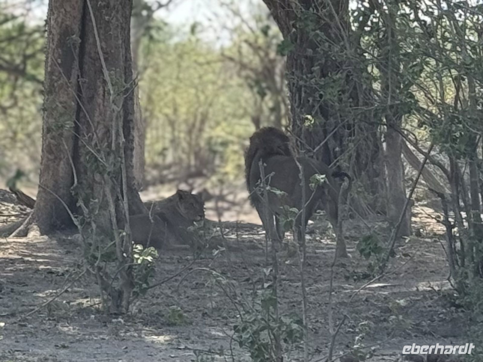 Wir halten alle Kameras drauf und sind ziemlich glücklich, dass wir so erfolgreich waren. Der Löwe hat genug vom Wasser und sucht dringend Schatten, wo er gemütlich den Rest des Tages verdösen kann. Sein Objekt der Begierde ist das ummauerte Wassertankgelände.