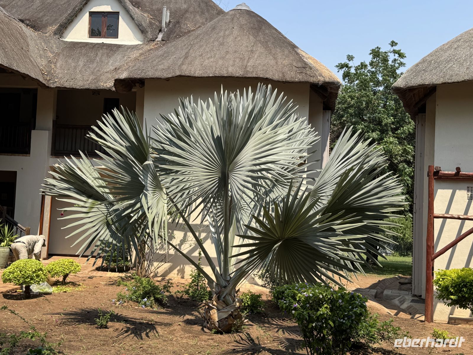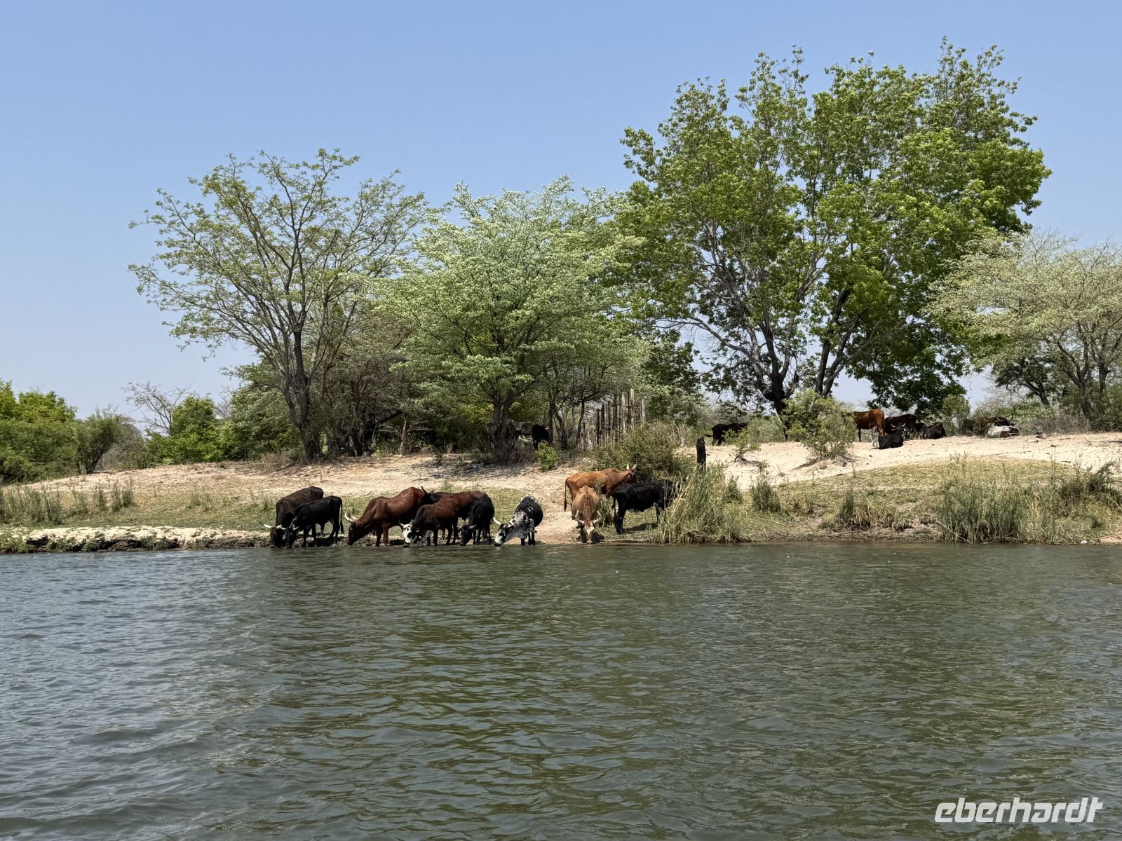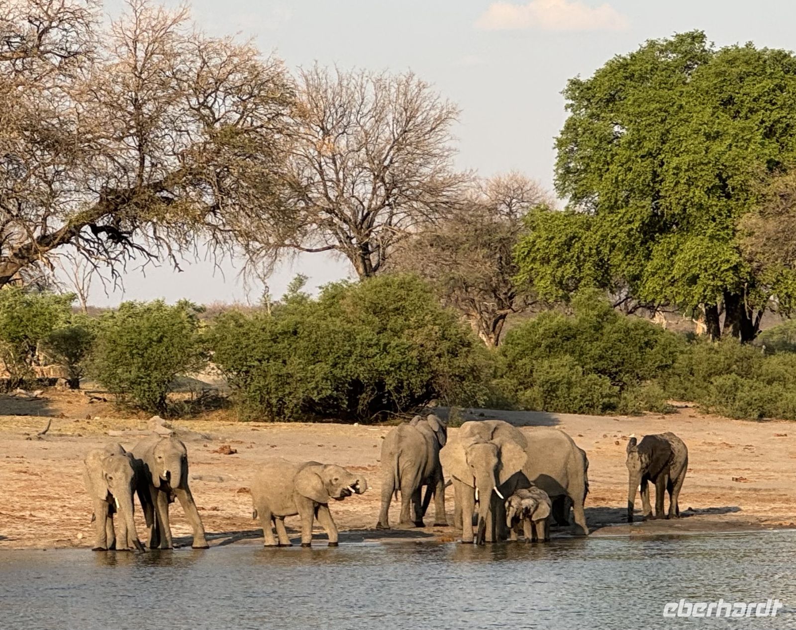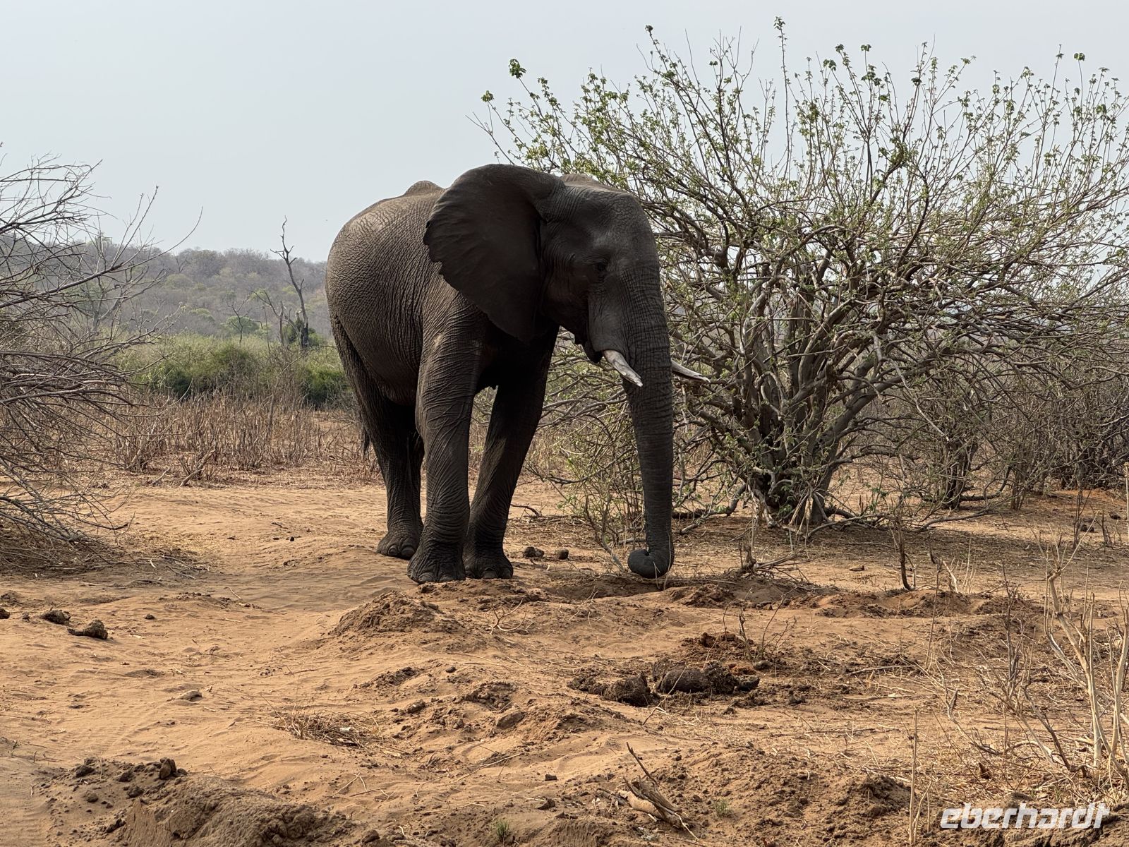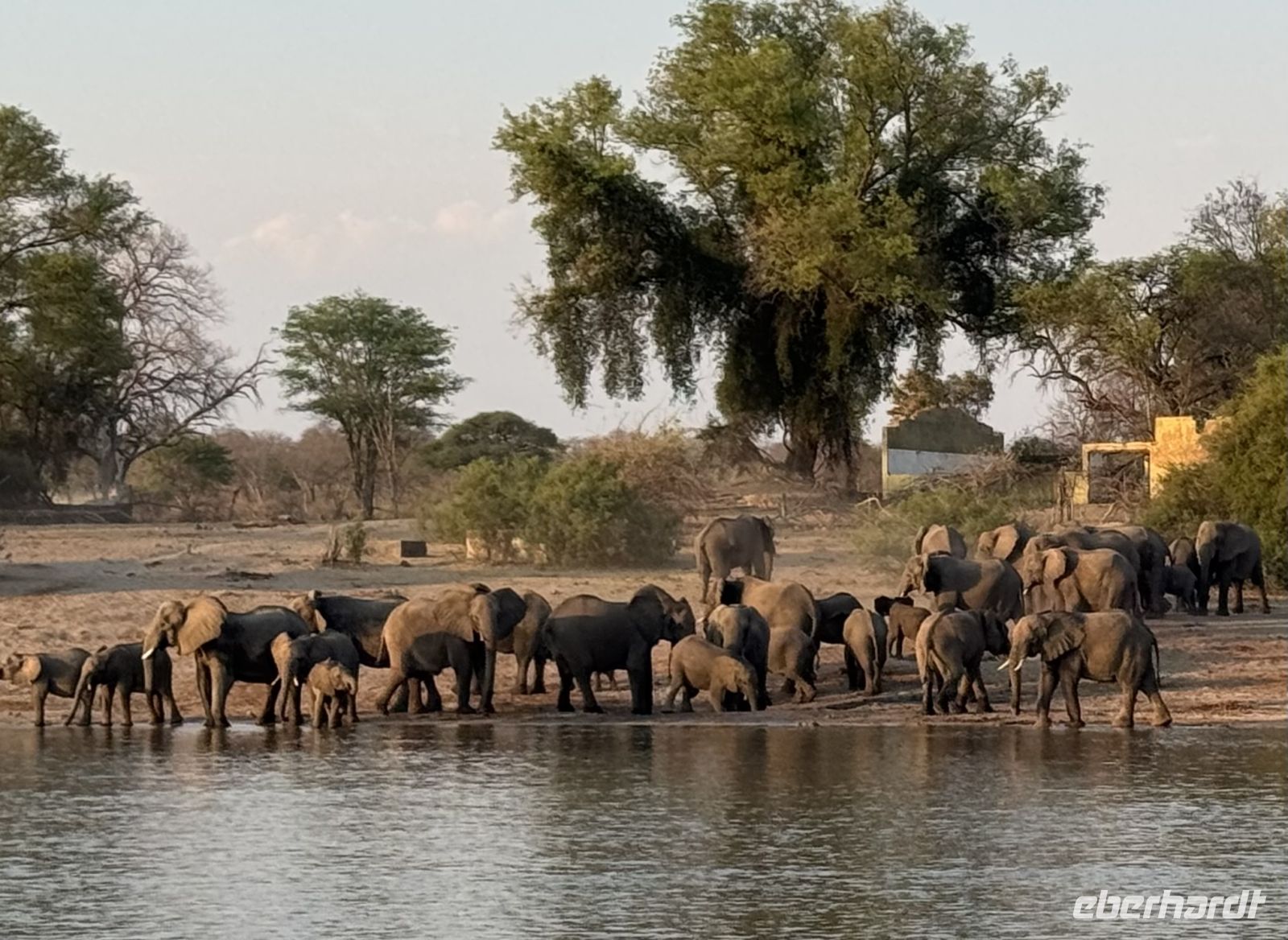 Nach zweieinhalb Stunden, nun wieder im simbabwischen Teil des Flusses, werden wir von der Mannschaft an Bord verabschiedet. Im Nu sind wir auf unserem kurzen Weg zur Lodge, aber Achtung, Elefantendung, nicht zu übersehen und auch nicht zu überriechen, lässt uns ahnen wer hier kurz vor uns spazieren ging.