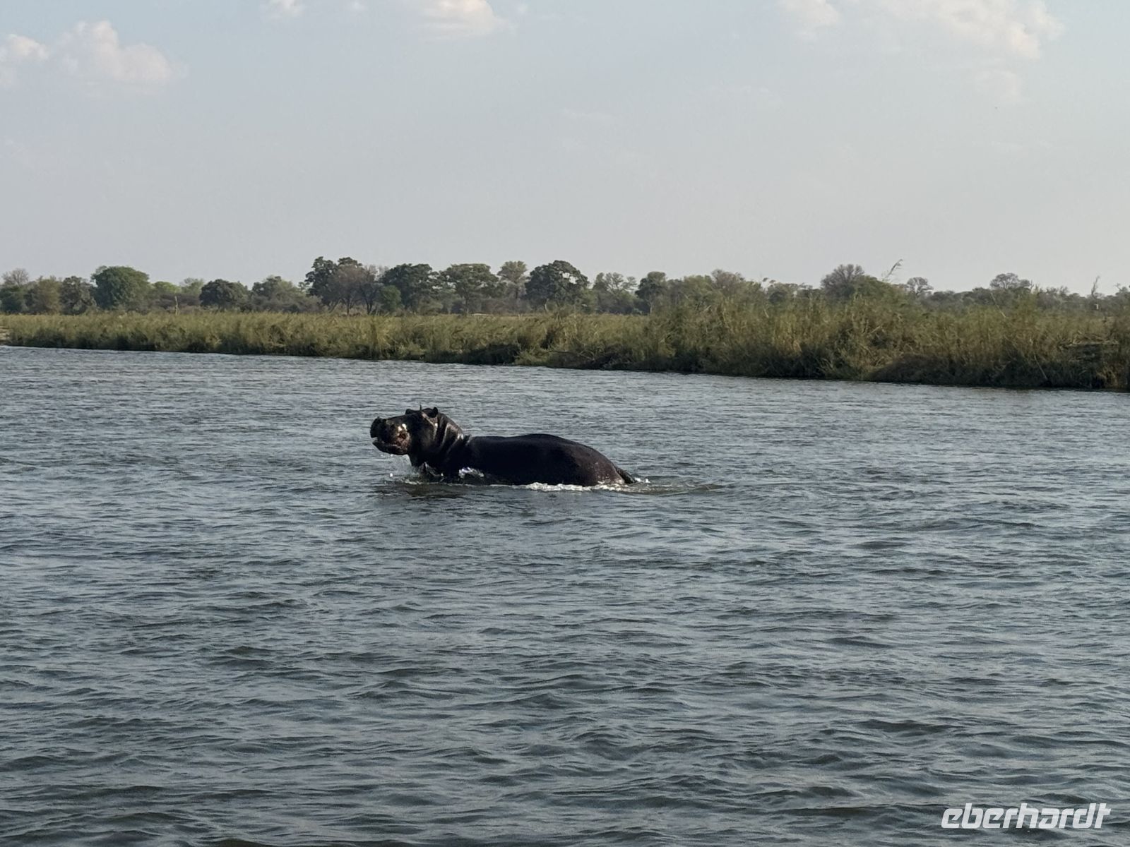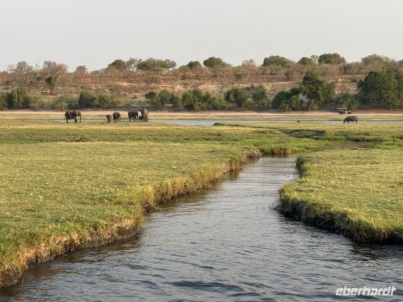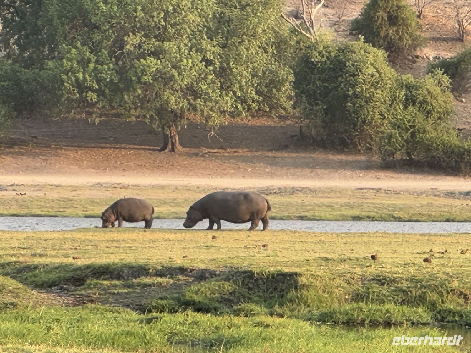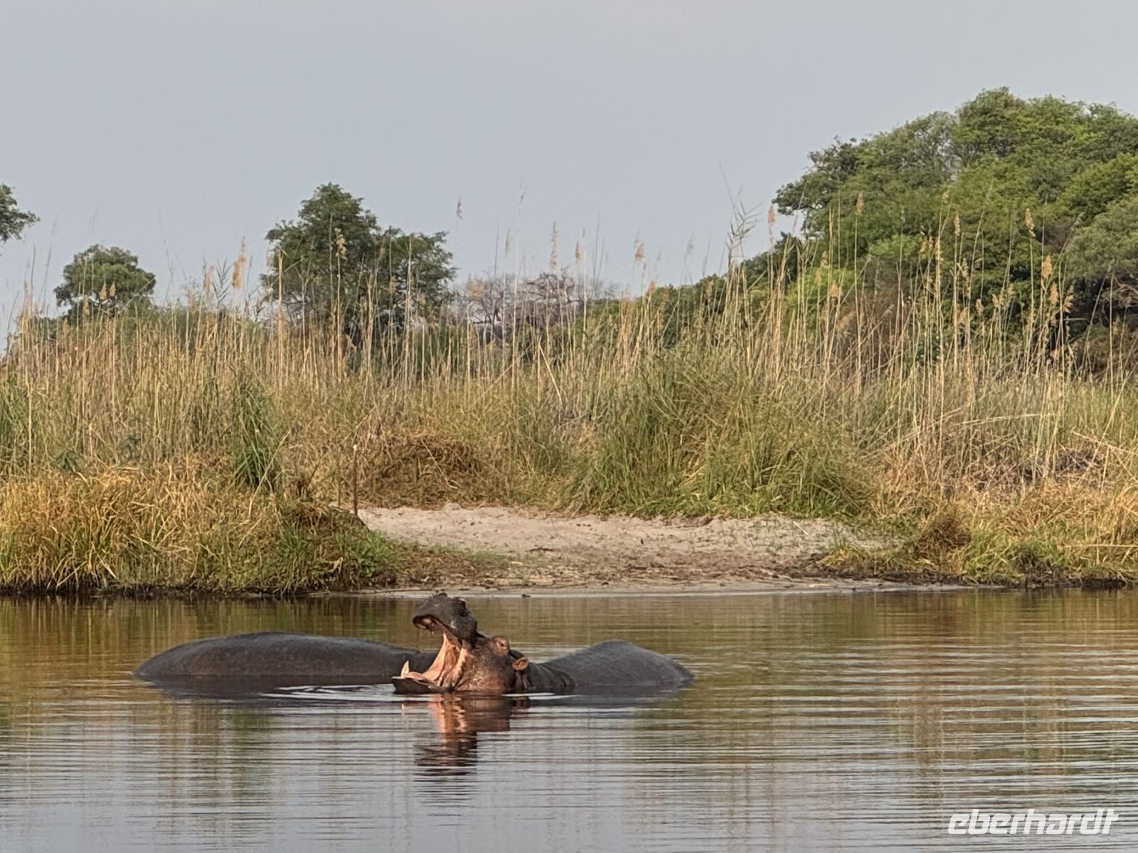 Wir werden zurück sein bevor es dunkel wird, also werden sich Hippo und Co noch im Fluss vergnügen.