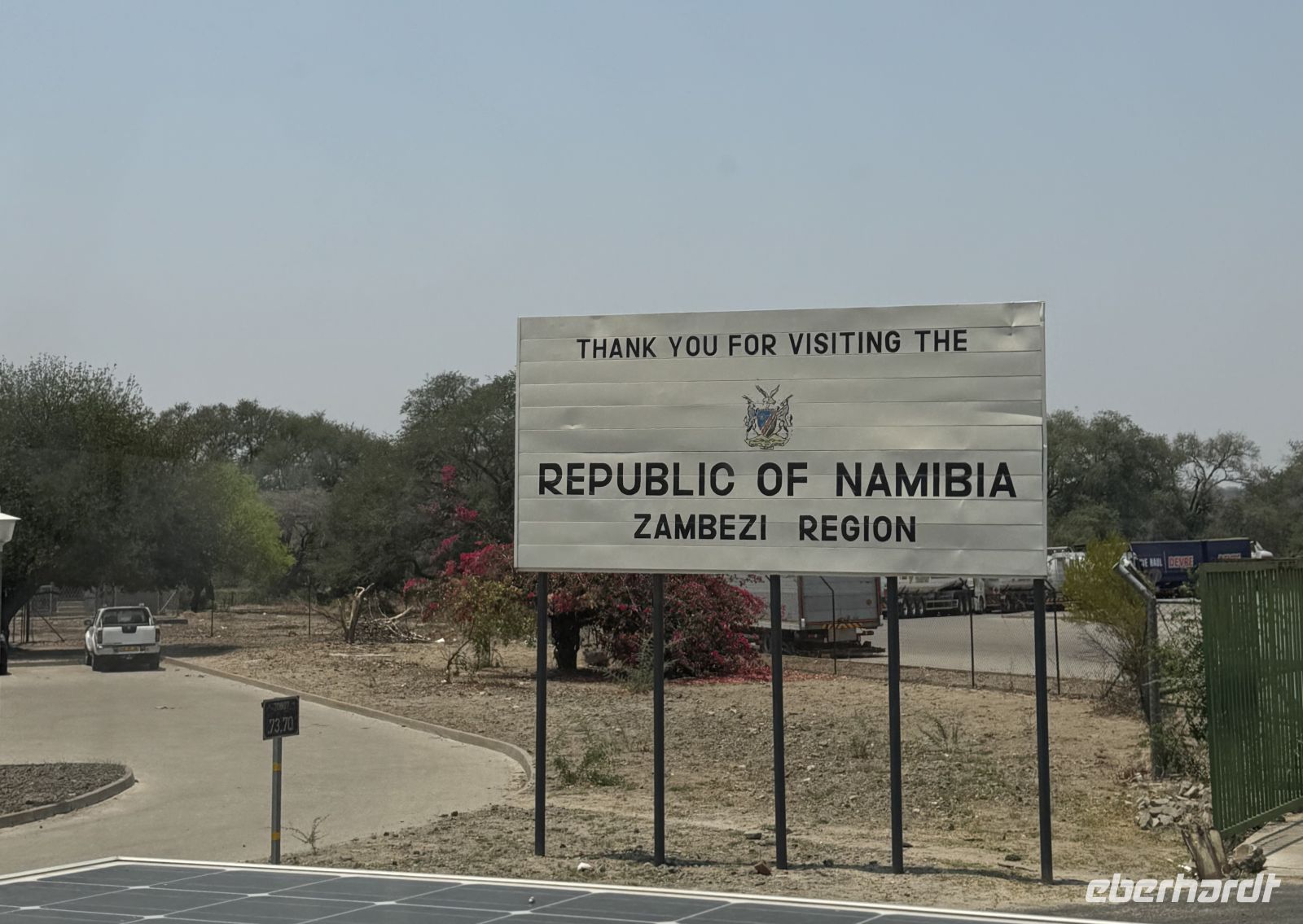 Der Grenzübergang hier in Kongula ist sehr interessant, es ist sozusagen ein Vierländereck. Treffen sich doch Sambia, Simbabwe, Namibia und Botswana. Die Grenzübergänge alle in allernächster Nähe. Nur die Größenverhältnisse dieser Länder sind hier etwas anders. Sambia mit 21 Mio. Einwohnern, Simbabwe mit 16 Mio. Namibia mit nur 3 Mio. und Botswana gerade einmal 2, 5 Millionen.