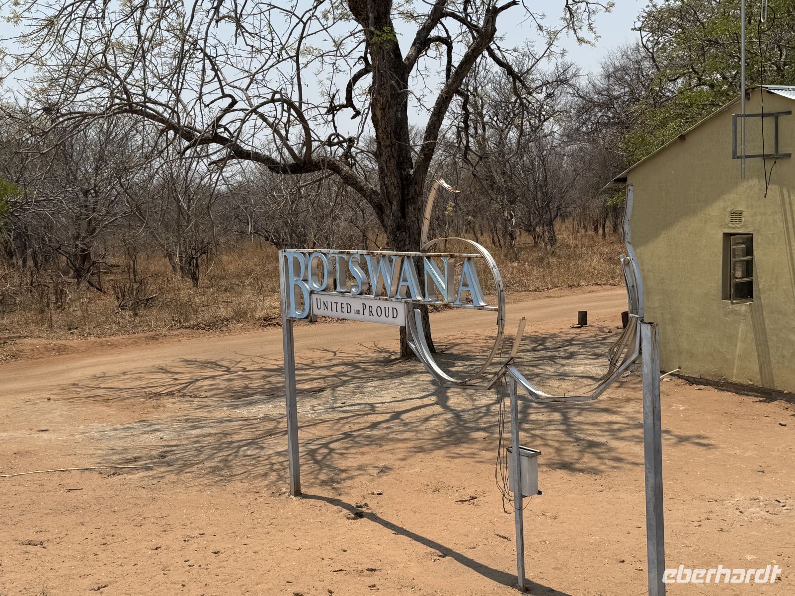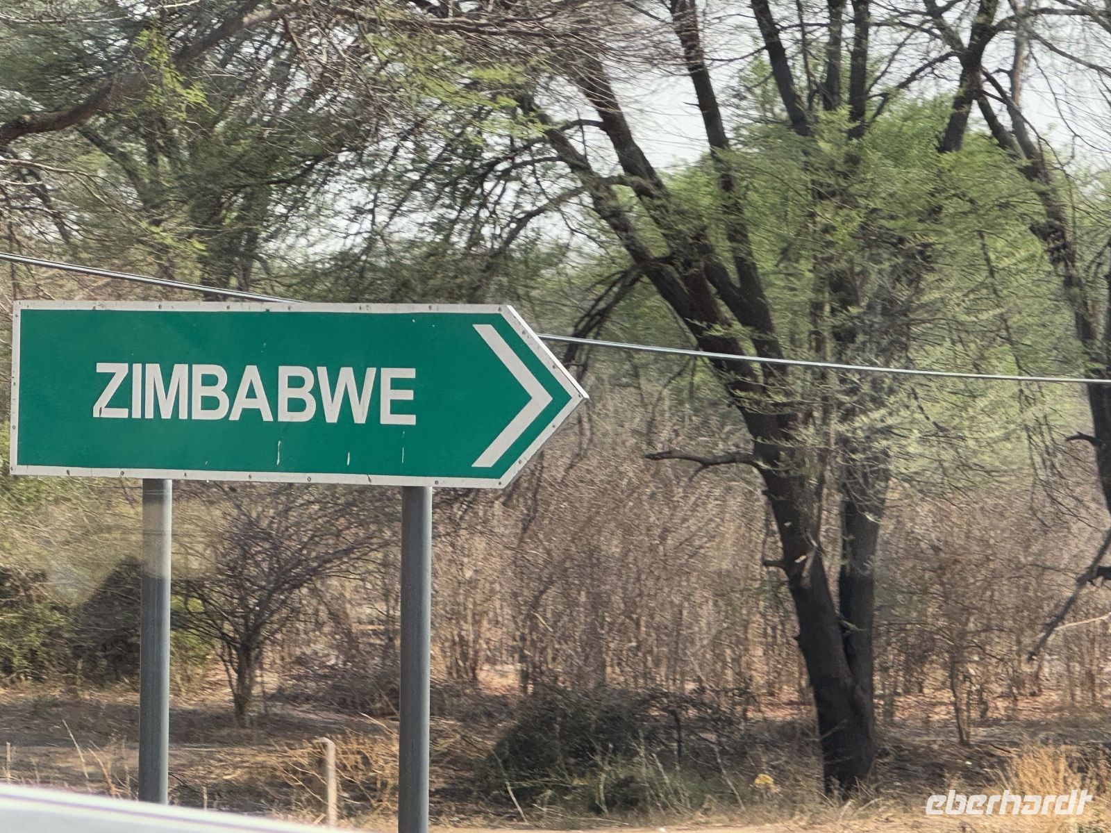 Nur 30 Minuten brauchen wir bis zur Grenze um Botswana zu verlassen. Das geht super flott. Niemand vor uns, also rein, Pässe vorlegen und schon stehen wir wieder am Bus. Wir sind also nicht mehr in Botswana, aber auch noch nicht in Simbabwe. Jedes Mal fragen wir uns, zu wem wir denn gerade gehören.