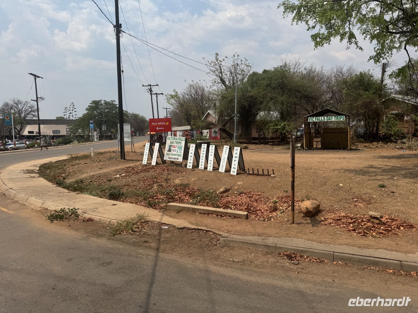 Nach Bananen und Mango Plantagen rechts von uns, erreichen wir schließlich Victoria Falls, Louw nennt es wie immer ein Dorf. Aber dieses Dorf hat dann doch stolze 35.000 Einwohner.