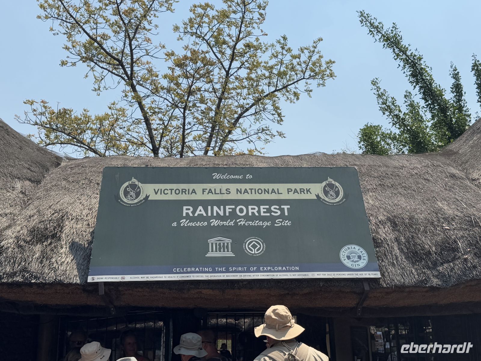 Unser Ziel sind zuerst die Victoria Fälle, schnell sind wir aus dem Bus raus, versprechen direkt noch den ersten Markverkäufern das wir aber auch ganz sicher später wiederkommen und machen uns die Straße überquerend auf den Weg zum Eingang für die Wasserfälle.
