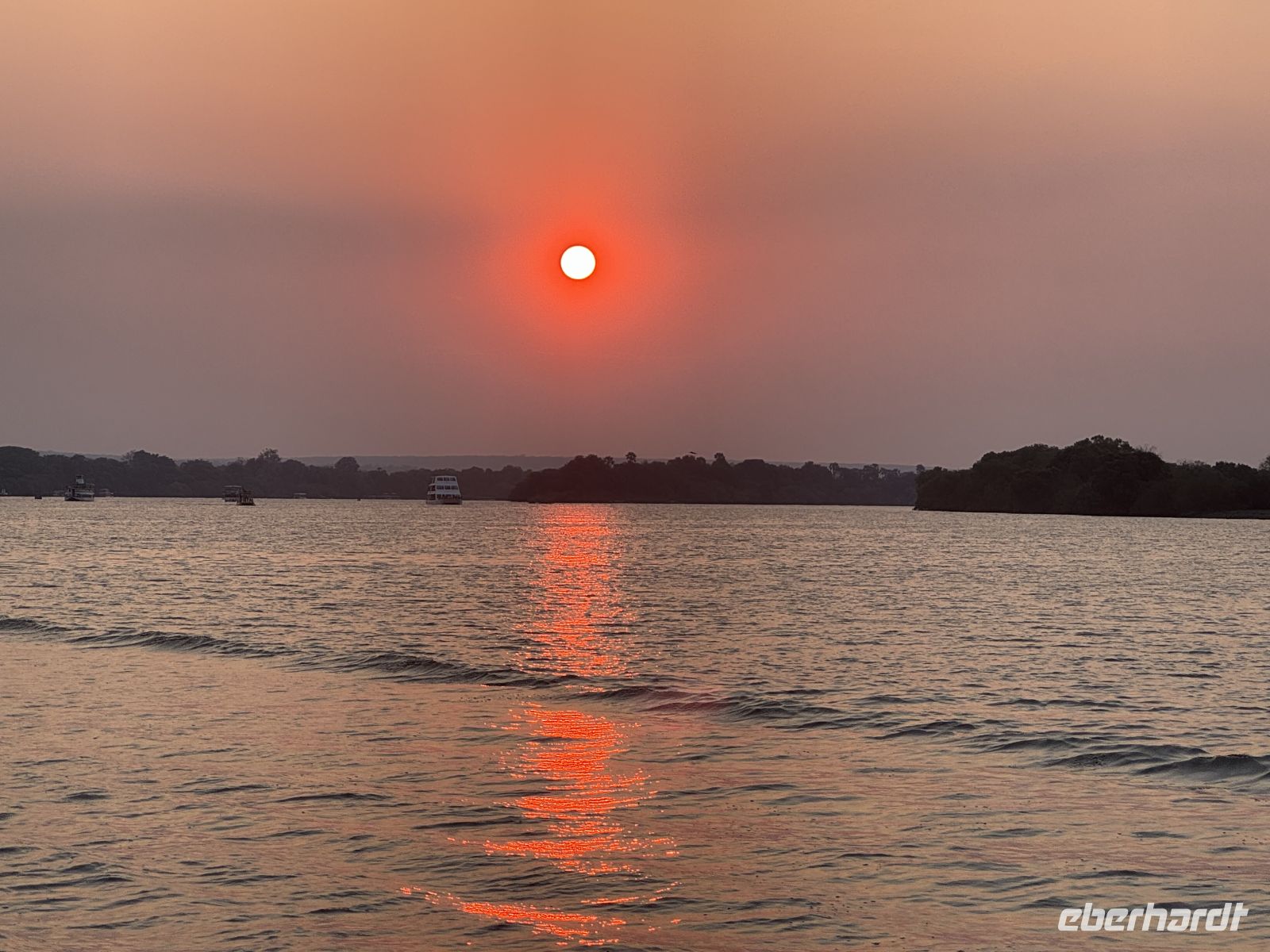 Wir drehen unsere Runde, immer noch auf Sambesischer Seite und von dort werden wir auch den Sunset erleben. Dieser wird auch unser Letzter werden. Insgesamt waren es 4 auf 4 Flüssen. Jeder anders, durch Licht, Natur und den Rest der Umgebung.