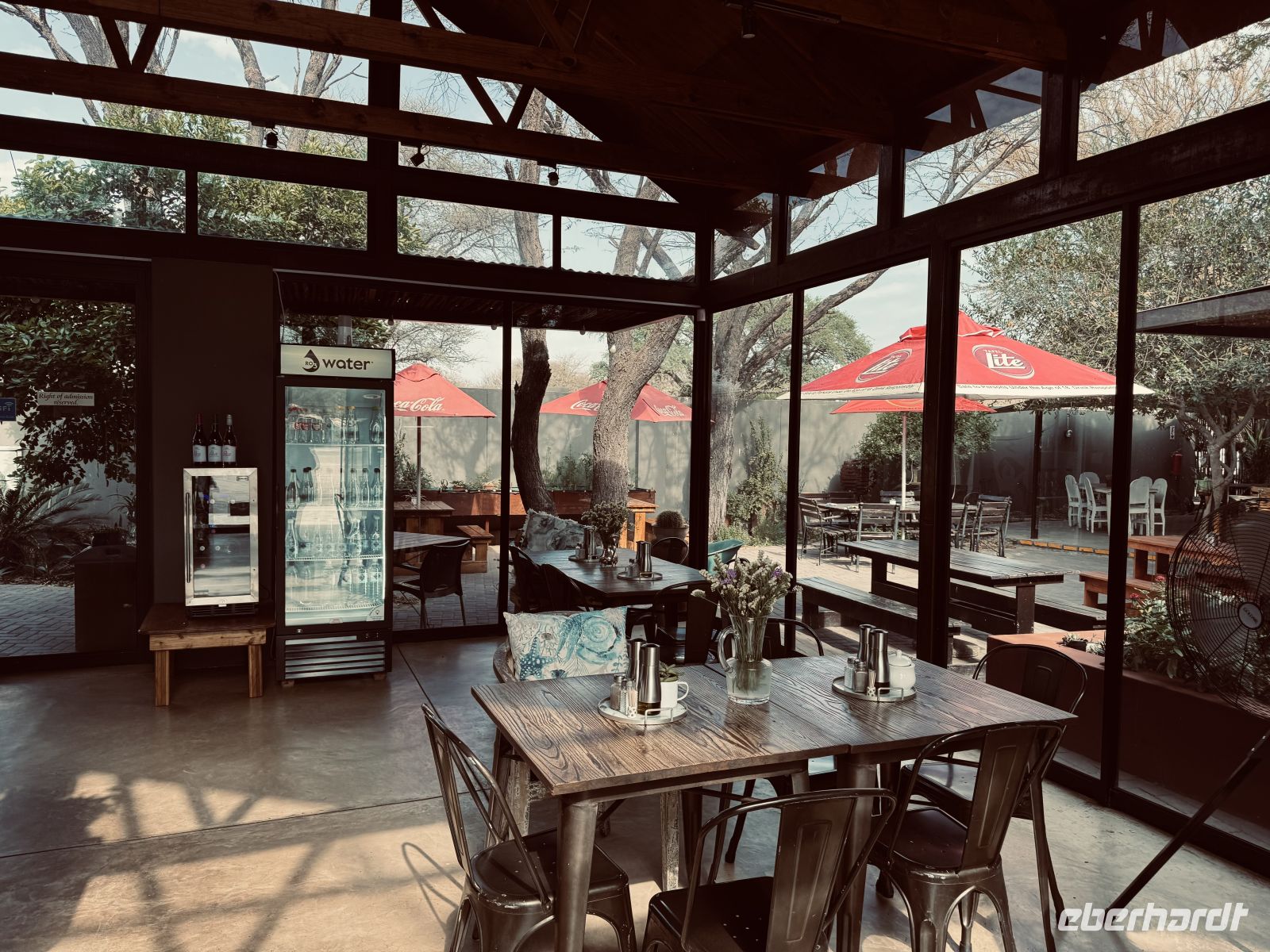 Wir haben genug Zeit, erst gegen 9:30 Uhr erfolgt unser Transfer zum Vic Falls International Airport. Die Taschen sind größtenteils gepackt, also lassen wir uns Zeit und somit fällt unsere Kaffeezeit etwas länger aus.