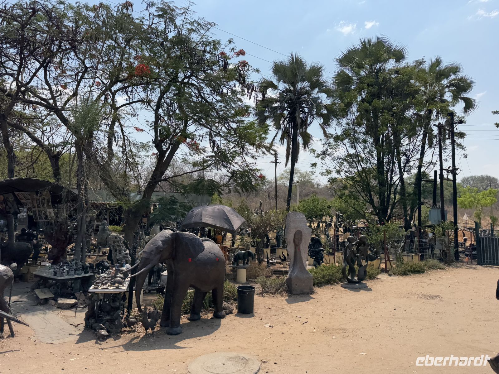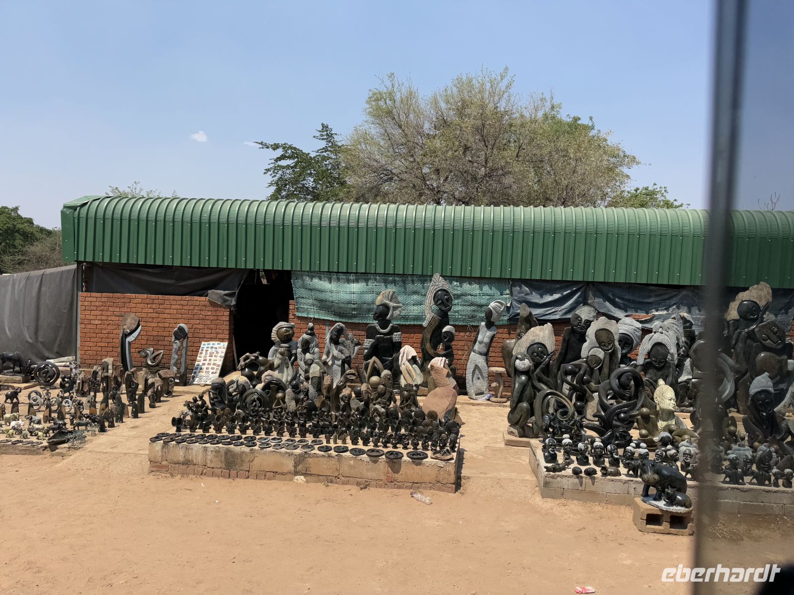 Wir sind alle im Bus und los geht’s, wir drehen noch eine kleine Runde durch das Zentrum, Louw möchte uns wissen lassen, wo wir was finden. Neben einer Brauerei und ein paar Pubs, tut sich wieder links und rechts der Straße ein Holzmarkt nach dem anderen auf. Wir sehen wirklich tolle Exemplare und es gibt wohl kein Tier welches nicht geschnitzt wurde. Die meisten davon allerdings in einer für uns nicht transportablen Größe. Aber gut zu wissen wo etwas wäre und so geht’s auf unsere letzter Etappe, nur 8 Kilometer außerhalb der Stadt.