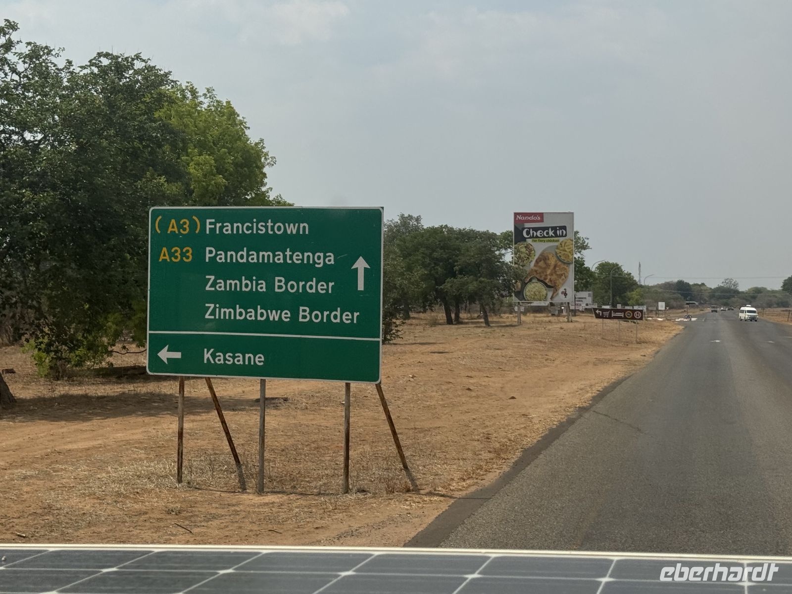 Es sind von hier nur noch 80 Kilometer bis zu den Victoria Wasserfällen.