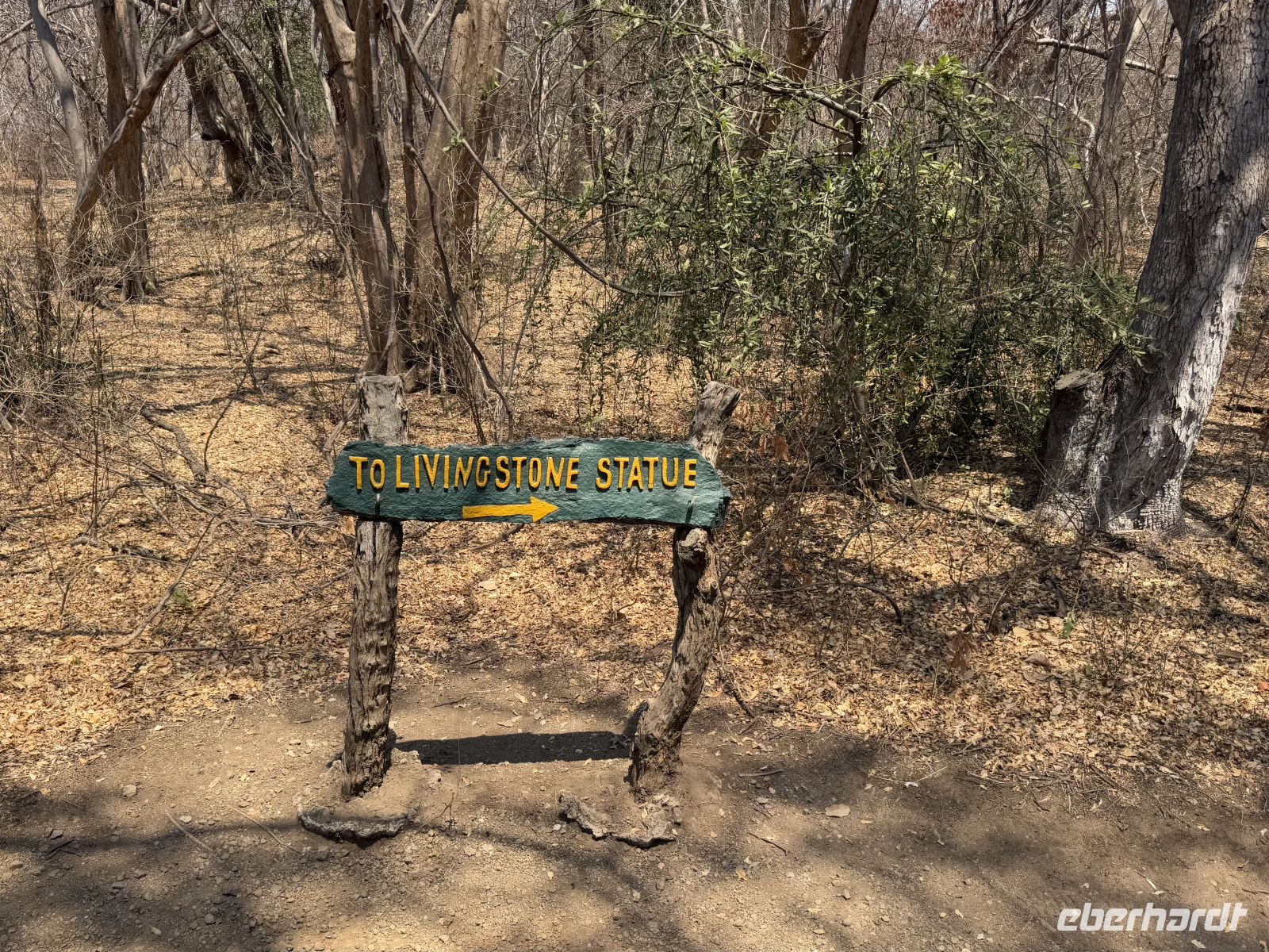 Wir fangen an Richtung Livingstone Statue, also immer nach links entlang der schattigen Allee, die Temperaturen trotzdem hoch, mit einer Luftfeuchtigkeit, die es nicht vermeiden lässt, das alles, aber auch alles was wir am Körper tragen förmlich mit uns verschmilzt.