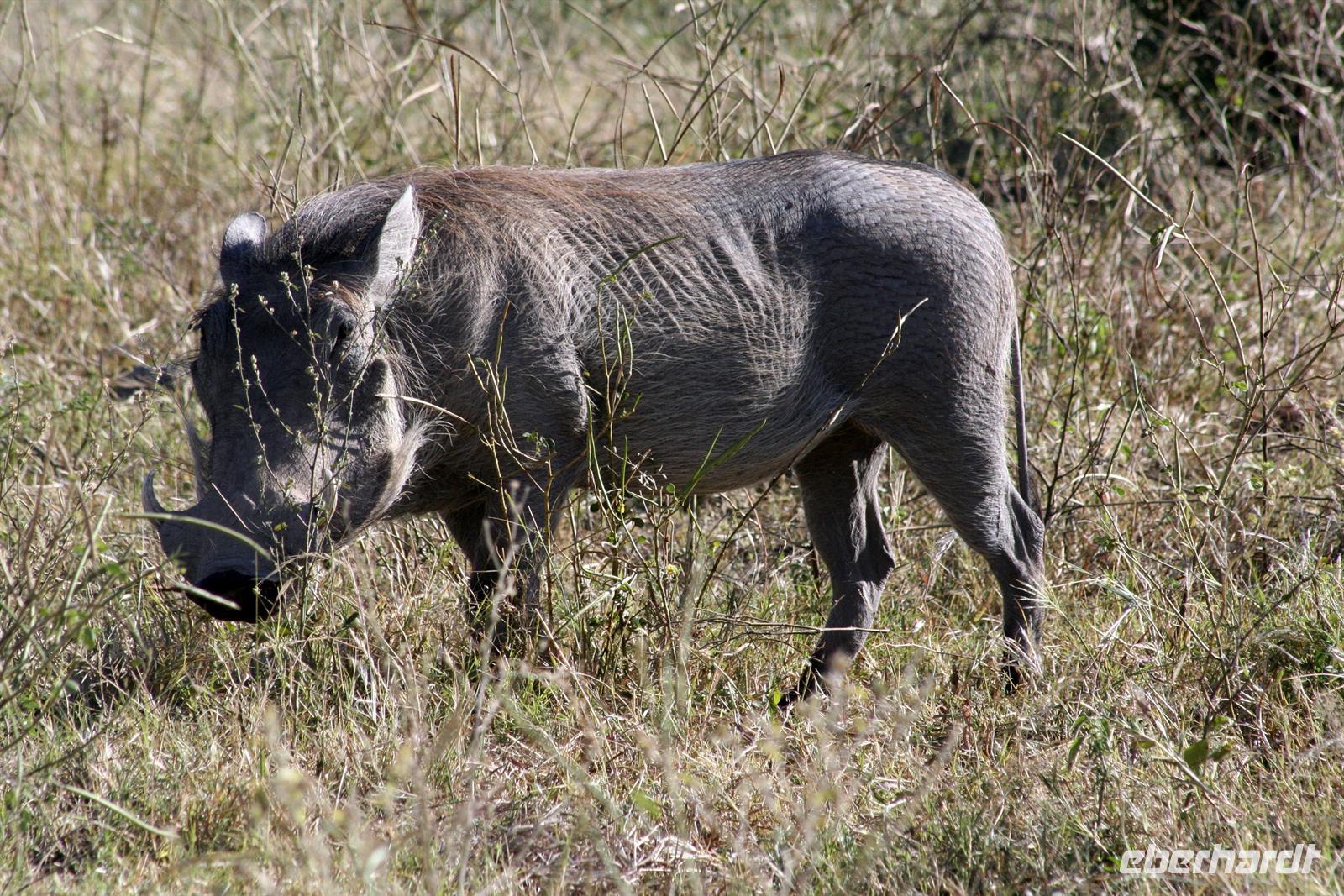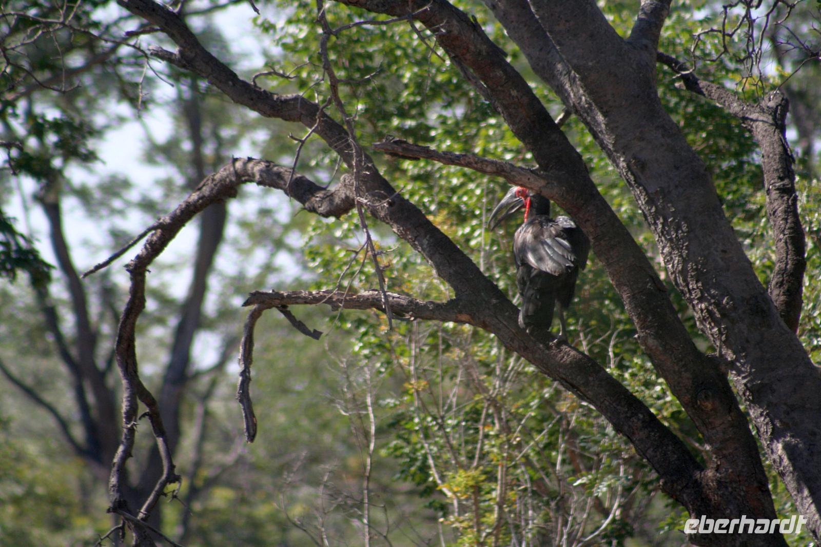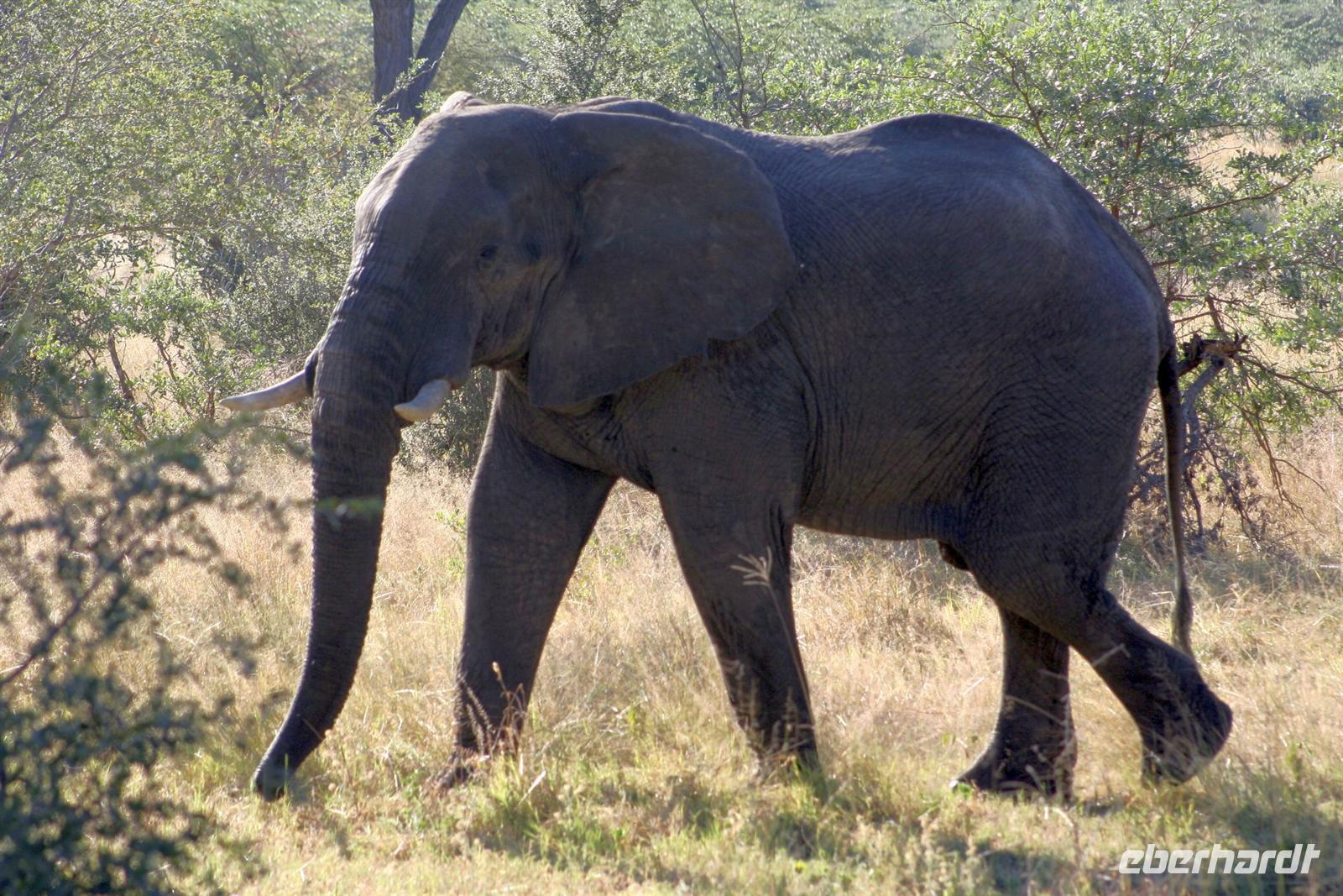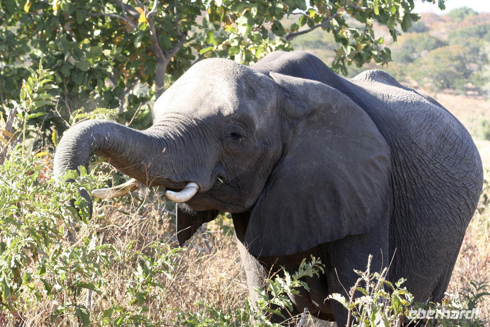 Die Teerstraße nach Kasane führt direkt durch den Chobe NP. Zunächst begrüßten uns nur auf Warnschildern Elefanten, wir sahen nur einige Giraffen und Hornraben. Bald erreichten wir die komfortable, wunderschöne "Chobe Safari Lodge" in Kasane, direkt am Ufer des gewaltigen Chobe Flusses gelegen. Hier war alles vorhanden: Poollandschaft, Restaurant, Bar, eigene Schiffsanlegestelle, Shops und und.... In den gepflegten Grünanlagen begrüßten uns einzelne Meerkatzen und Warzenschweine grasten friedlich auf der Wiese. Am Ufer, vor den Flusschalets weckten diverse Warnschilder unser Interesse: Vorsicht Krokodile! Also gingen wir äußerst aufmerksam am Flussufer entlang. Das Abendessen genossen wir in vollen Zügen: ein riesiges Buffet mit Schauküche, Grill und allen erdenklichen Köstlichkeiten erwartete uns. Noch vor Morgengrauen waren wir am nächsten Tag bereit, um auf spannende Jeep-Safari in den Chobe NPaufzubrechen. Ein spannendes Gefühl im Dunklen die geheimnisvollen Geräusche des afrikanischen Busches zu deuten, aus dem Dickicht blitzten uns scheu die Augen von Impalas an. Später beobachten wir Hyänen beim Frühstück.