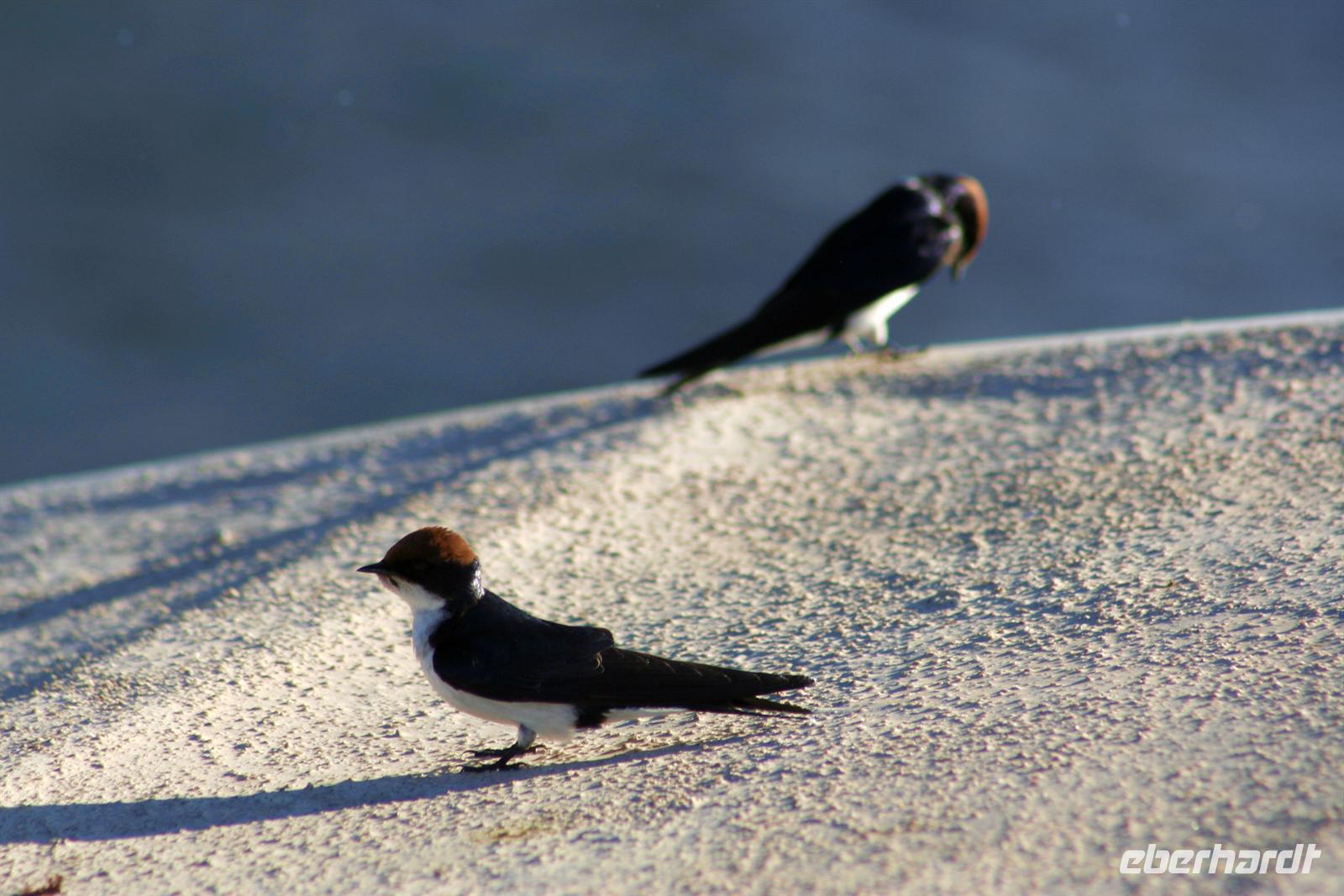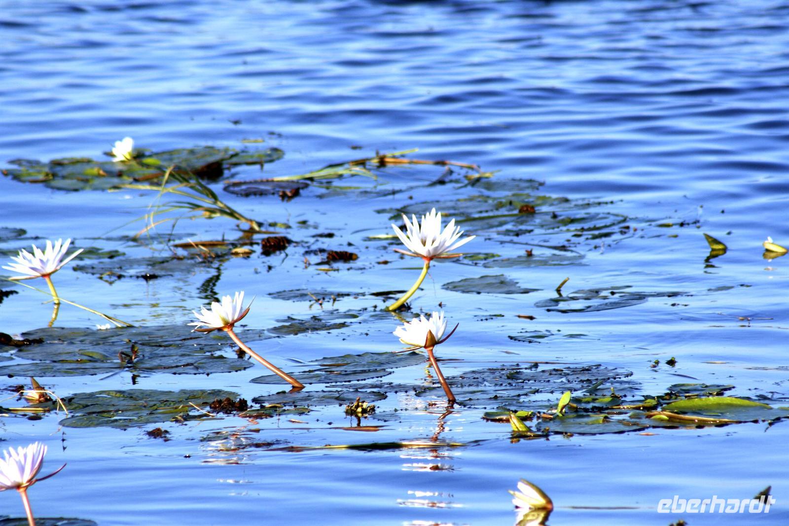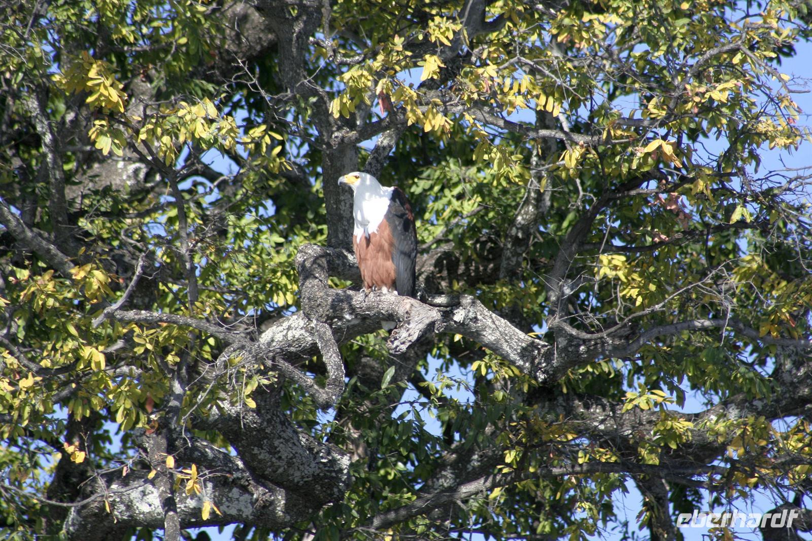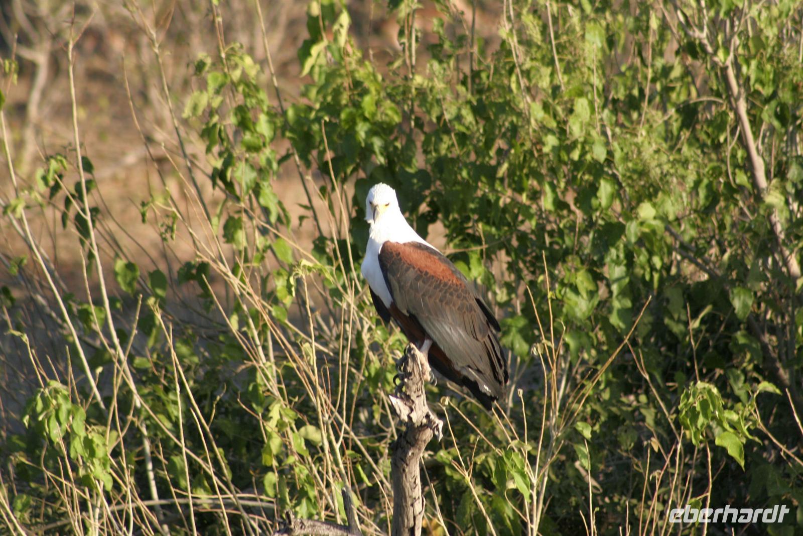 In unserem geräumigen Boot und kühlen Getränken an Bord schipperten wir gemütlich den Chobe entlang. Ganz nah beobachteten wir Wasserwarane und Krokodile am Ufer. In den Lüften schwebte ein Fish Eagle. Bald darauf wurde es noch "tierischer": Elefantenherden, Kudus, Büffel, Wasserböcke kamen am späten Nachmittag zum Fluss, um zu trinken. Elefantenherden mit "Babyfanten" schwammen durch den Fluss zur Insel, um noch saftigeres Grün zu naschen. Die gefühlten 398 Elefanten, die wir nun sahen, entschädigten die magere Ausbeute am Morgen.